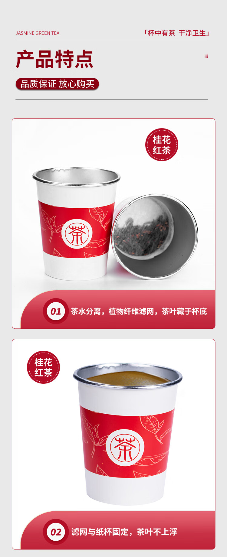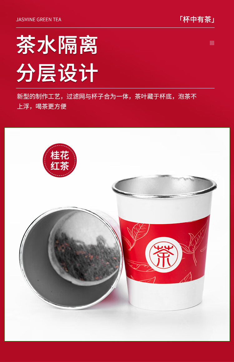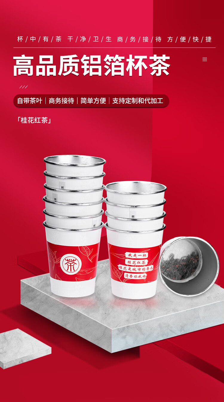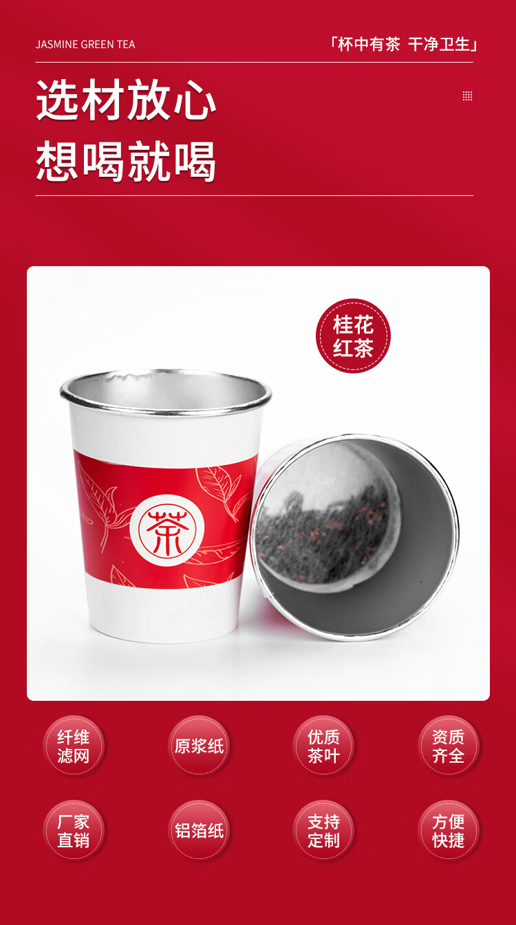 桂花红茶铝箔杯茶一次性纸杯自带茶叶杯茶一体隐茶杯杯中茶可定制 整箱500杯批发价 可混批