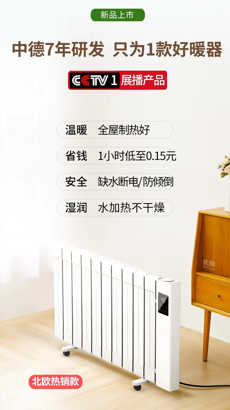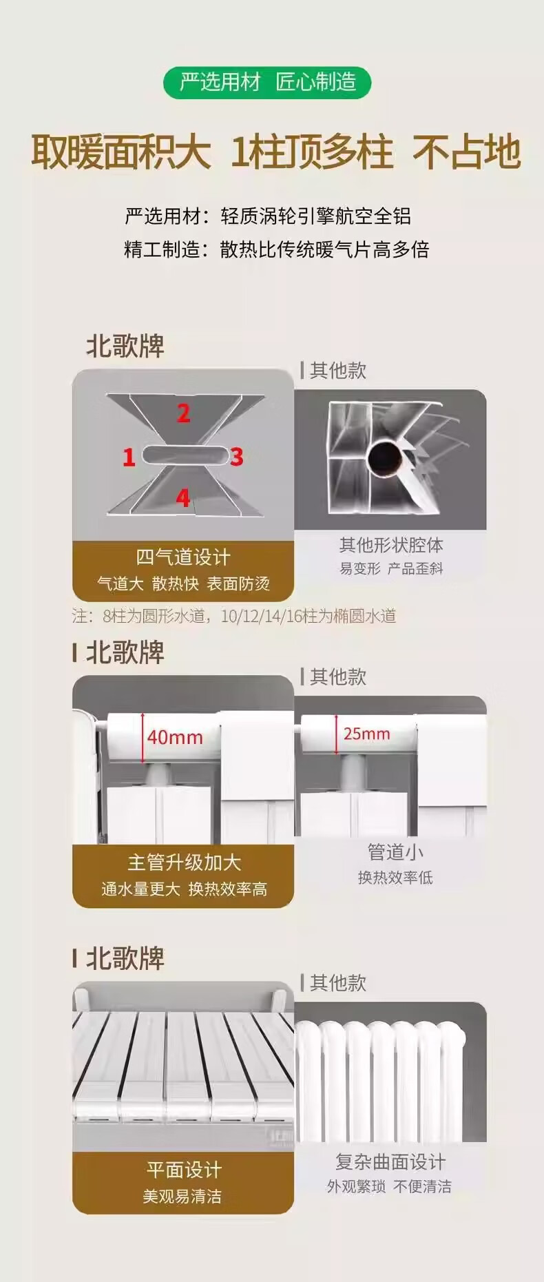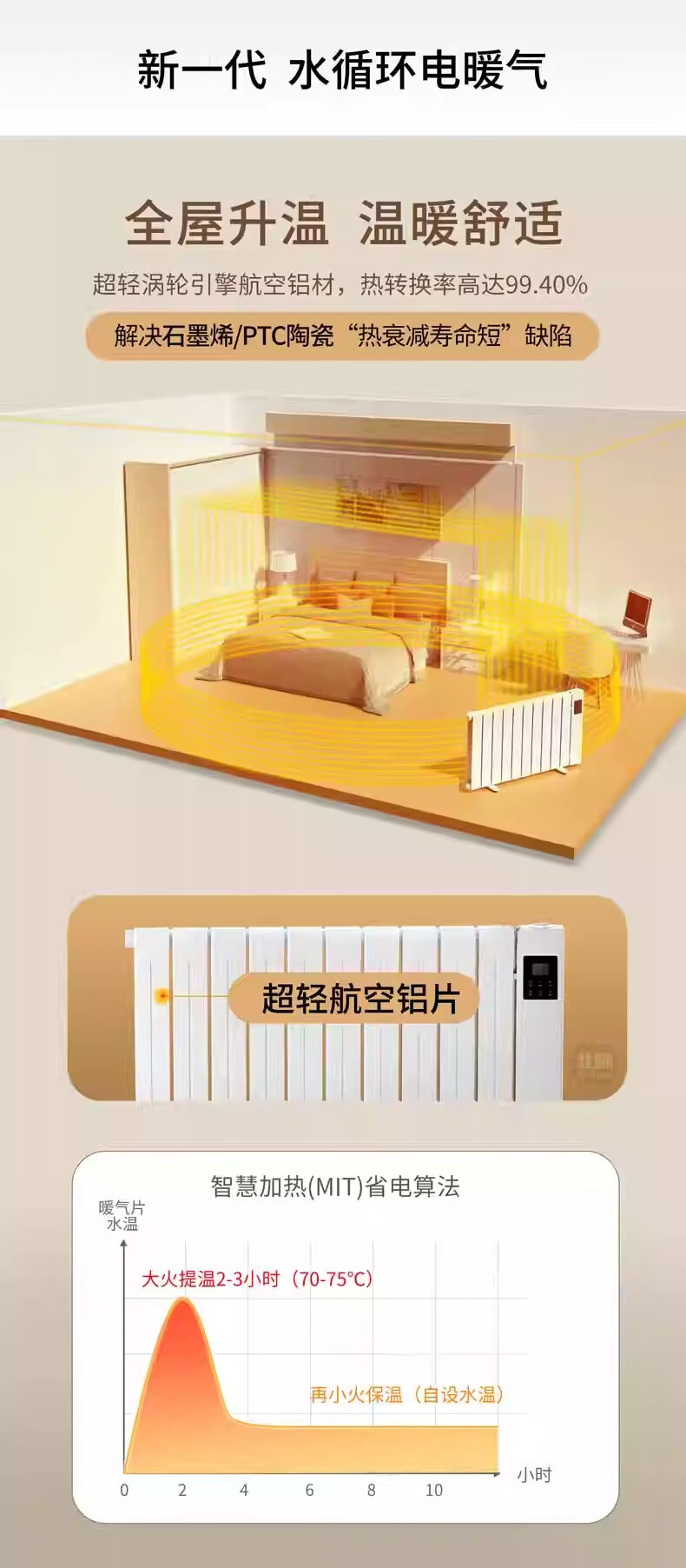 北歌加水省电暖器节能取暖器家用安全注水暖气片热泵循环全屋变频 (wifi加强版)涡轮航空铝16柱25~30平