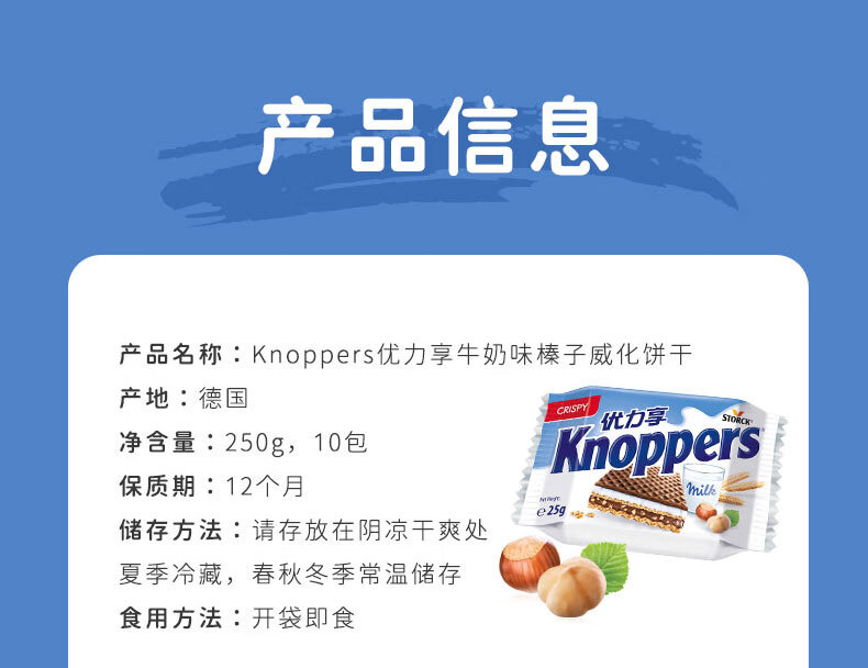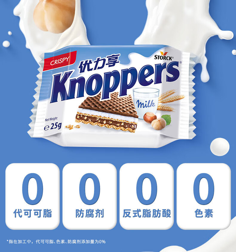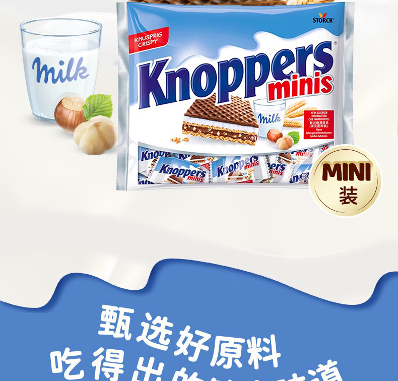 Knoppers优力享德国进口牛奶榛子巧克力威化饼干Mini 五层夹心休闲零食 20包*2