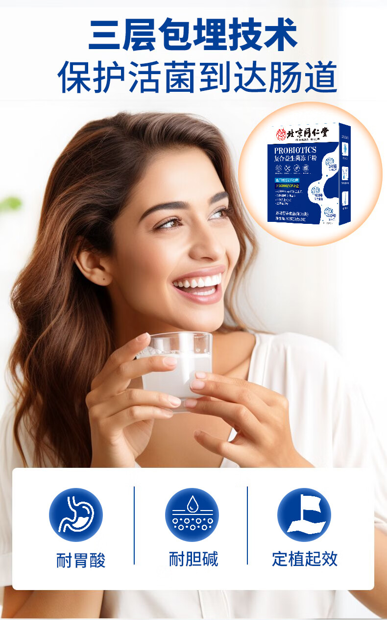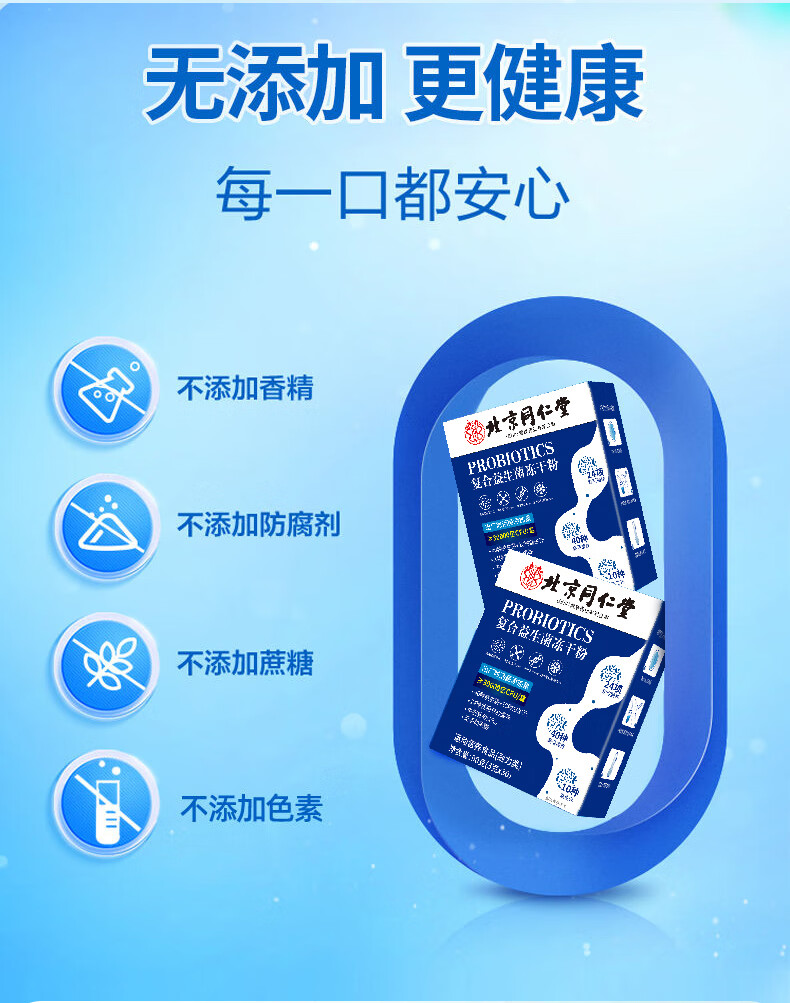 同仁堂(TRT)益生菌冻干粉复合益生菌肠胃益生元肠道冻干粉 【一盒体验装】益生菌宝蓝色 20条*1盒