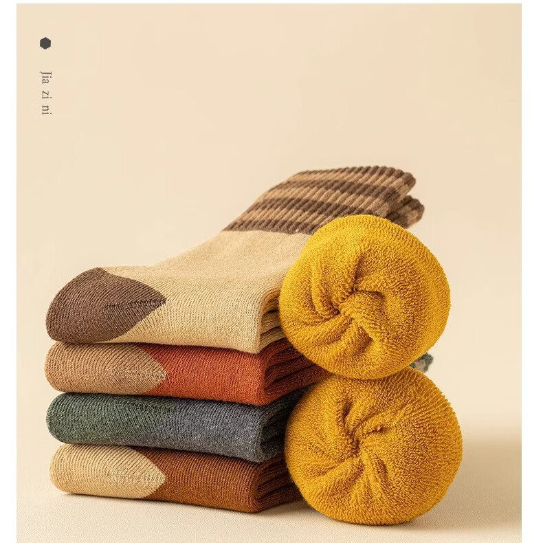 欧蓝薇雅(OULANWEIYA)袜子男女情侣袜中筒秋冬季加绒加厚底保暖毛圈袜潮流长冬天袜女 颜色混搭 5双 均码