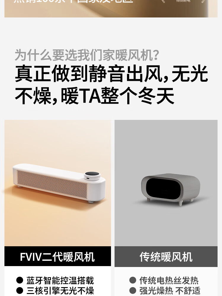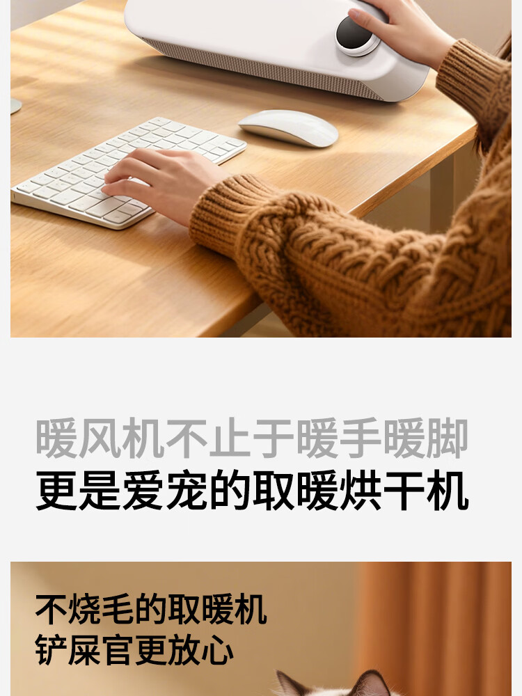 FVIV小型取暖器桌面暖风机办公室家用神器写作业玩游戏暖手暖脚小型电暖器电热节能省电小功率 粉色(1.5米电源线) 三风机/加大发热面积/ 机械式