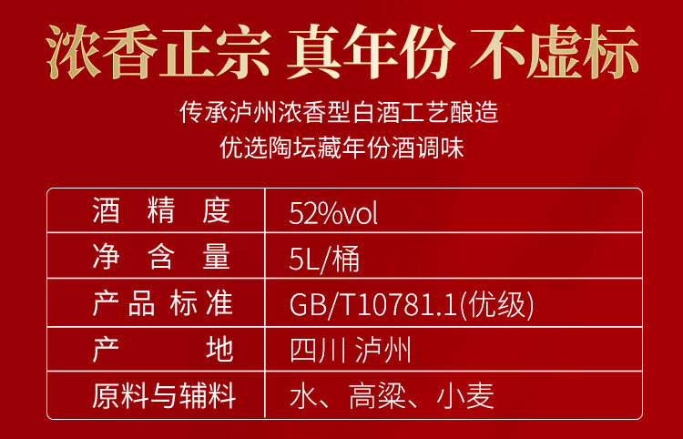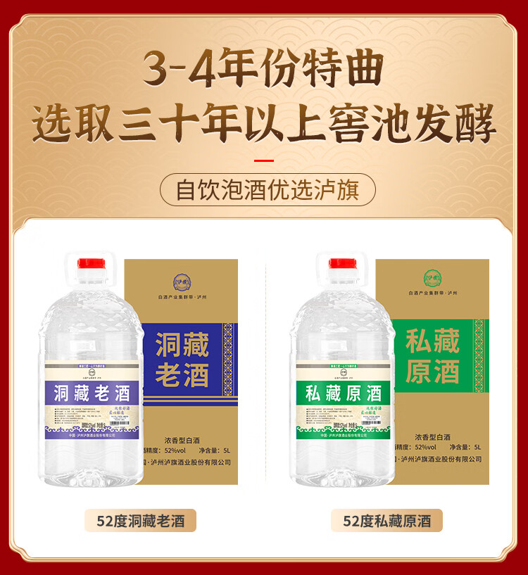 泸旗纯粮食固态发酵桶装白酒高粱酒浓香型散装白酒泡酒散酒特曲口粮酒 52度 5L 1桶 私藏原酒