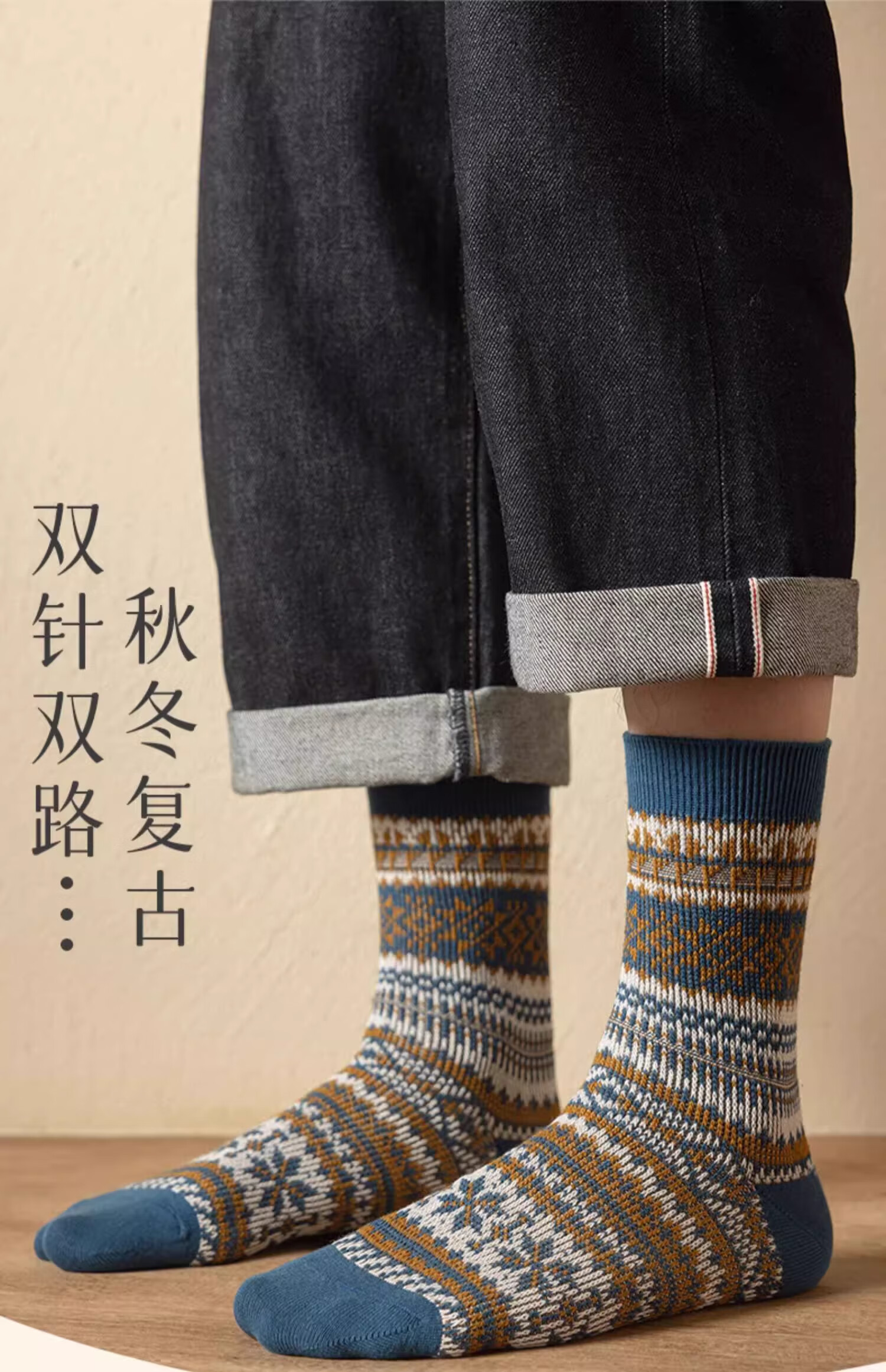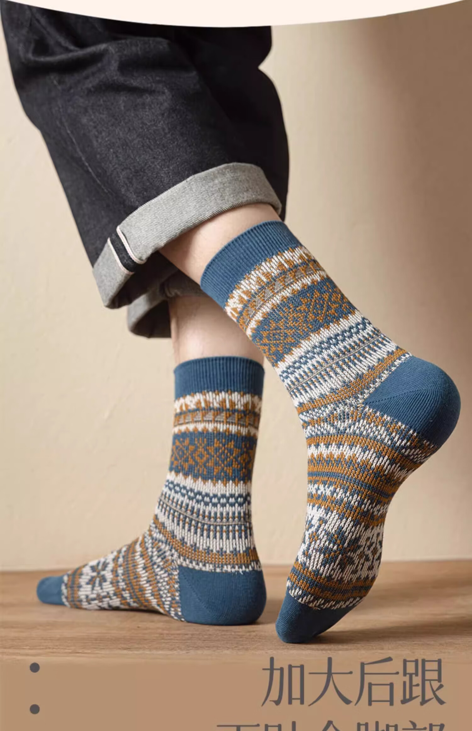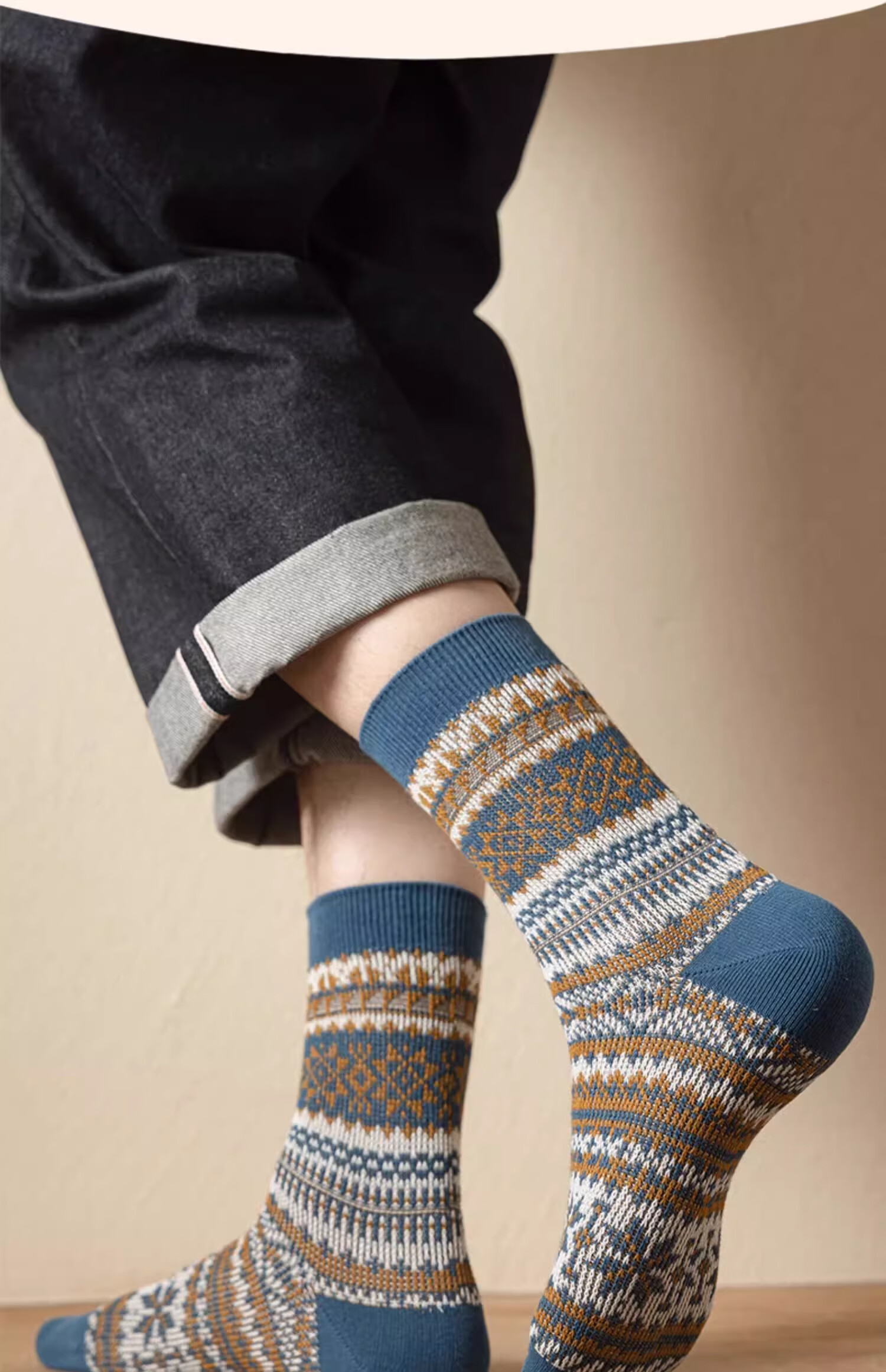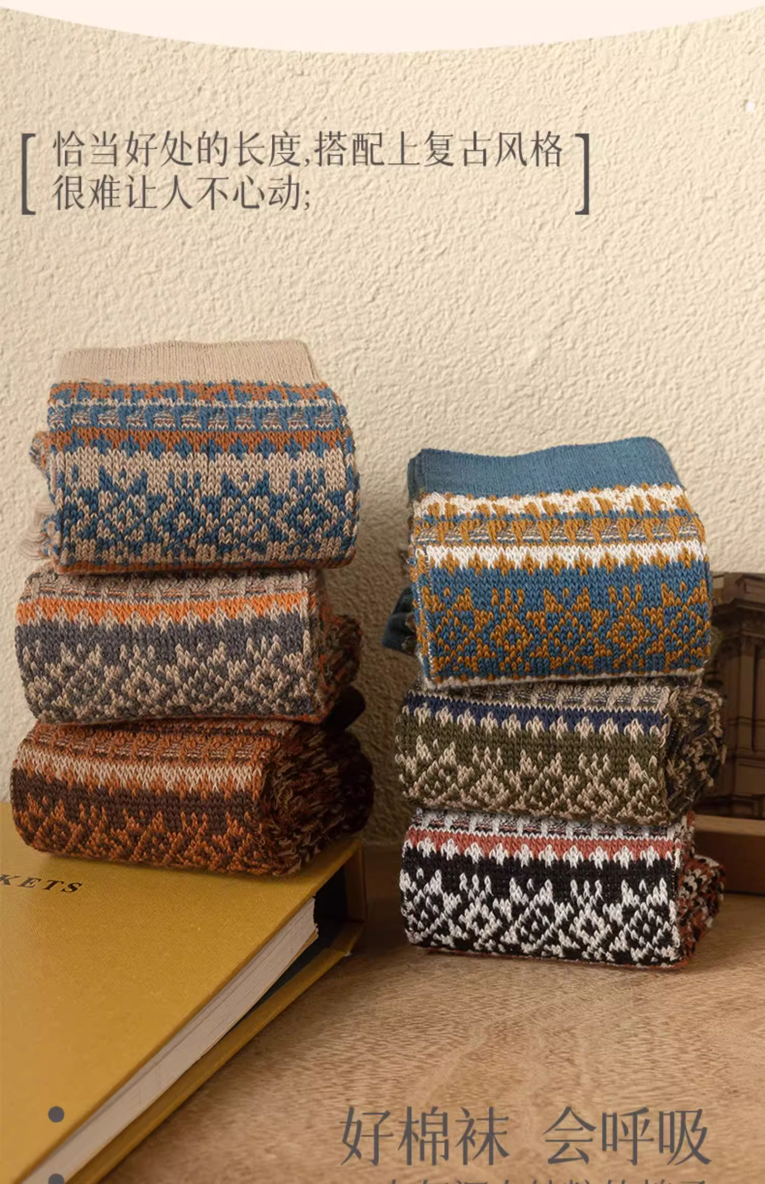 洛·恋长袜子男款中筒秋冬季棉花冬季吸汗防臭复古民族风男士学生长筒袜 混色 -【秋季必备】 4双