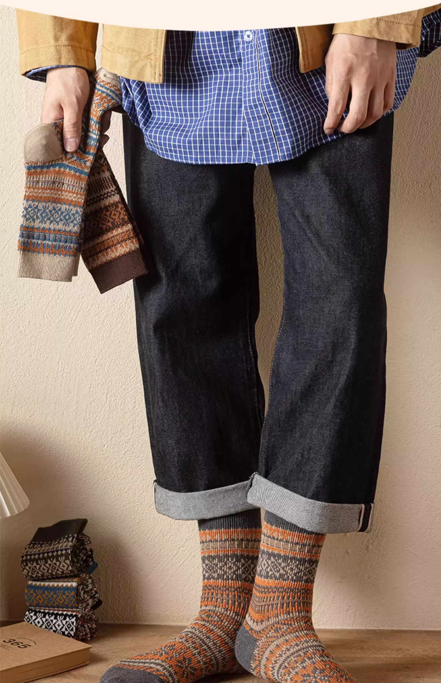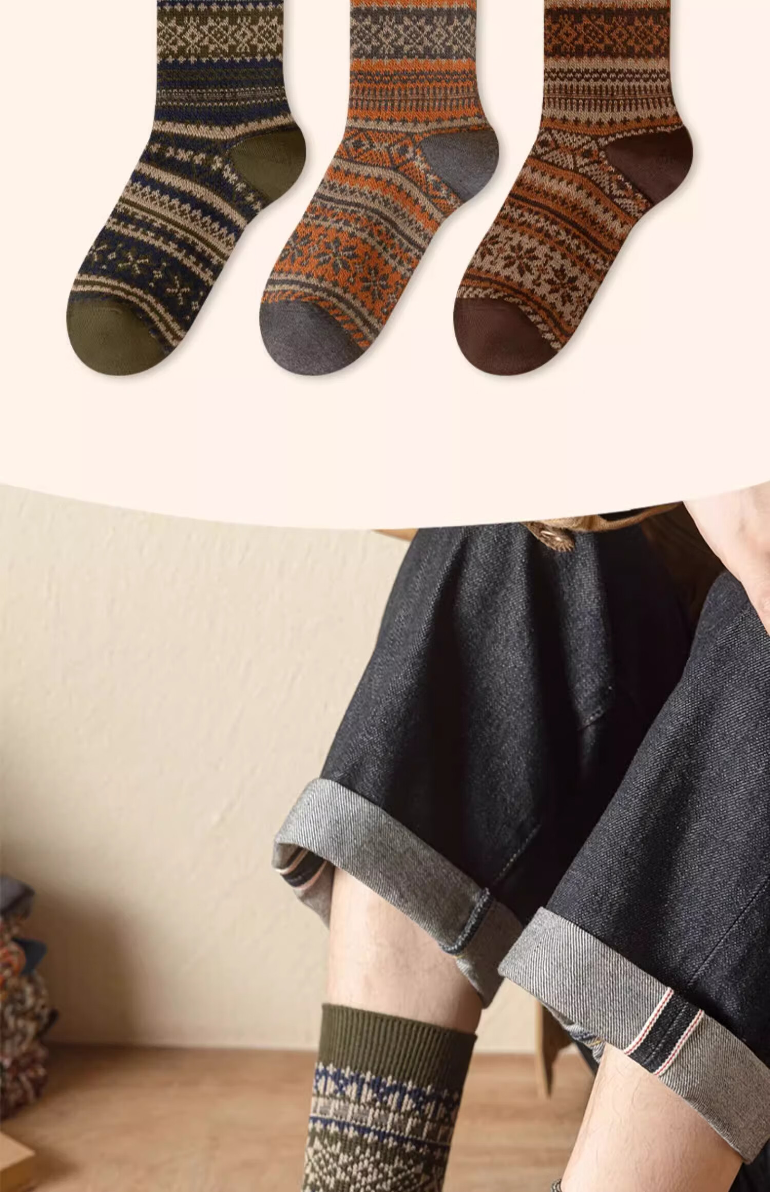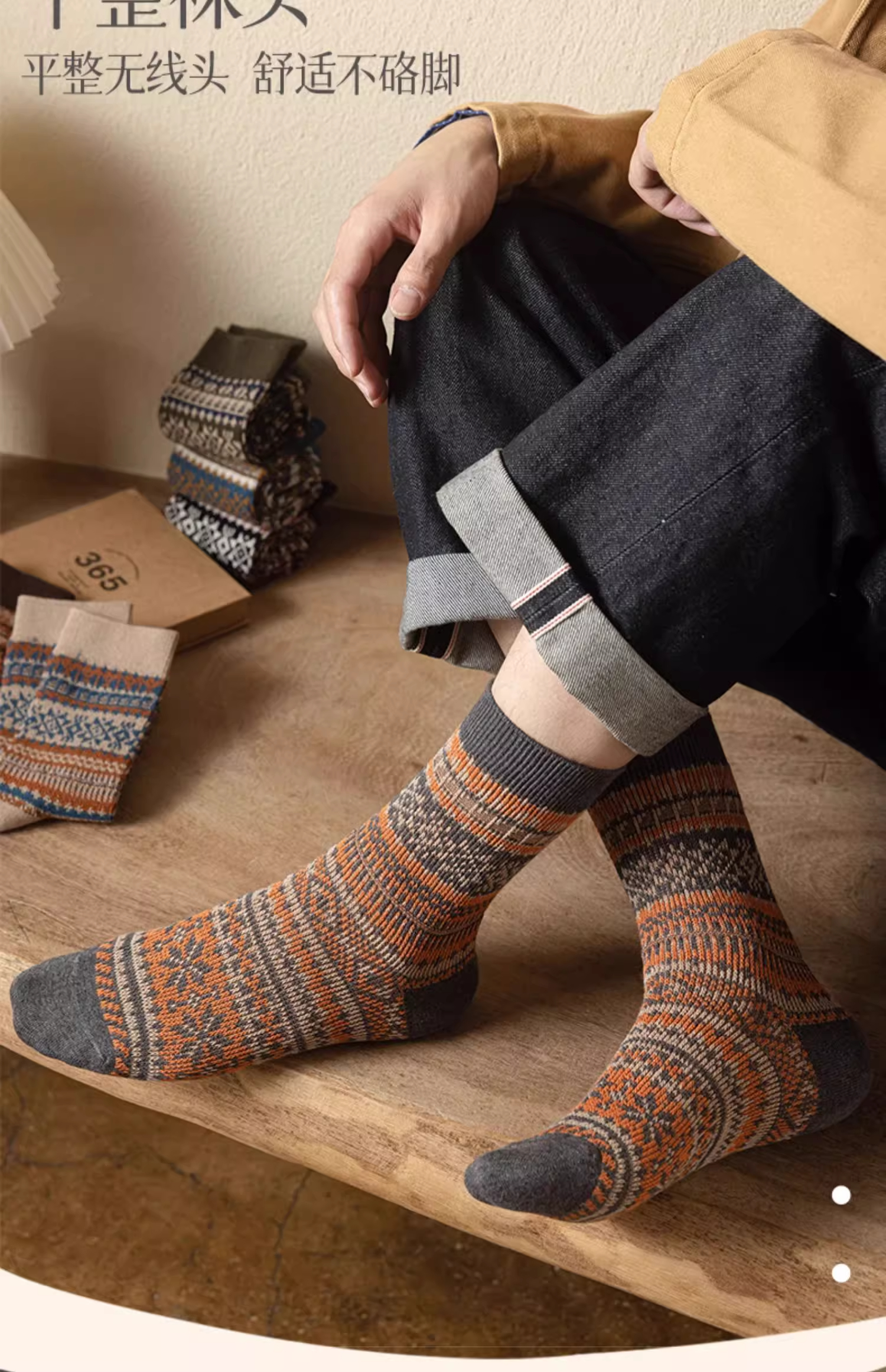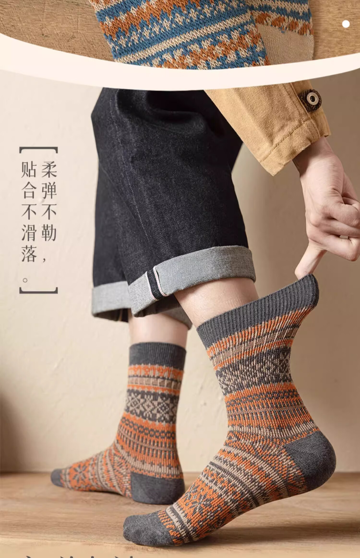 洛·恋长袜子男款中筒秋冬季棉花冬季吸汗防臭复古民族风男士学生长筒袜 混色 -【秋季必备】 4双