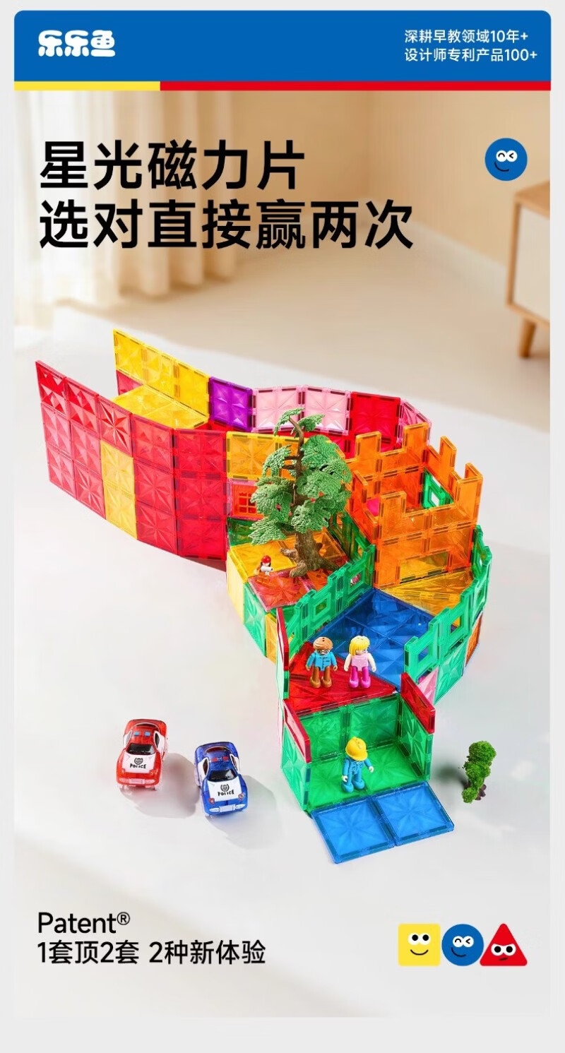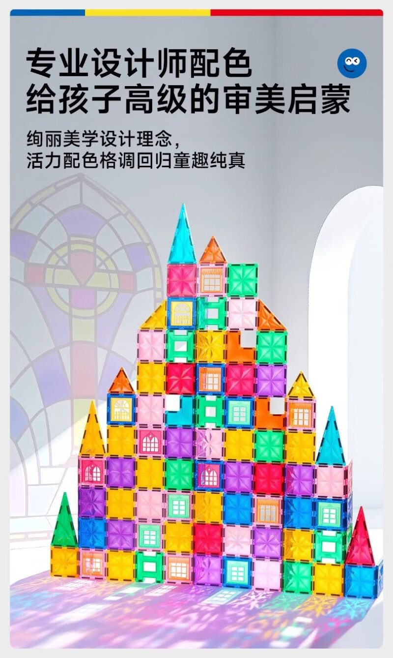 乐乐鱼(leleyu)磁力片星光钻面彩窗积木磁吸男女孩益智拼装拼图生日礼物玩具 热销:108片-双钻面彩窗【含小车*2+收纳箱】