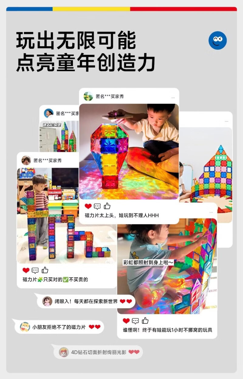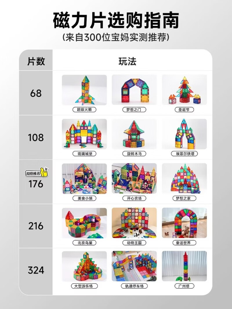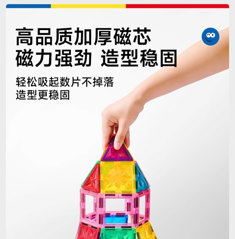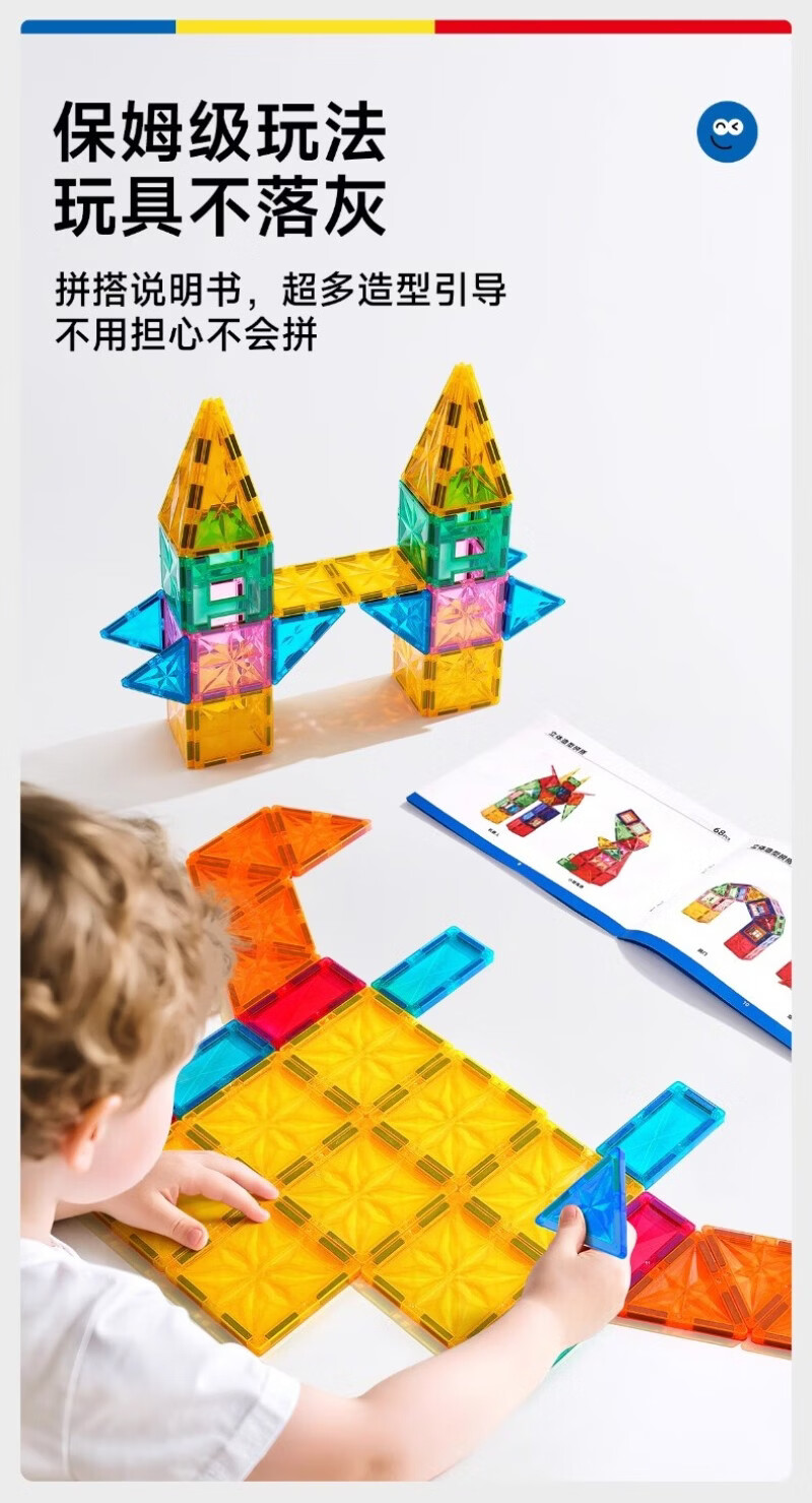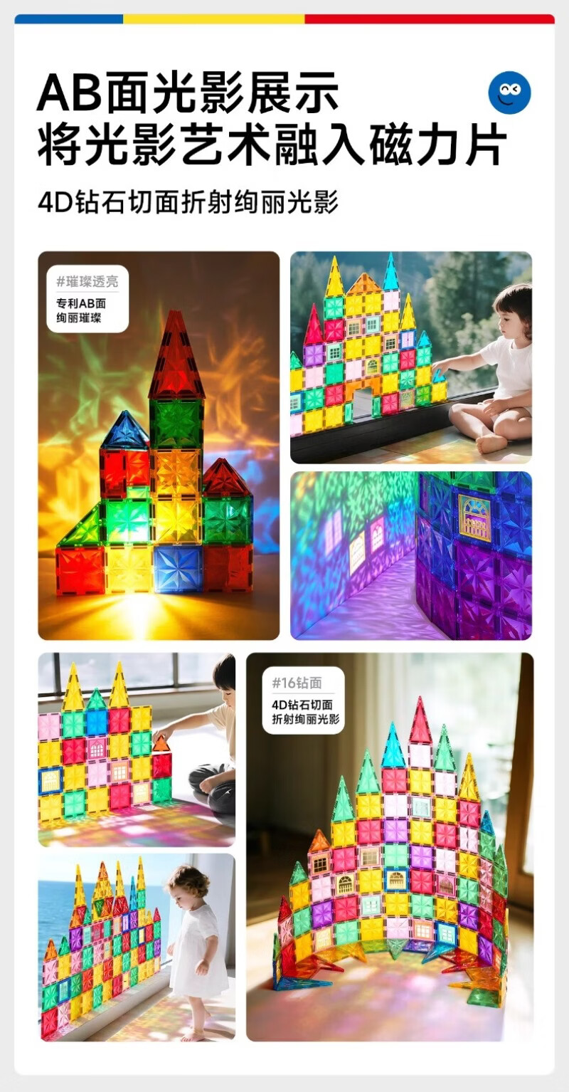mobee儿童磁力片3-6岁男女孩生日礼物7-14岁磁铁拼装早教益智玩具马年 圣诞小镇磁力片-186套装 节日礼物 强劲磁吸 大面积防误吞