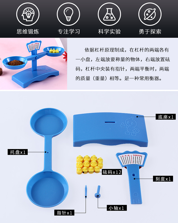 可普(kepu) 儿童简易天平秤小制作 托盘天平物理杠杆原理教学演示儿童幼儿园早教diy材料包教具