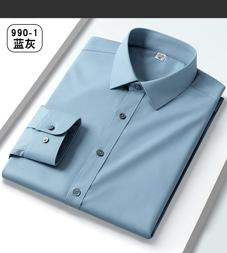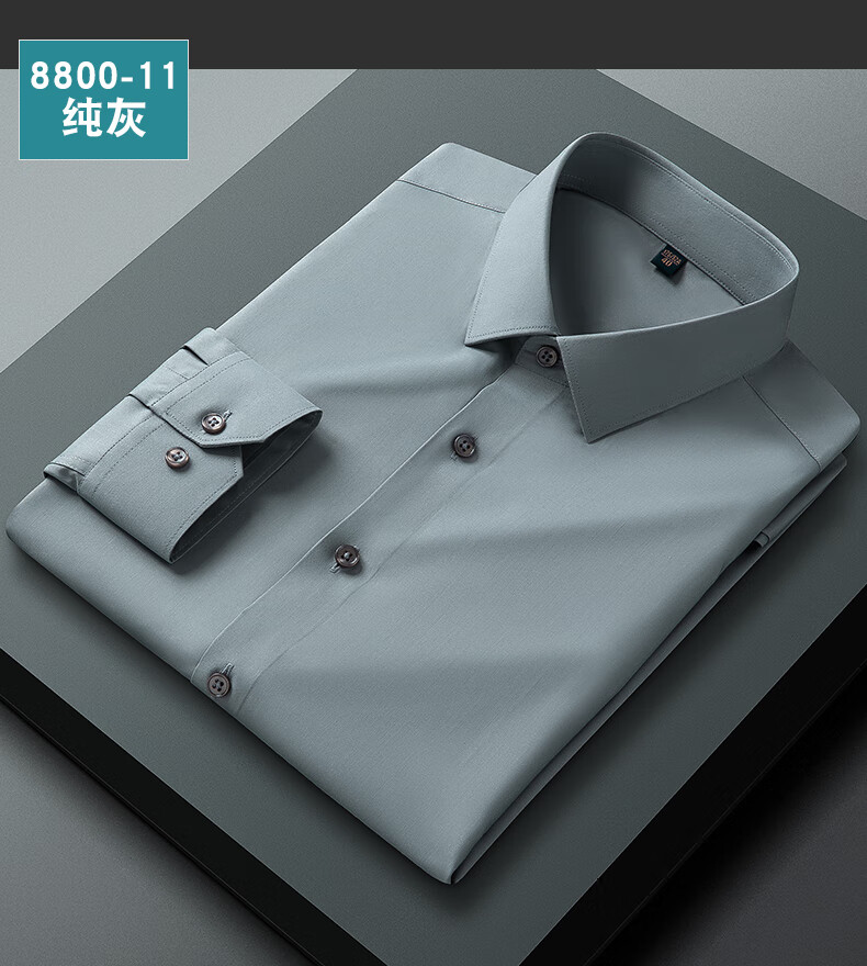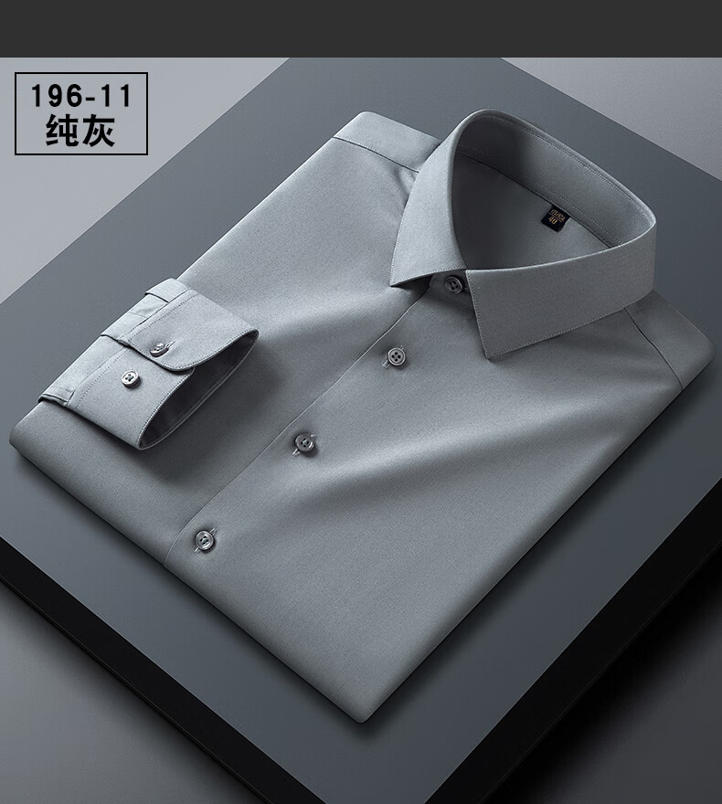 乔亚意大利轻奢高端桑蚕丝长袖衬衫男士春秋款高级感商务休闲免烫衬衣 196纯灰【轻奢桑蚕丝款】 42 建议160-170斤