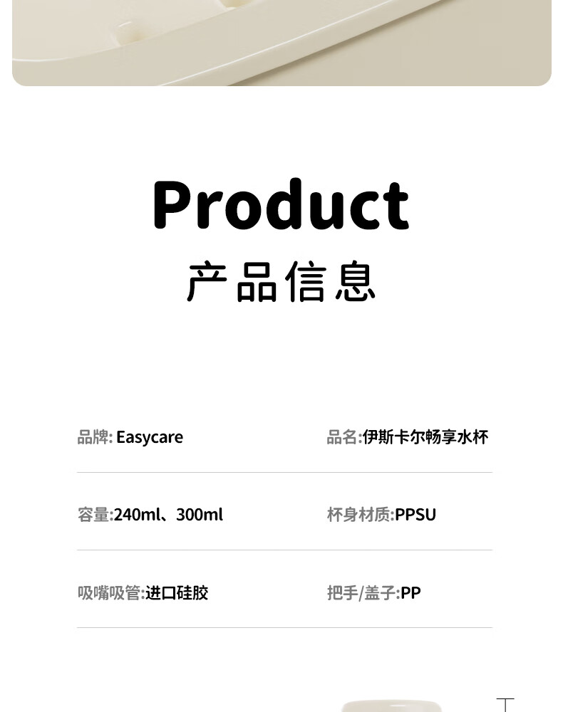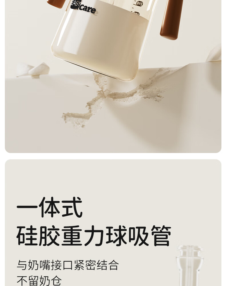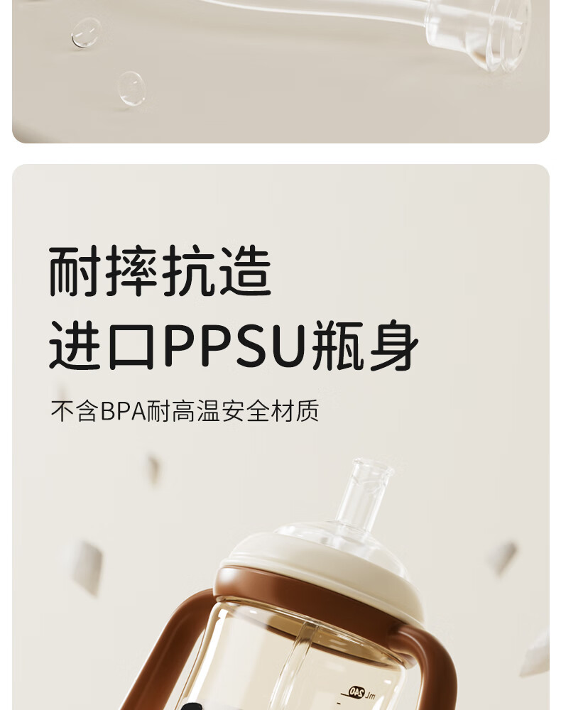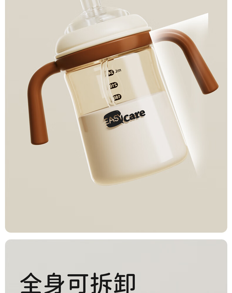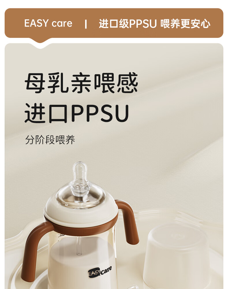 伊斯卡尔(EASYCare)大宽口径奶吸嘴重力球ppsu宽口径奶瓶一岁以上大宝宝吸管杯喝奶 橘黄橙 300ml 12月+ 【V奶嘴】