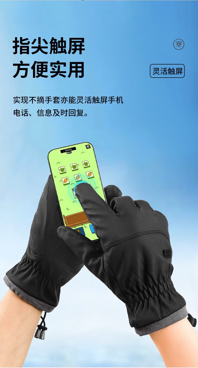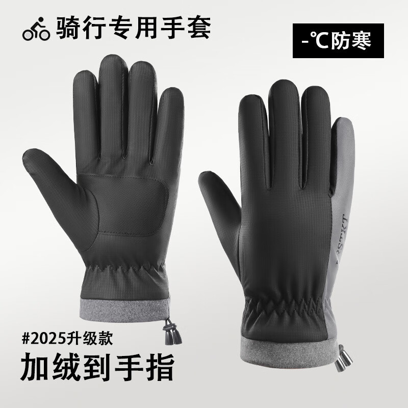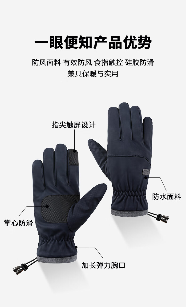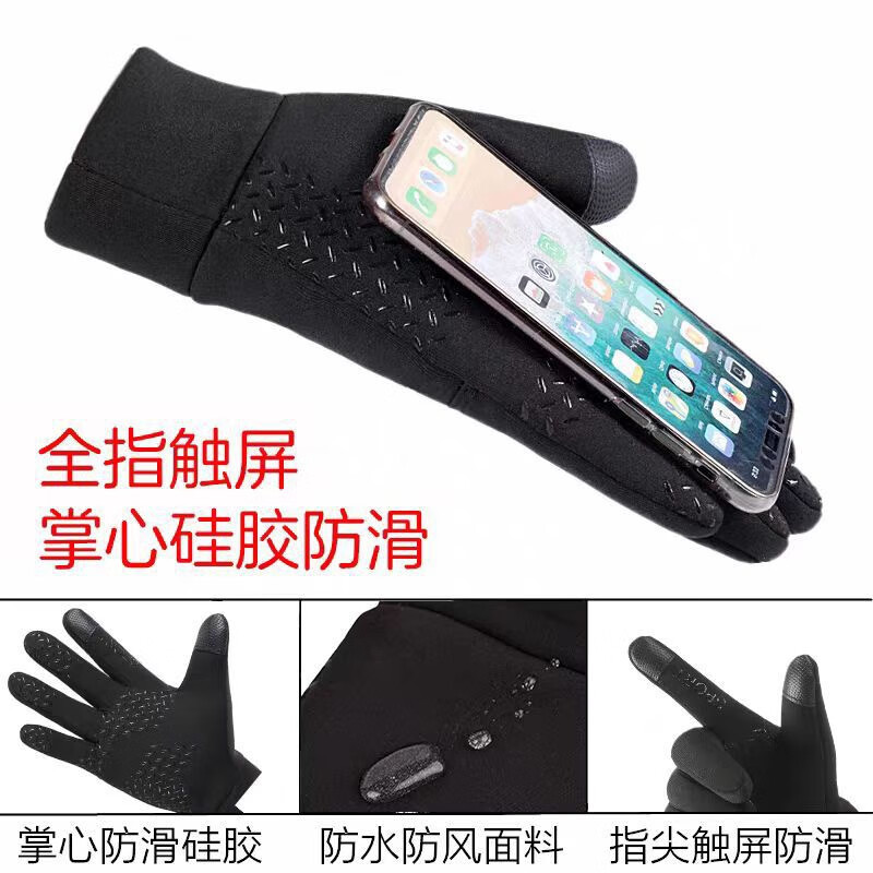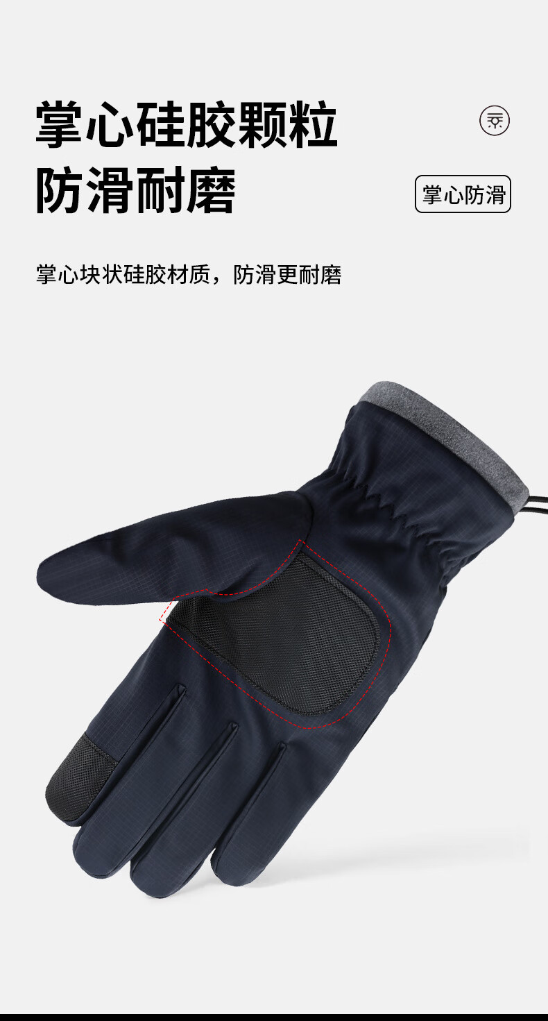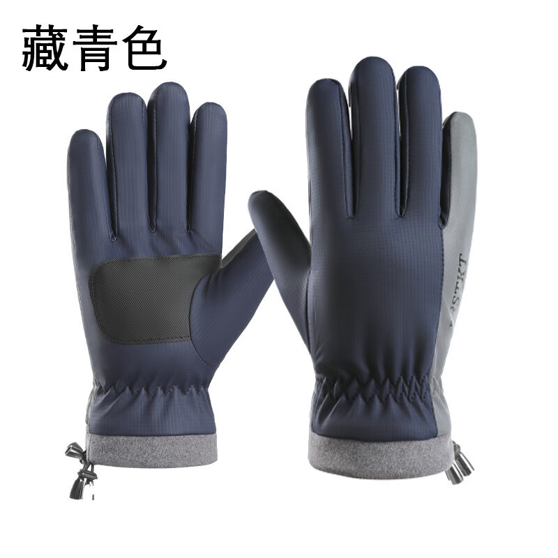 骑行手套男冬季保暖加绒加厚防风防水触屏摩托车户外骑车手套 肤感-蓝色 均码