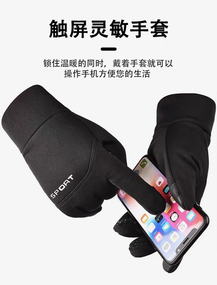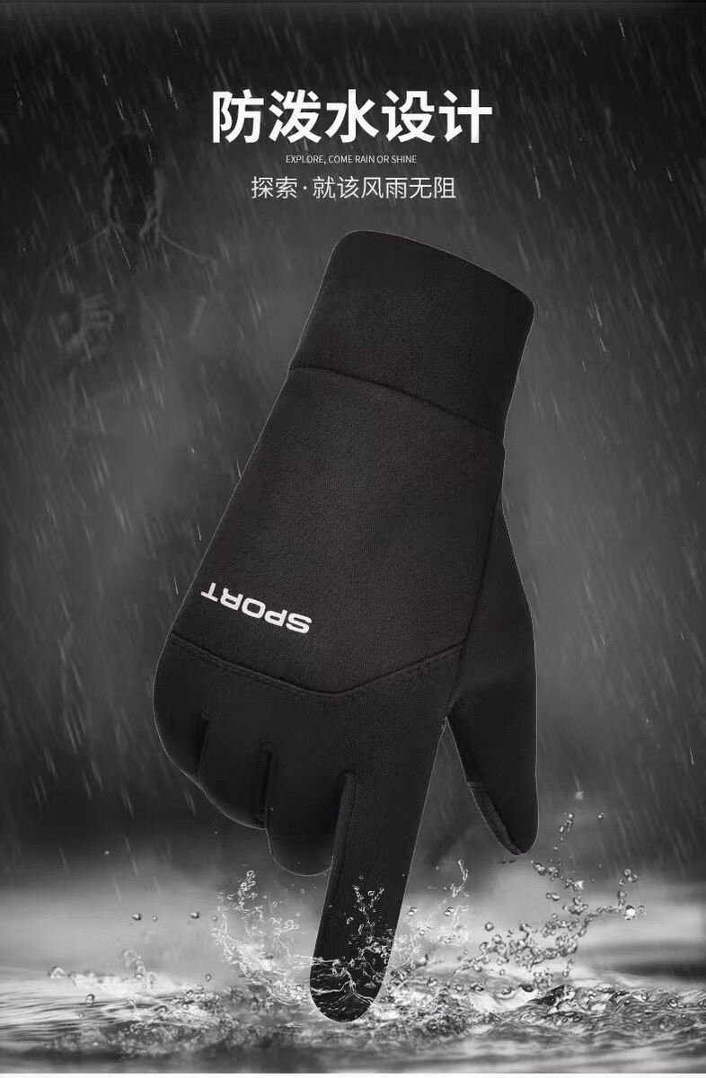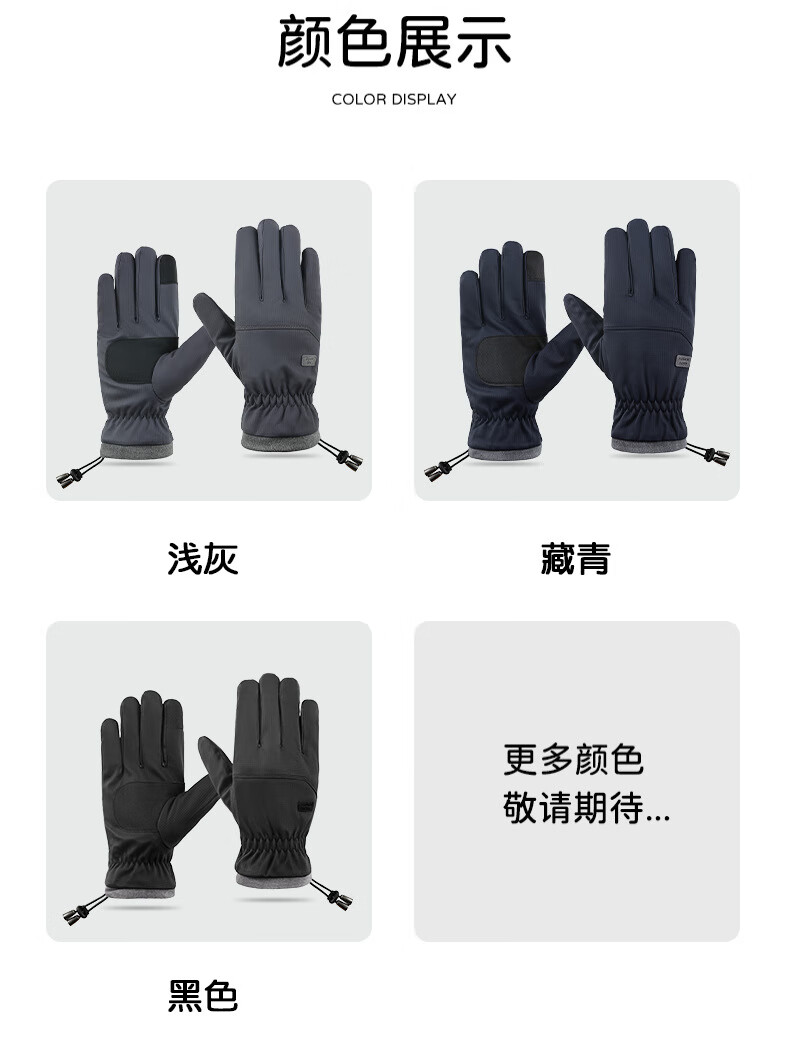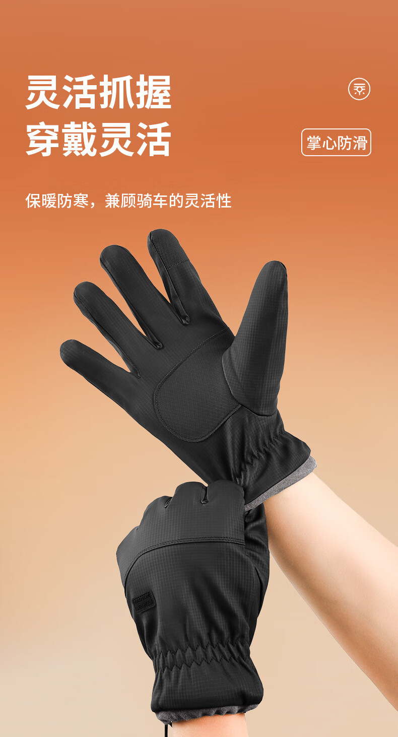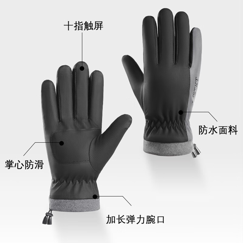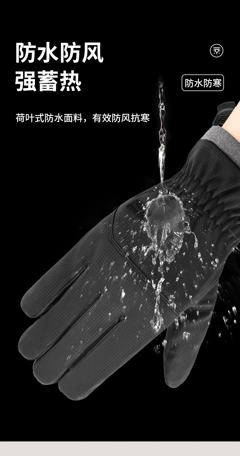 骑行手套男冬季保暖加绒加厚防风防水触屏摩托车户外骑车手套 肤感-蓝色 均码