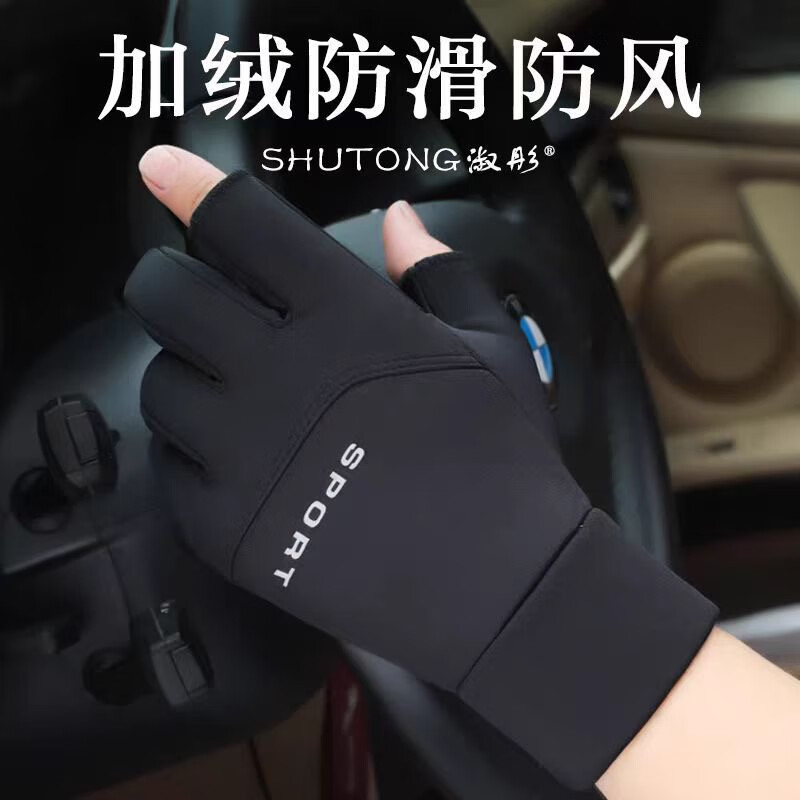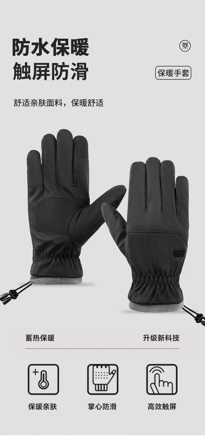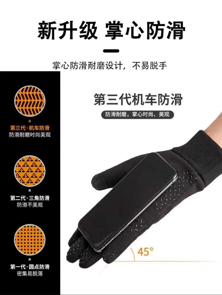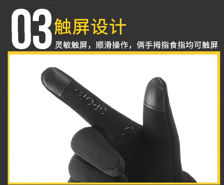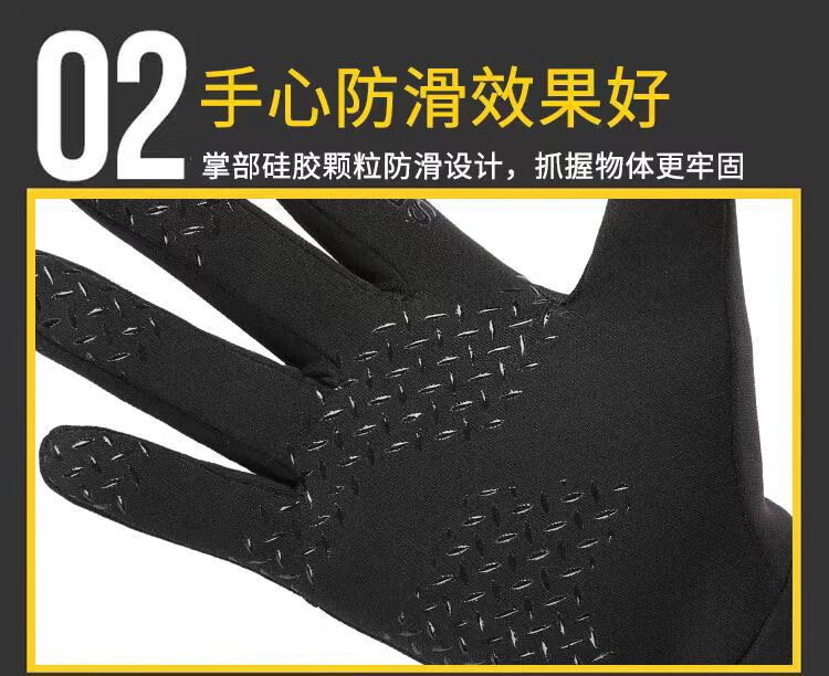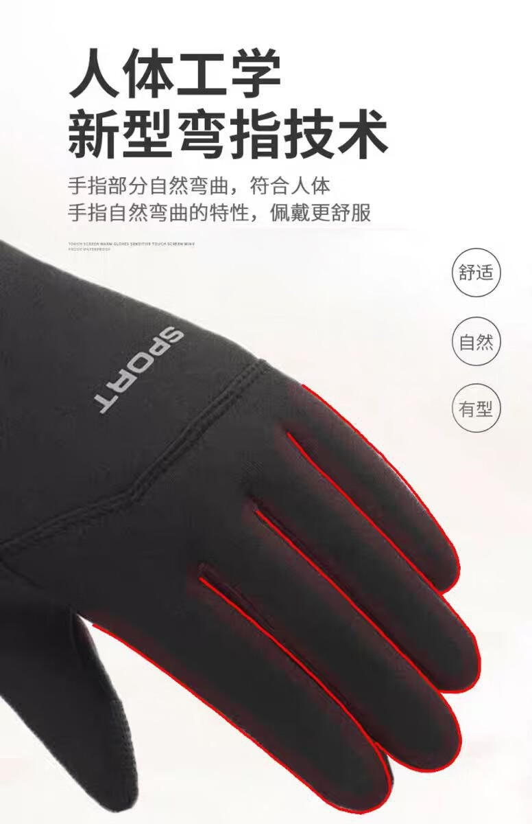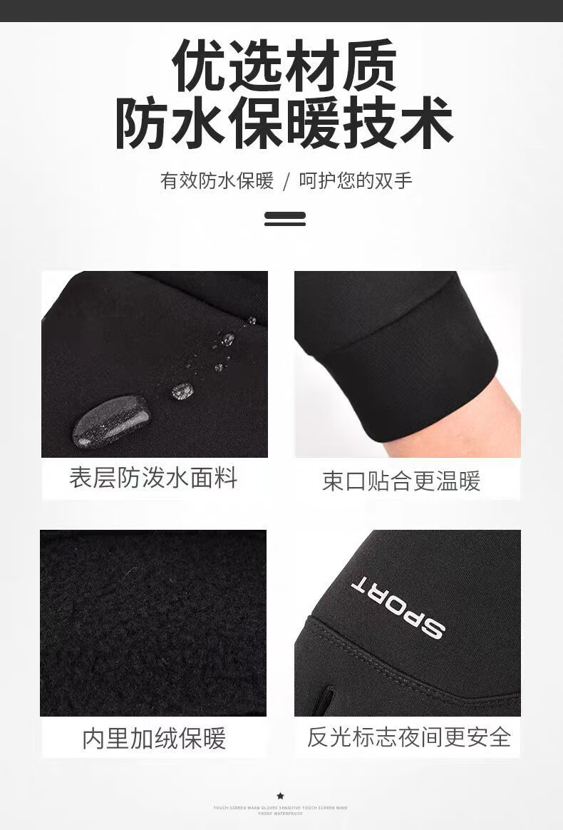 骑行手套男冬季保暖加绒加厚防风防水触屏摩托车户外骑车手套 肤感-蓝色 均码