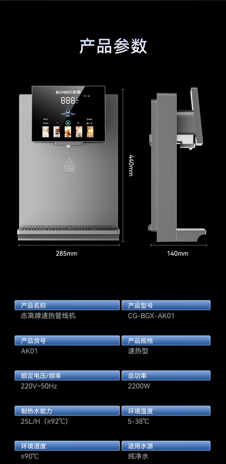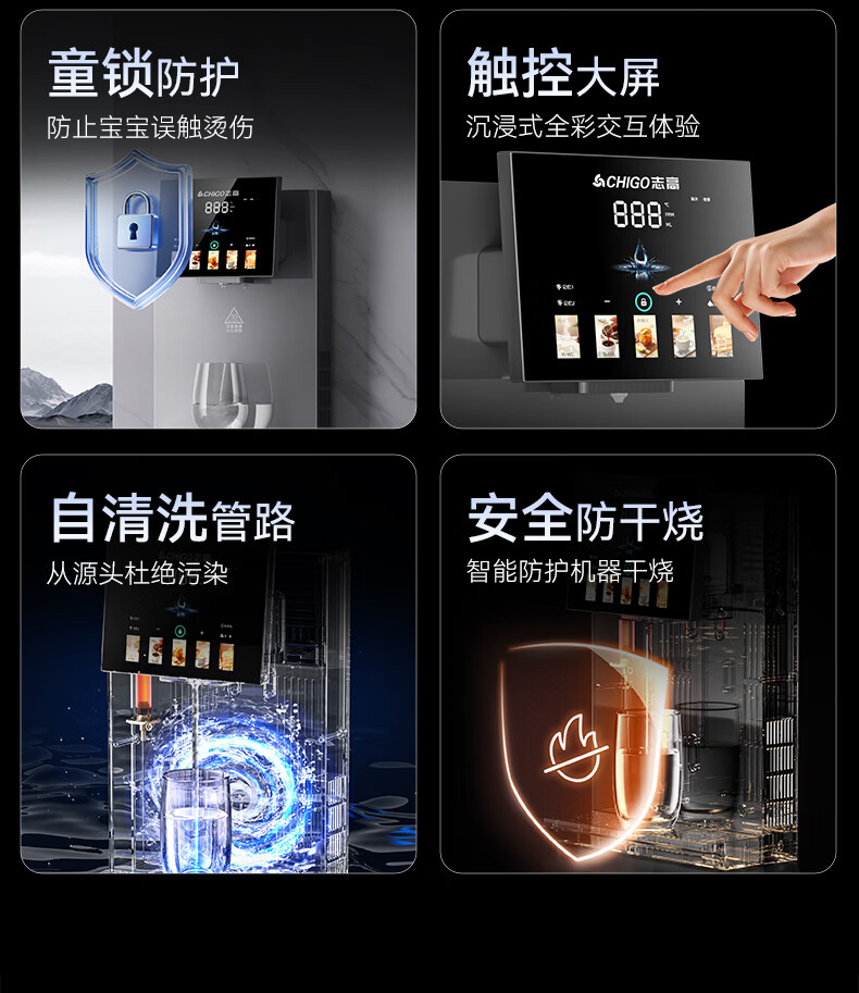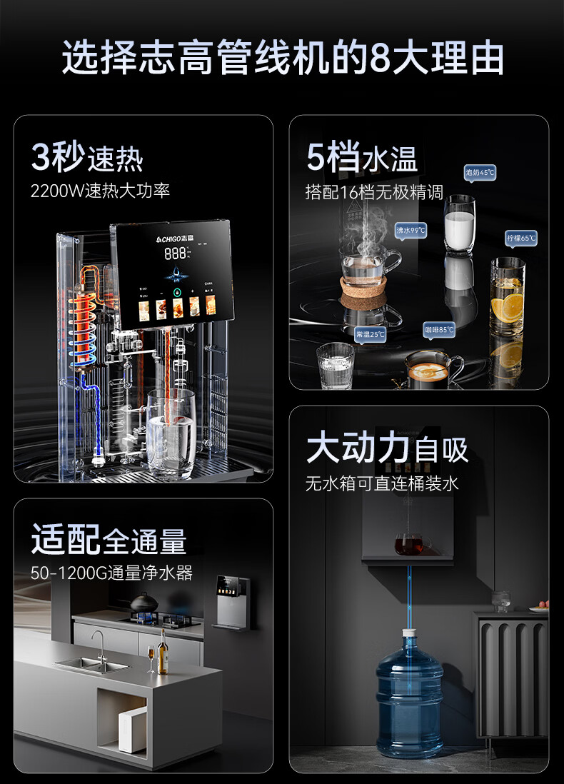 志高(CHIGO)【官方直营】壁挂管线机制冷制热一体直饮机可接桶装水带自吸餐边柜饮水机 AC29即热自吸款接桶装水/净水器(视频安装)