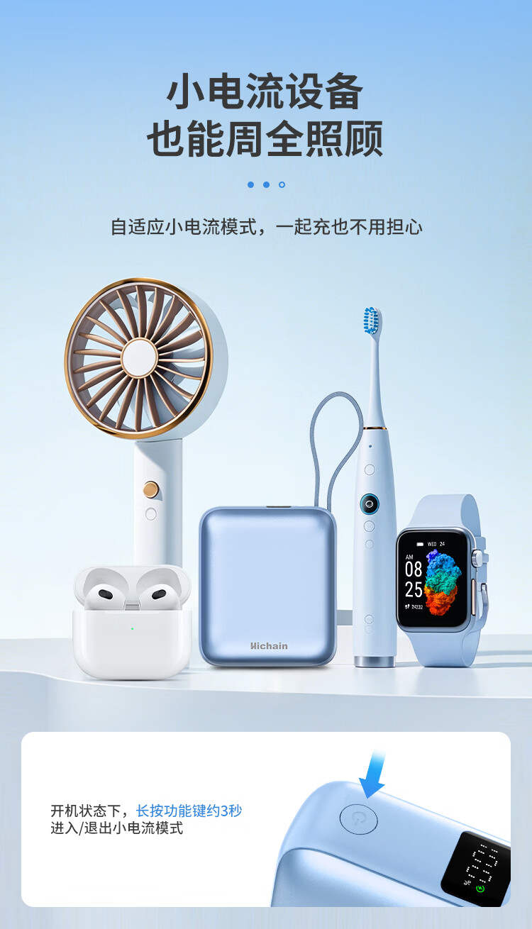 Hichain和昌充电宝3C认证可上飞机移动电源自带线10000毫安22.5W快充迷你小巧便携大容量通用苹果16/17pro 【22.5W快充】自带双线10000mAh紫