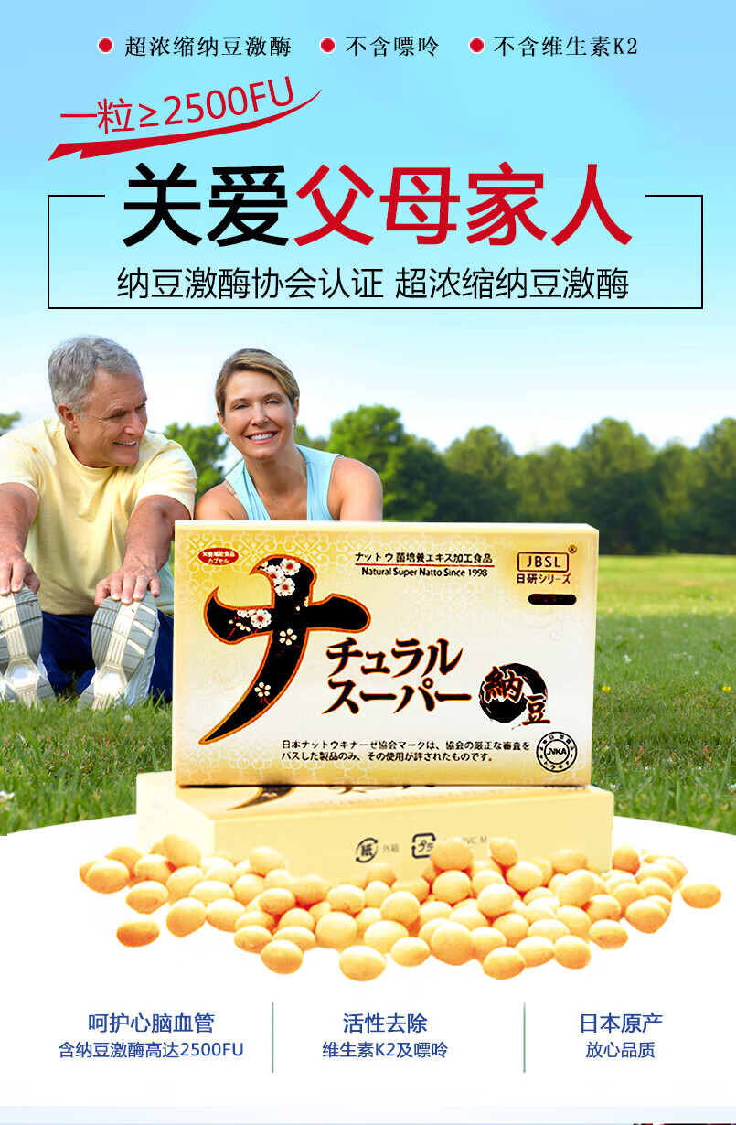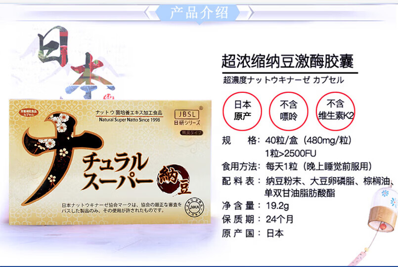 JBSL日研系列日本纳豆激酶胶囊调节三高降血脂甘油三酯脑梗送中老年人 40粒*1盒