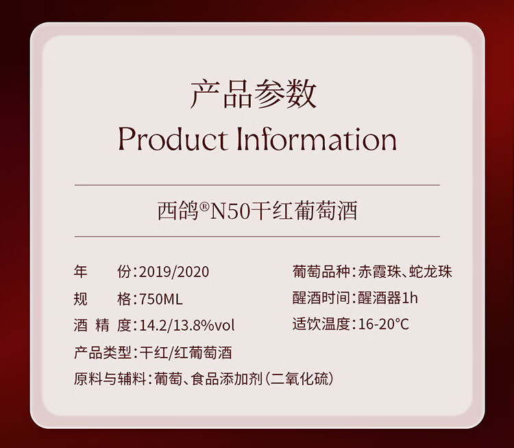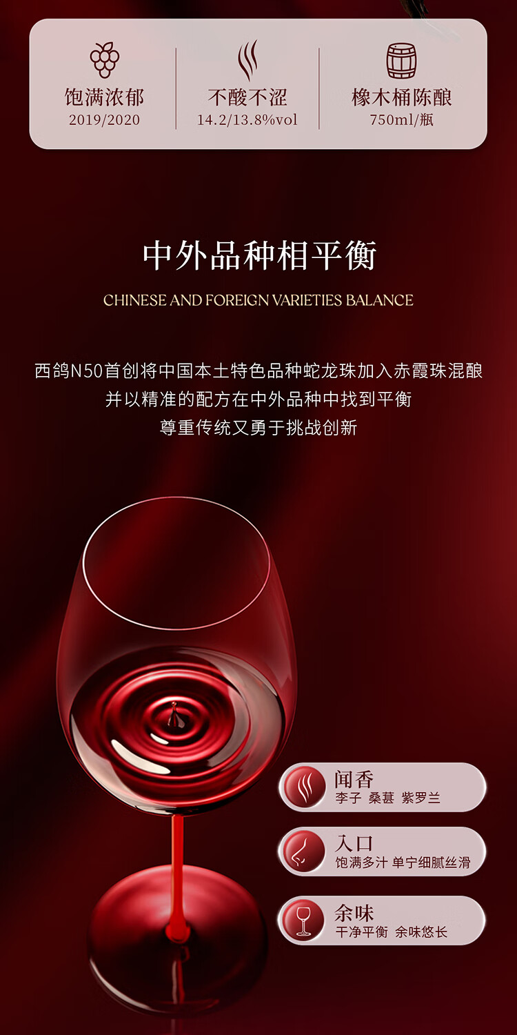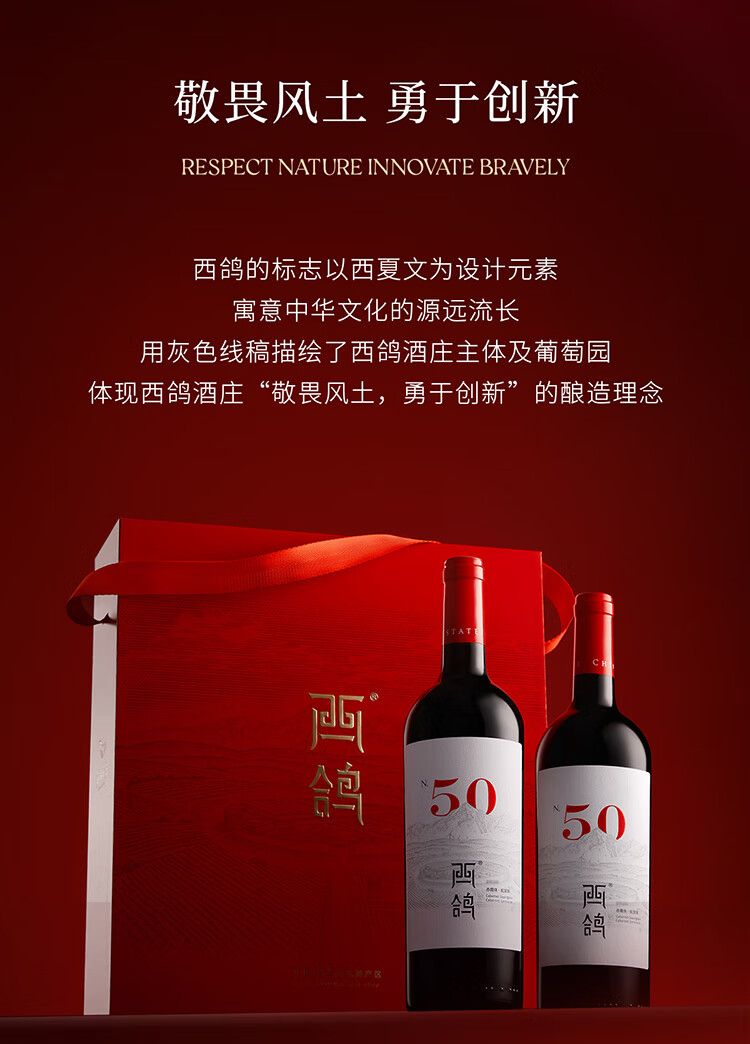 西鸽酒庄红酒N50干红葡萄酒宁夏贺兰山东麗葡萄酒送礼高档礼盒装 西鸽N50整箱礼盒装 750ml*6瓶