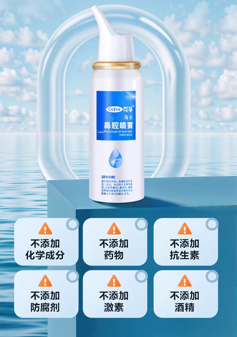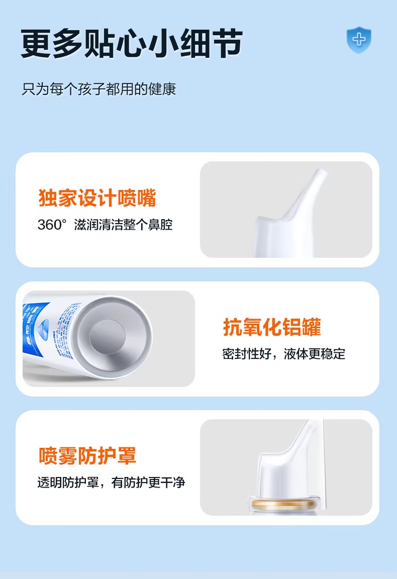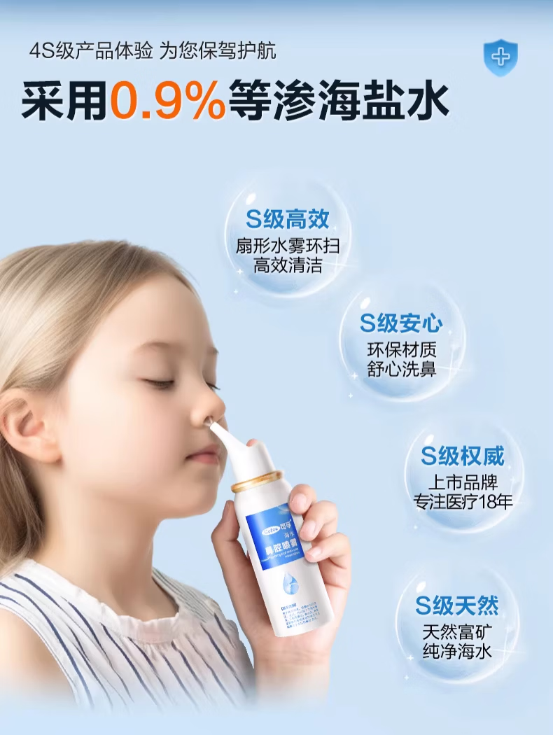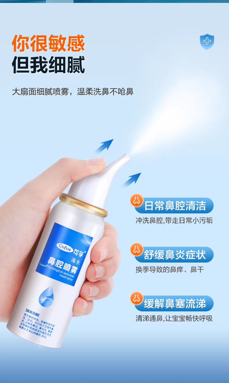 可孚生理性海盐水鼻腔喷雾剂医用洗鼻器婴儿家用成人儿童过敏性鼻炎 【儿童款买2送1瓶】60ml-0.9%(短喷头)