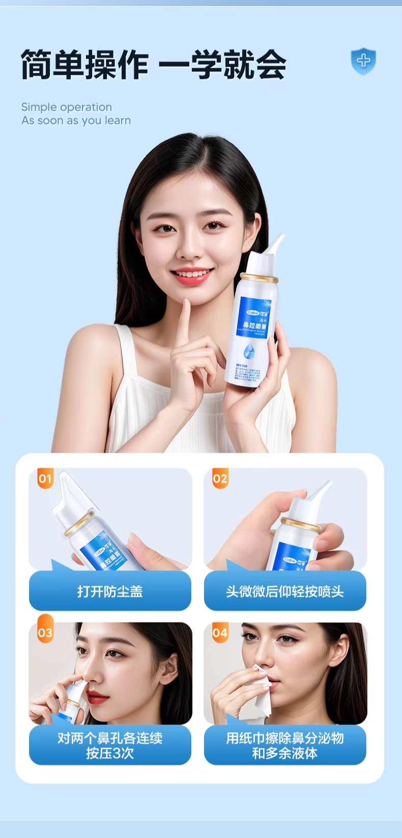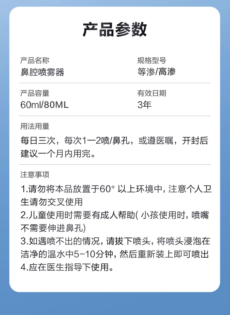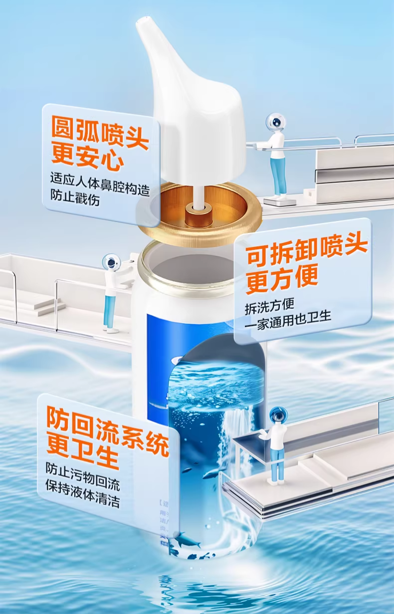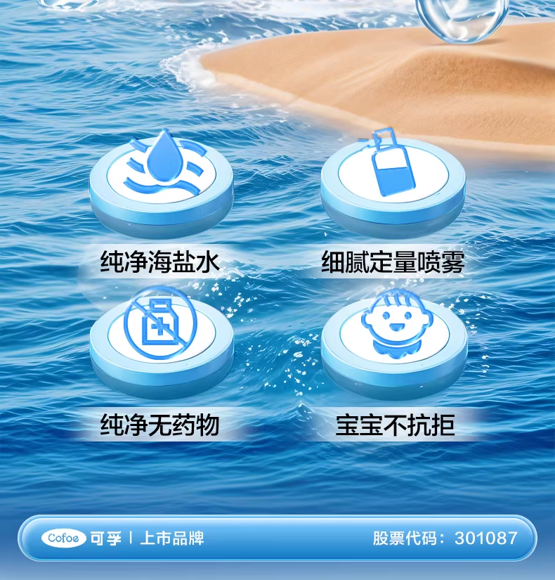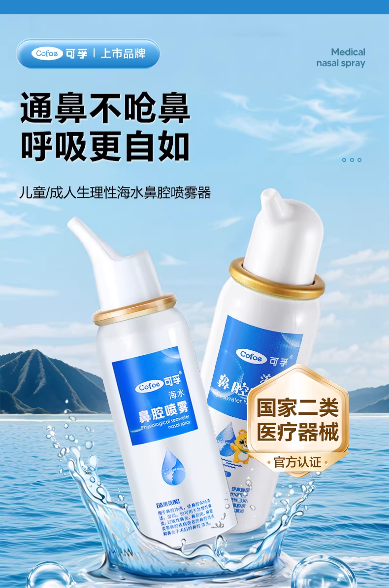 可孚生理性海盐水鼻腔喷雾剂医用洗鼻器婴儿家用成人儿童过敏性鼻炎 【儿童款买2送1瓶】60ml-0.9%(短喷头)