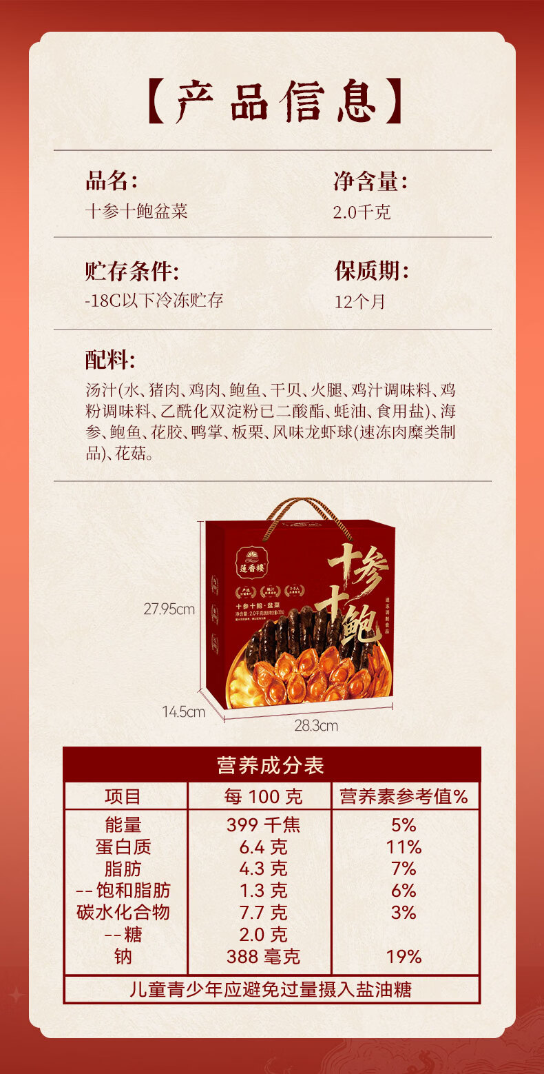莲香楼十参十鲍佛跳墙礼盒4斤盆菜鲍鱼海参花胶加热即食年夜饭年货送礼 莲香楼十参十鲍佛跳墙礼盒4.5斤*1盒