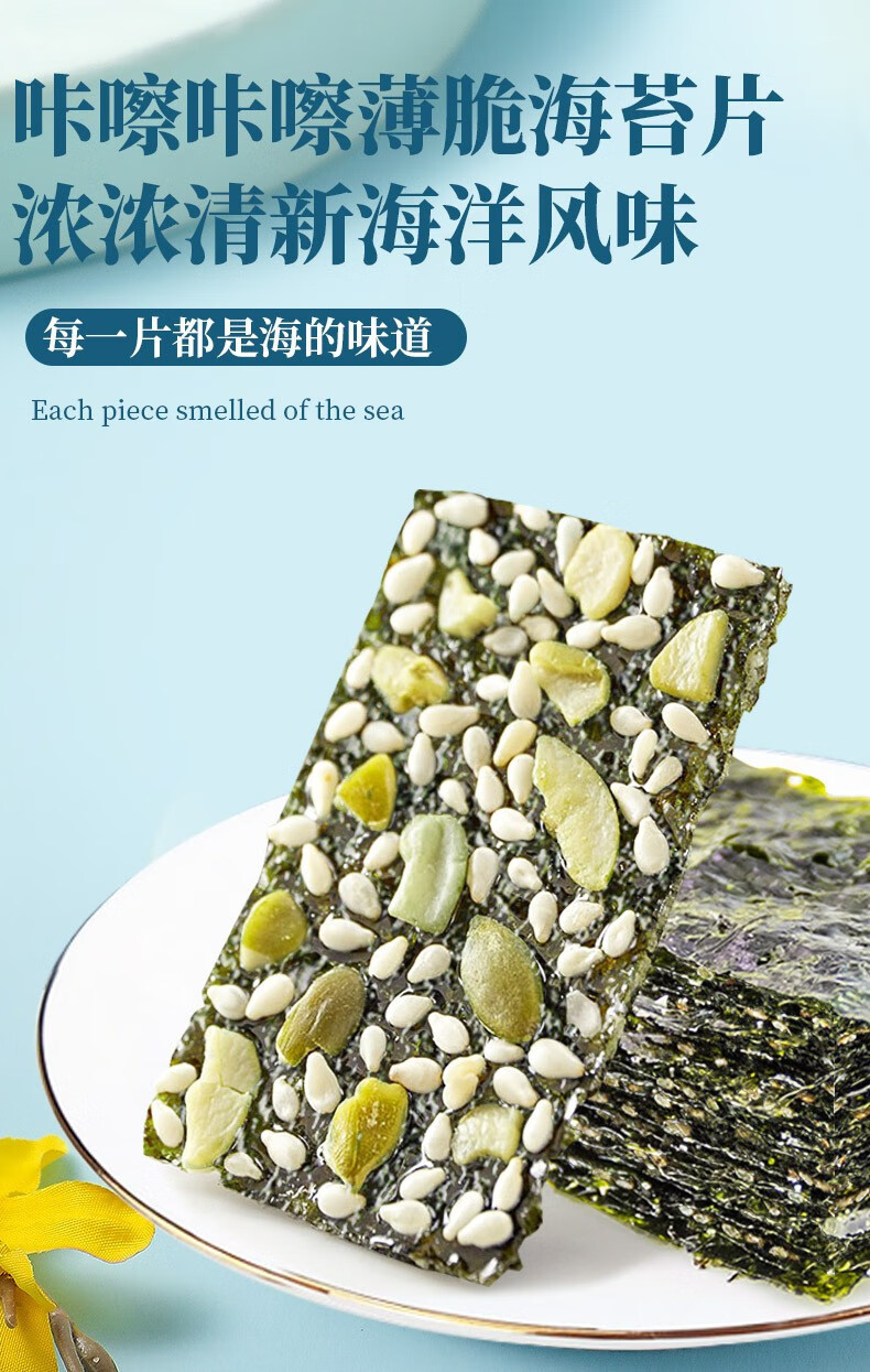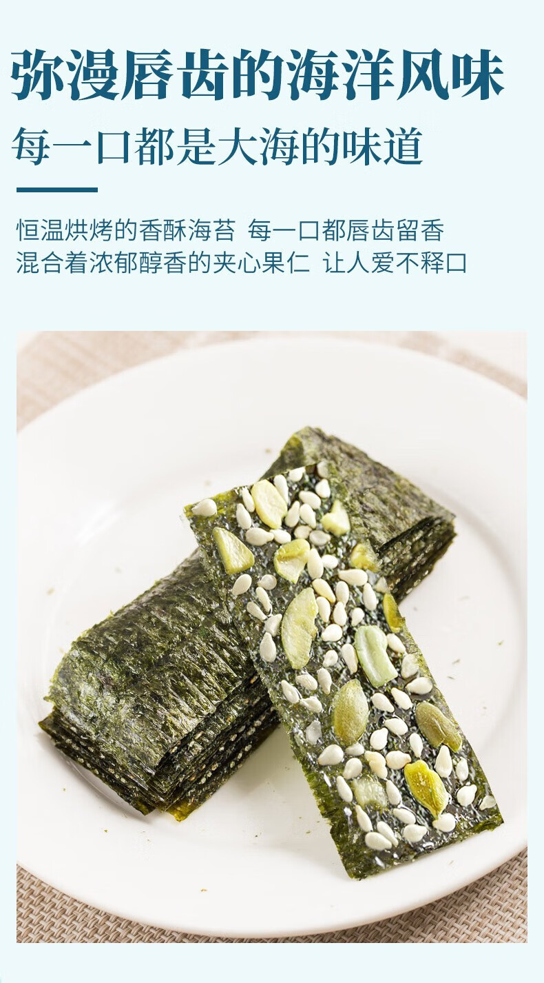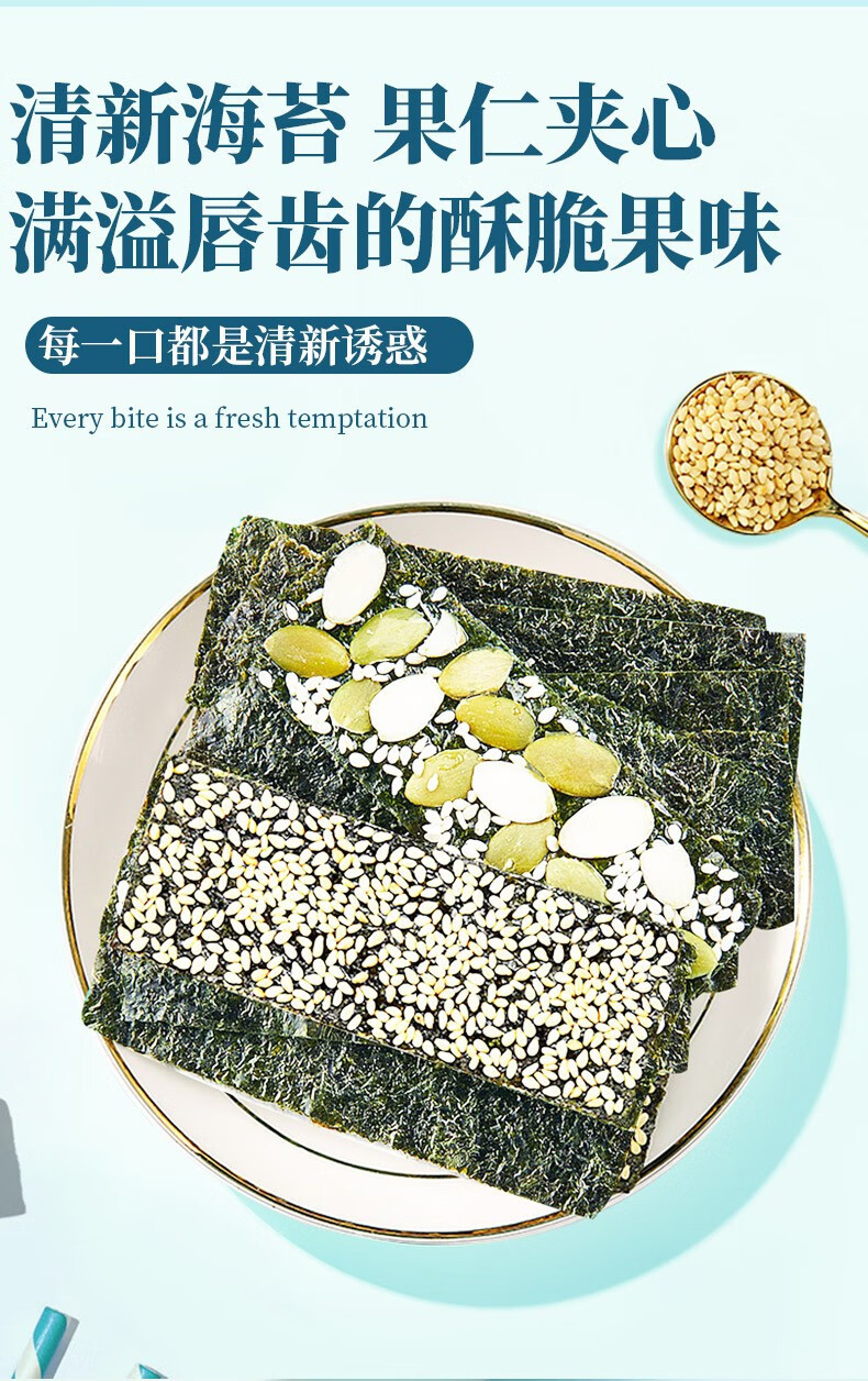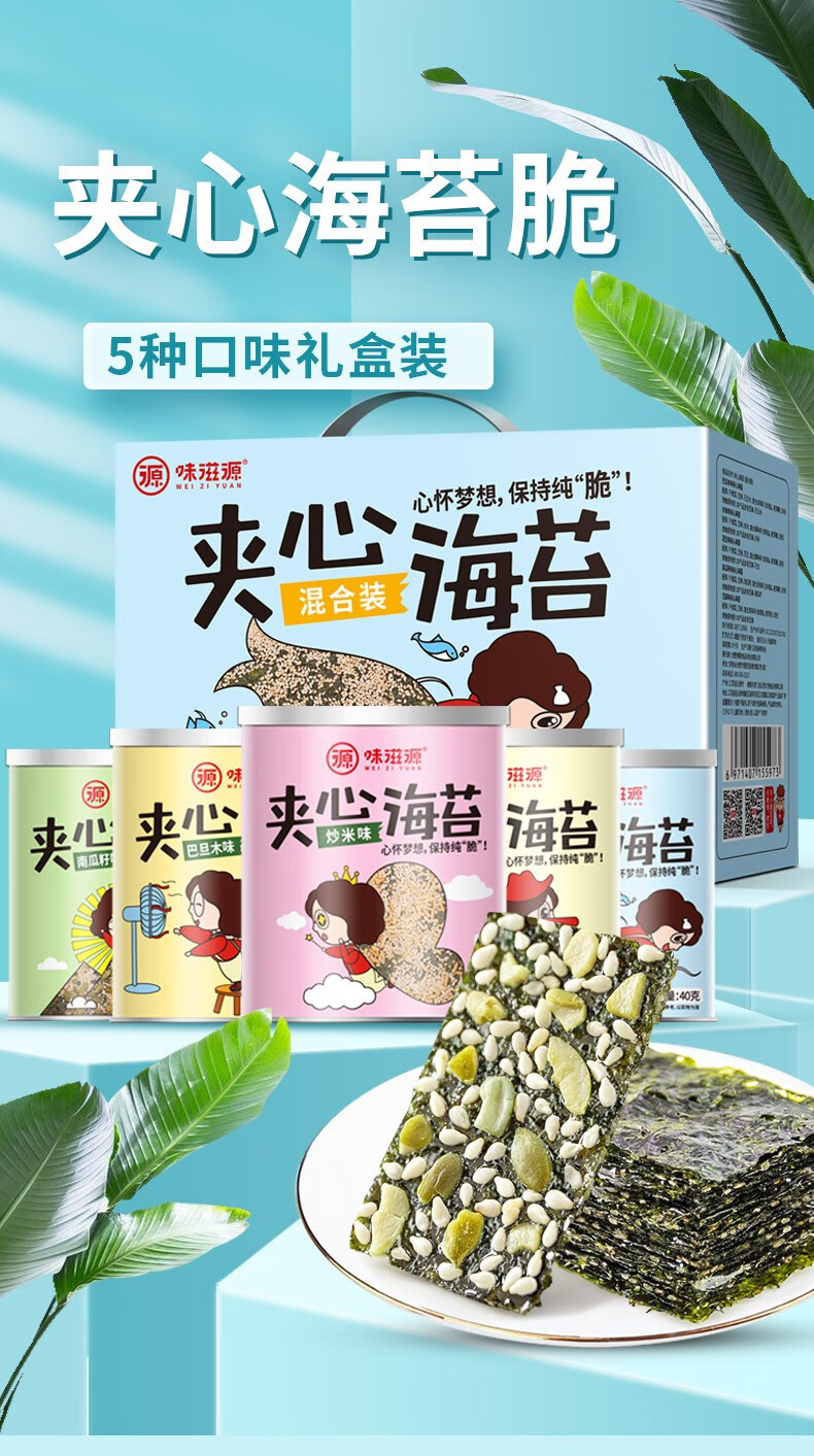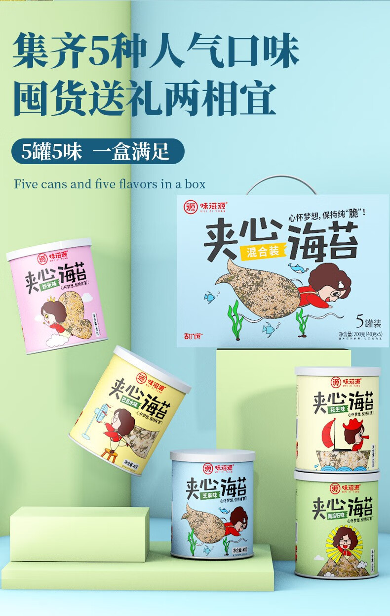 味滋源 夹心海苔脆5罐5口味可选 芝麻夹心海苔儿童零食 香酥爽口小点心 40g*1罐 (南瓜子味 单罐装) 1份