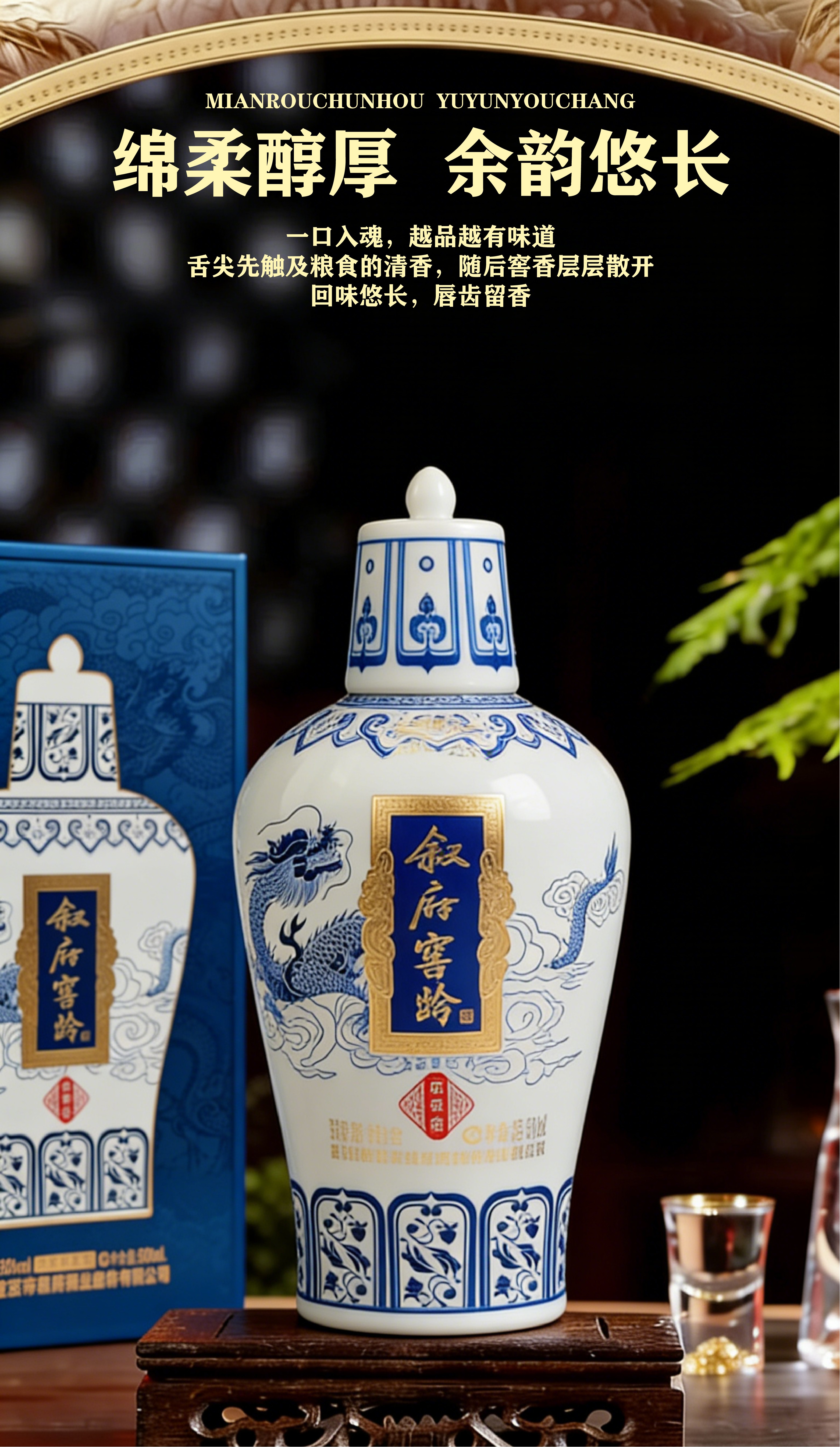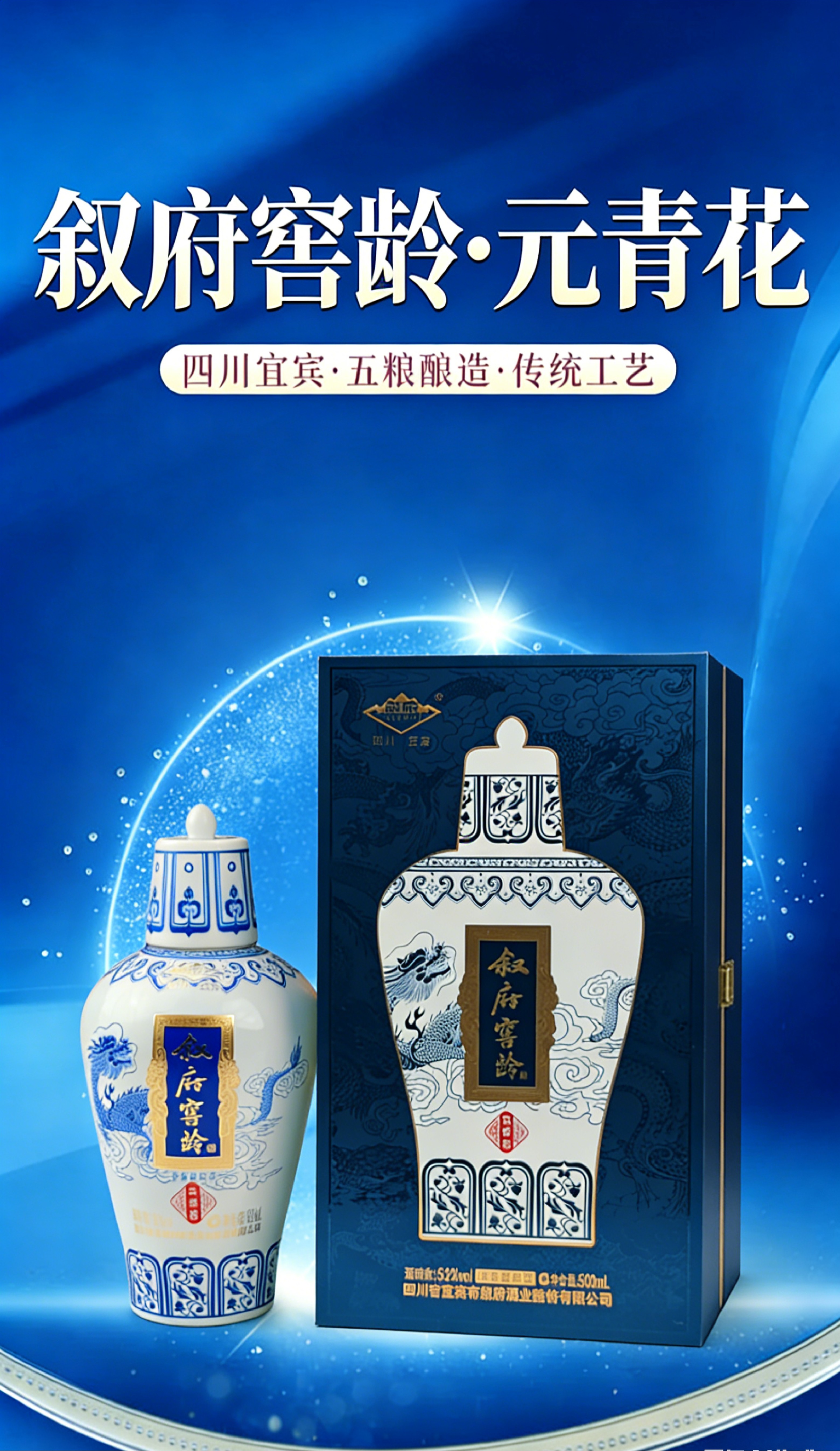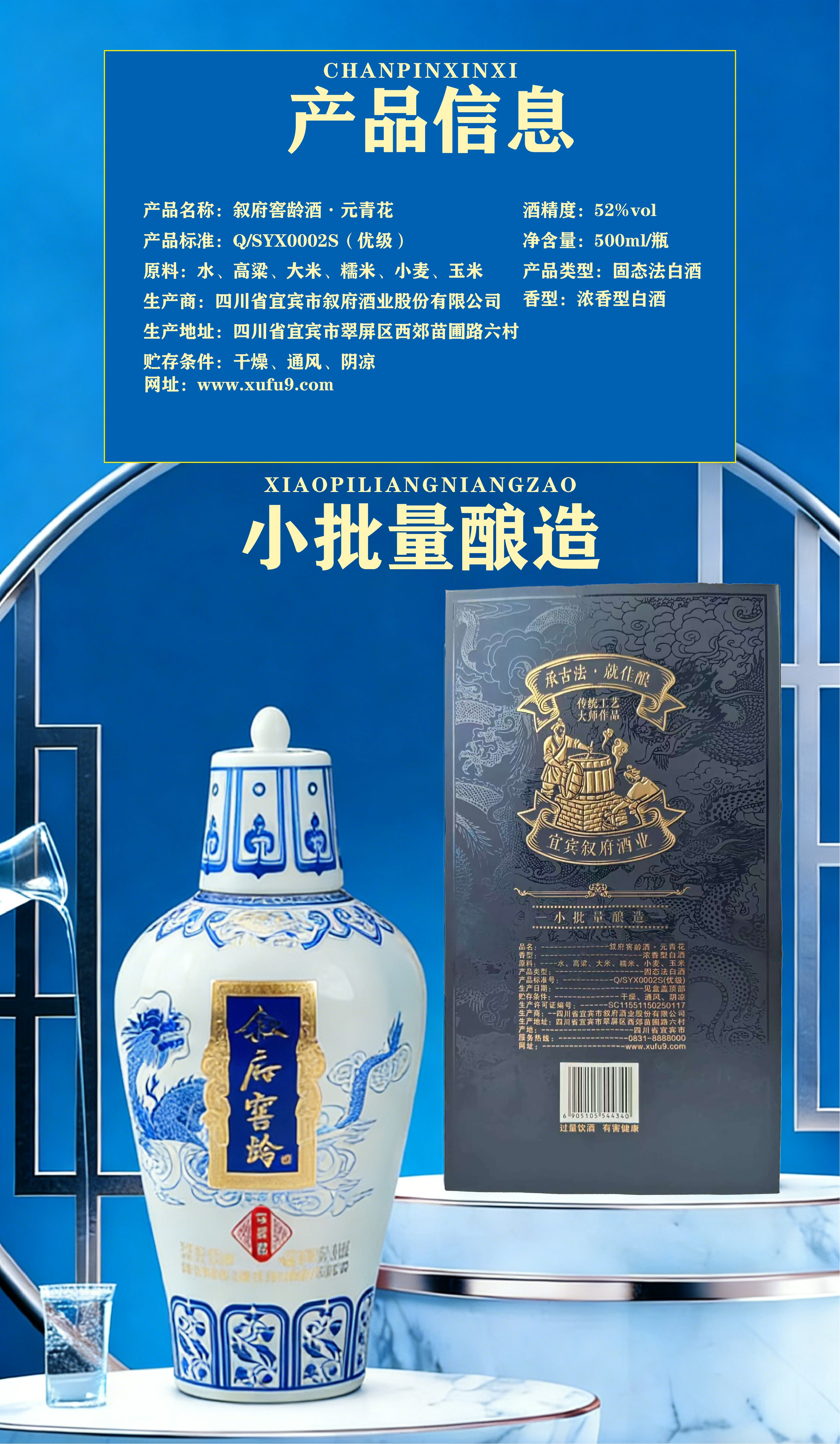 叙府【年货节】叙府窖龄酒元青花浓香型纯粮白酒52度500ml商务宴请 52度 500mL 2瓶 叙府窖龄酒元青花双支配礼袋