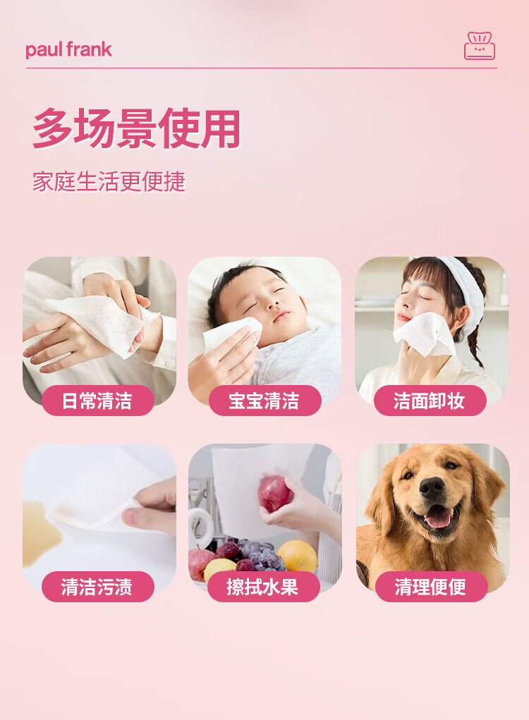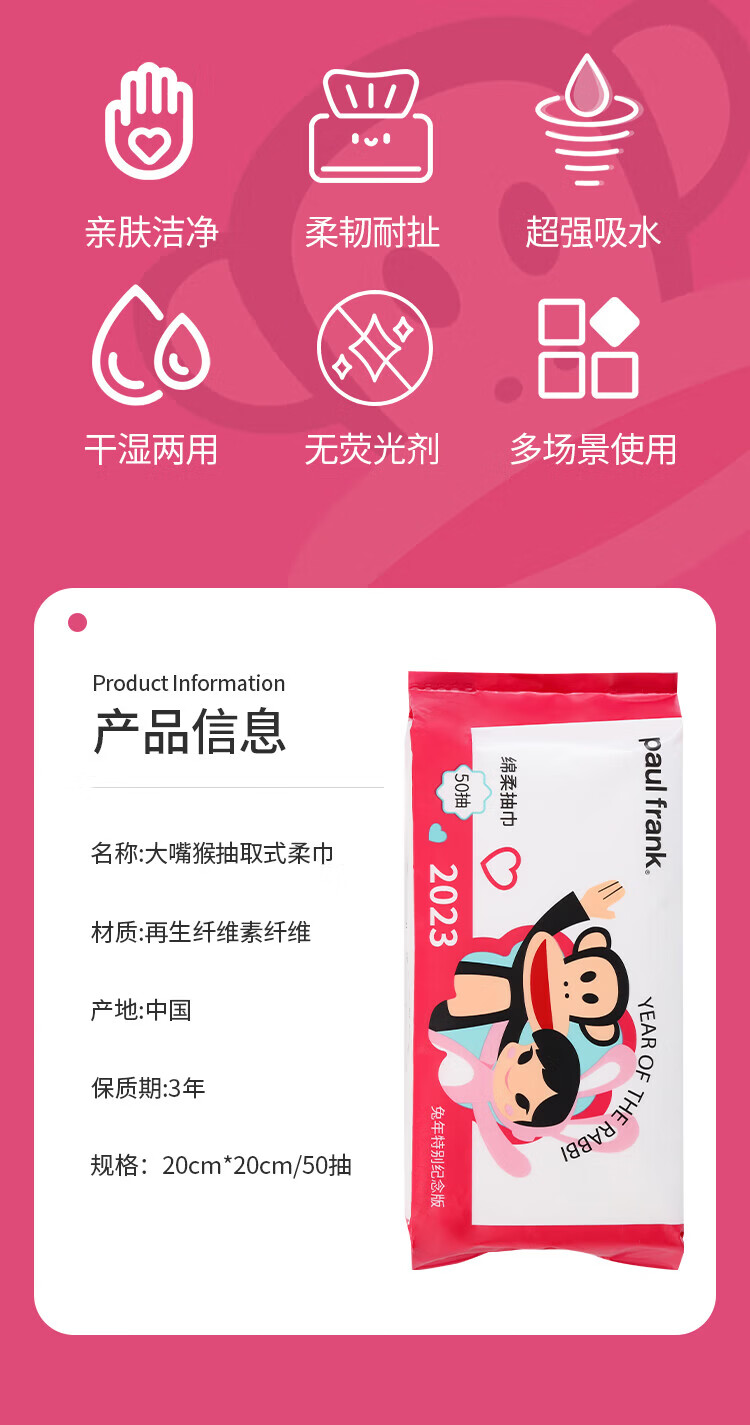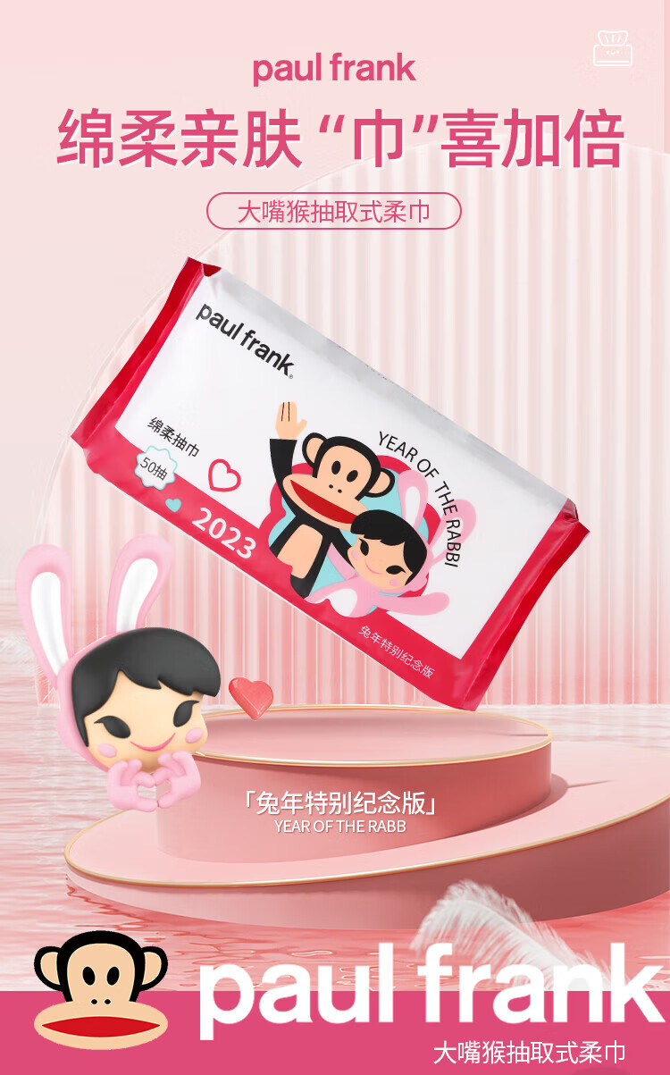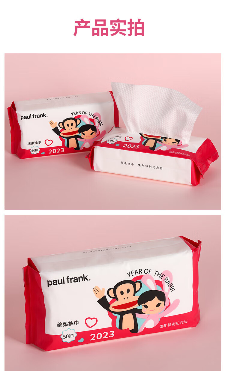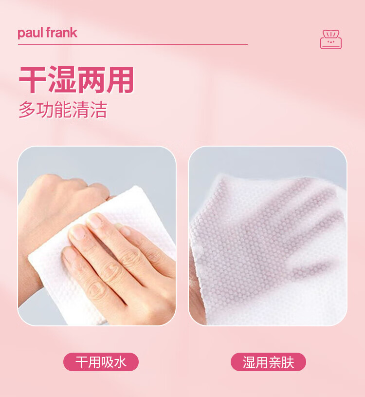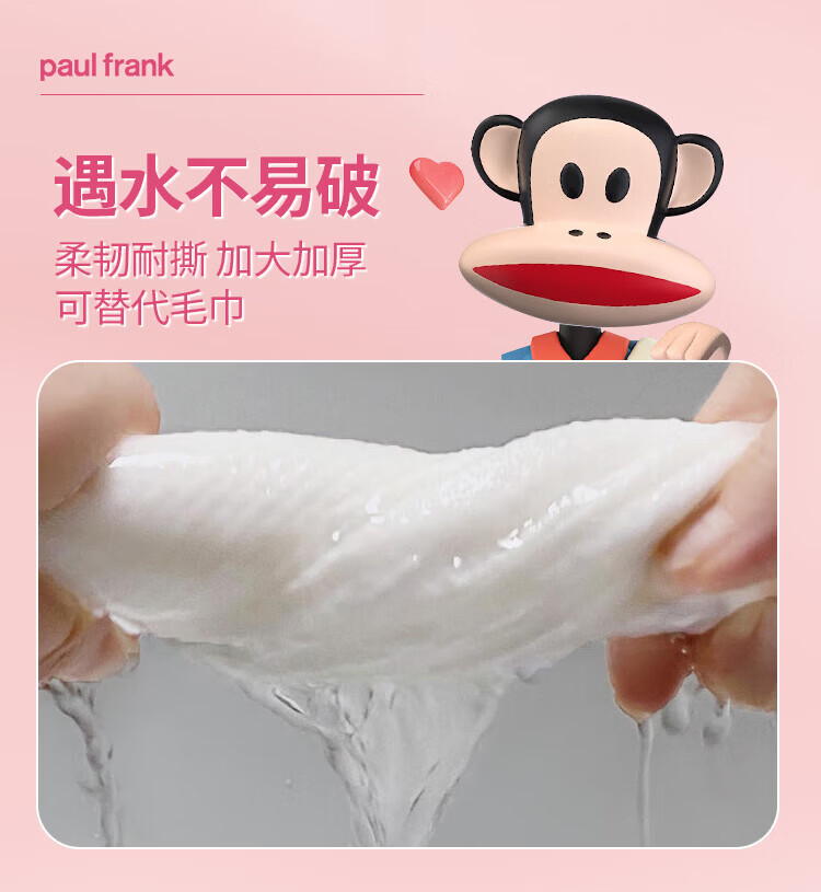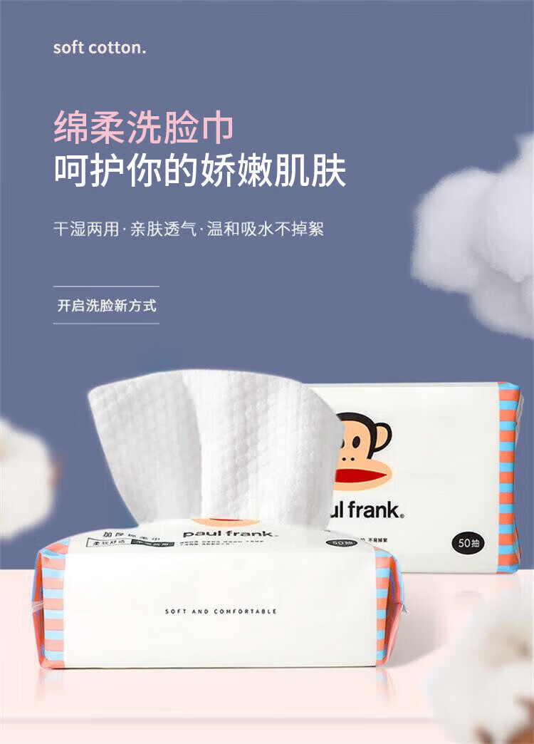大嘴猴paul frank 洗脸巾 一次性加厚绵柔巾 干湿两用抽取式洁面巾礼物 厚款 50抽 抽取式柔巾5包