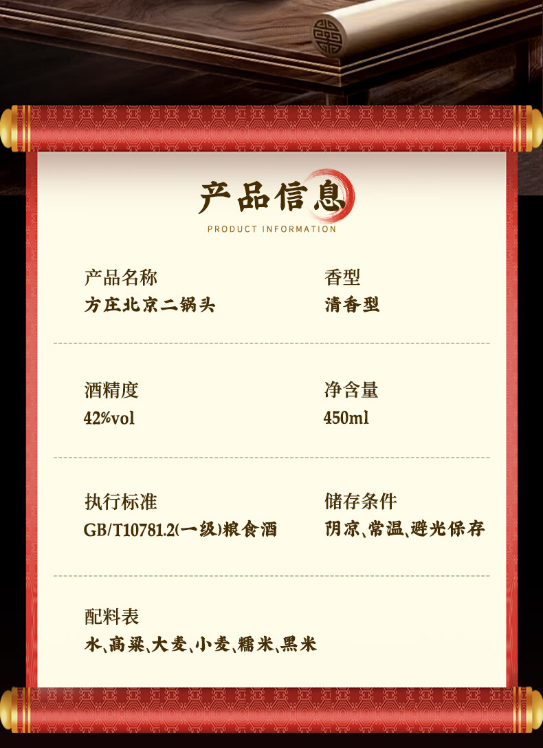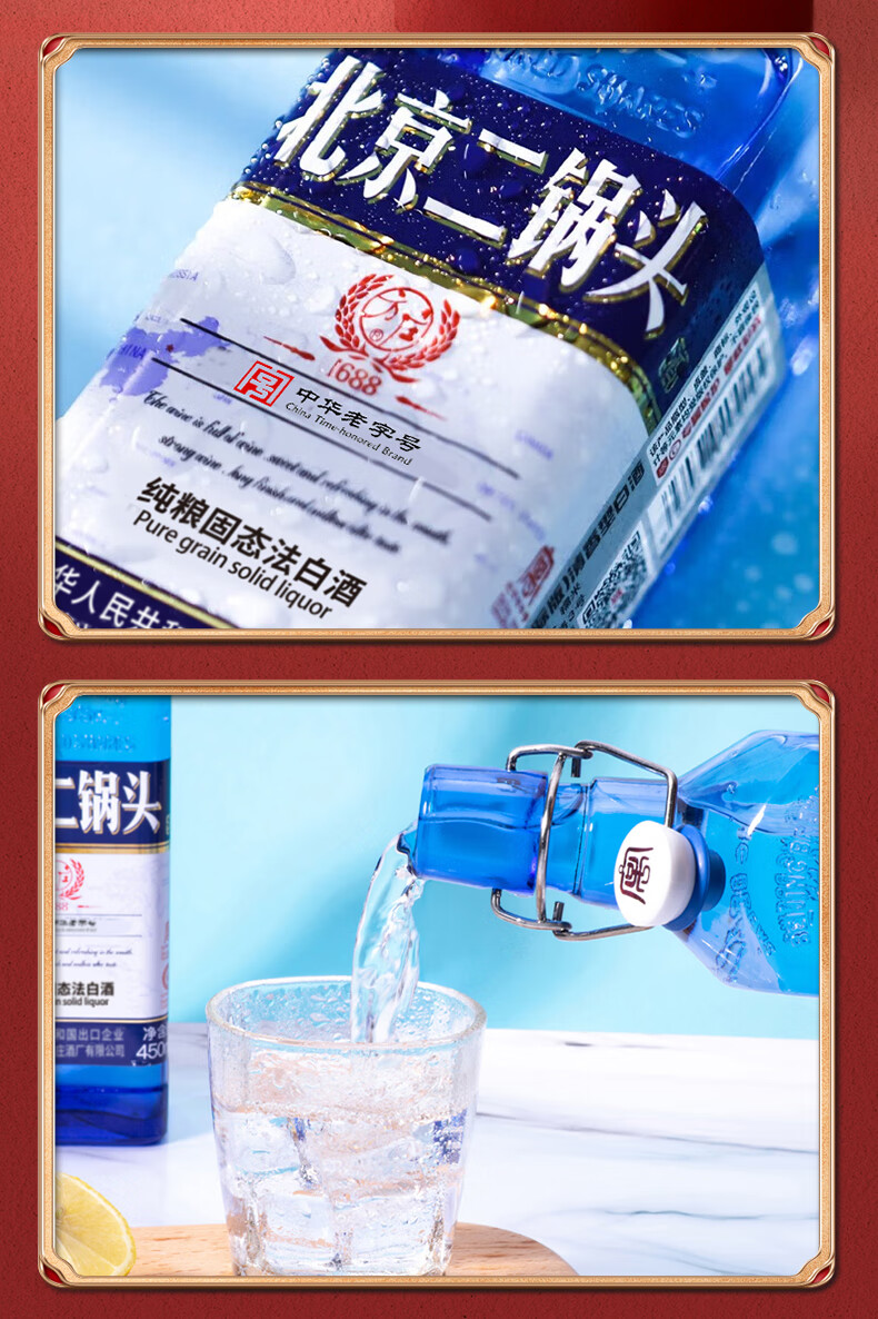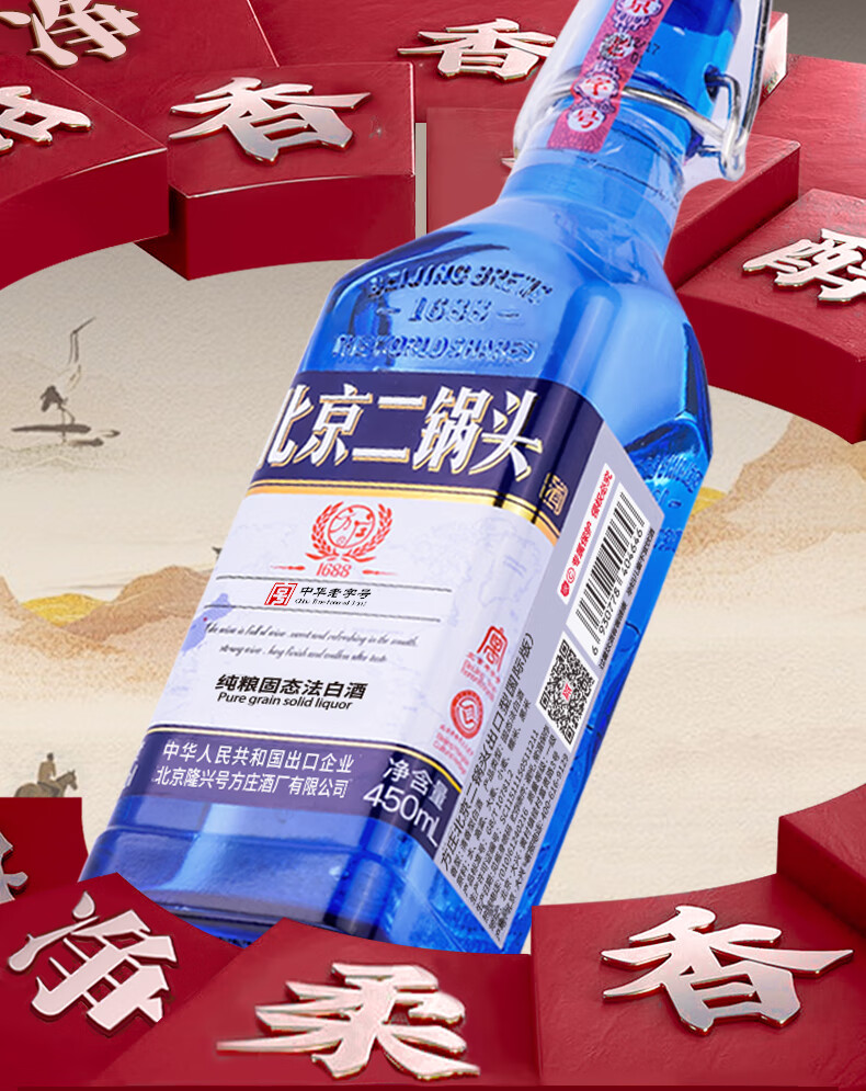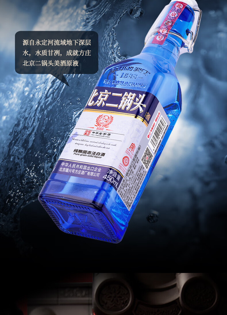 方庄北京二锅头42度方瓶蓝 清香型白酒礼盒 自饮送长辈高粱纯粮酒整箱 42度 450mL 6瓶 [国际蓝]