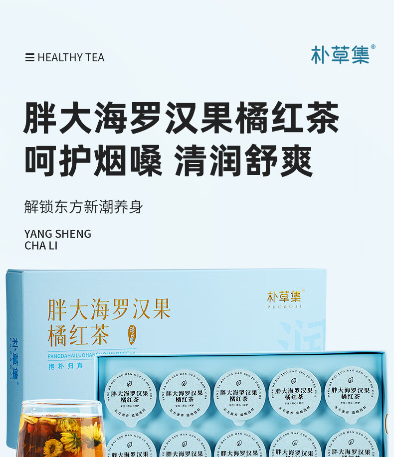 朴草集胖大海罗汉果化橘红养生茶 独立小罐礼盒装 润嗓润肺护咽冲泡茶饮 150g*1盒 (15克*10罐)草本原材料