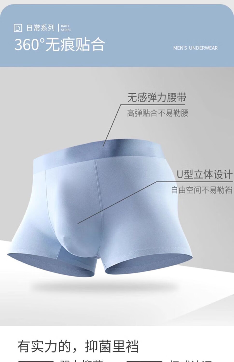 宜而爽男士纯棉内裤抗菌短裤纯色宽松大码四角裤冰丝无痕式平角裤透气 (新疆长绒棉纯棉)黑色+浅灰+宝蓝+深灰 4条 5XL 【建议180-200斤】