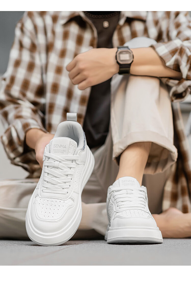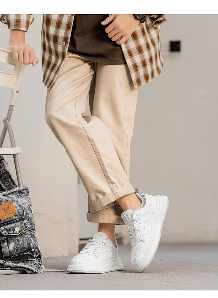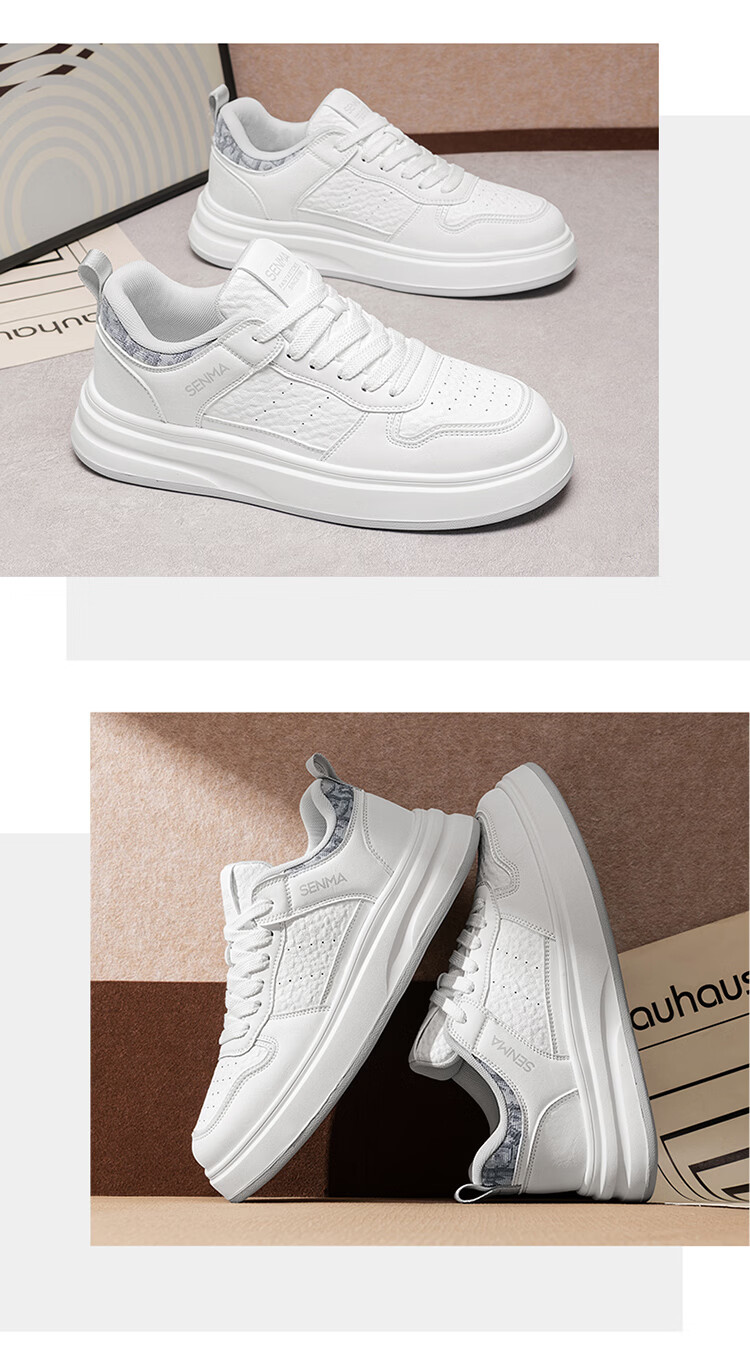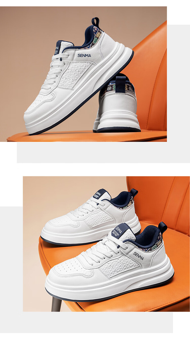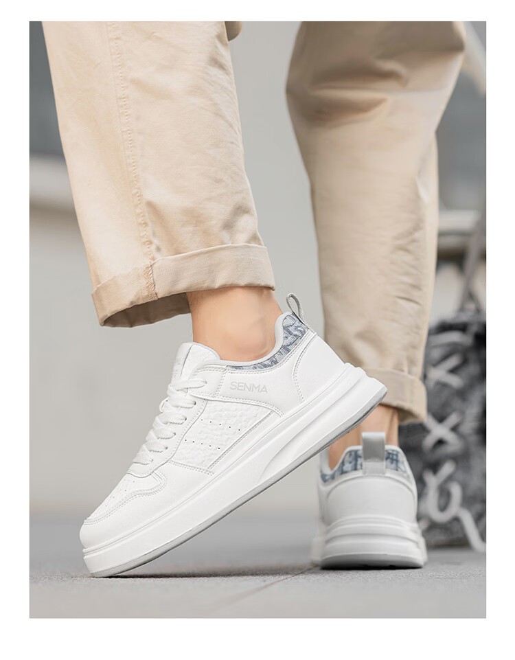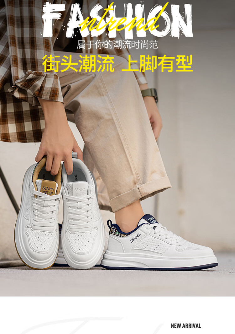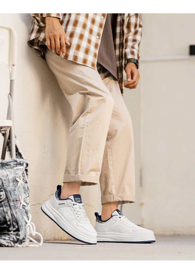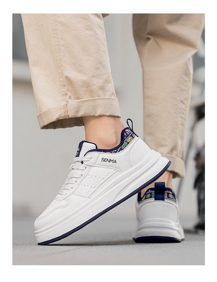 森馬男鞋2026春季潮流百搭男士休闲低帮板鞋运动厚底增高真皮小白潮鞋 白蓝【基础款】 39 标准码数/现货秒发