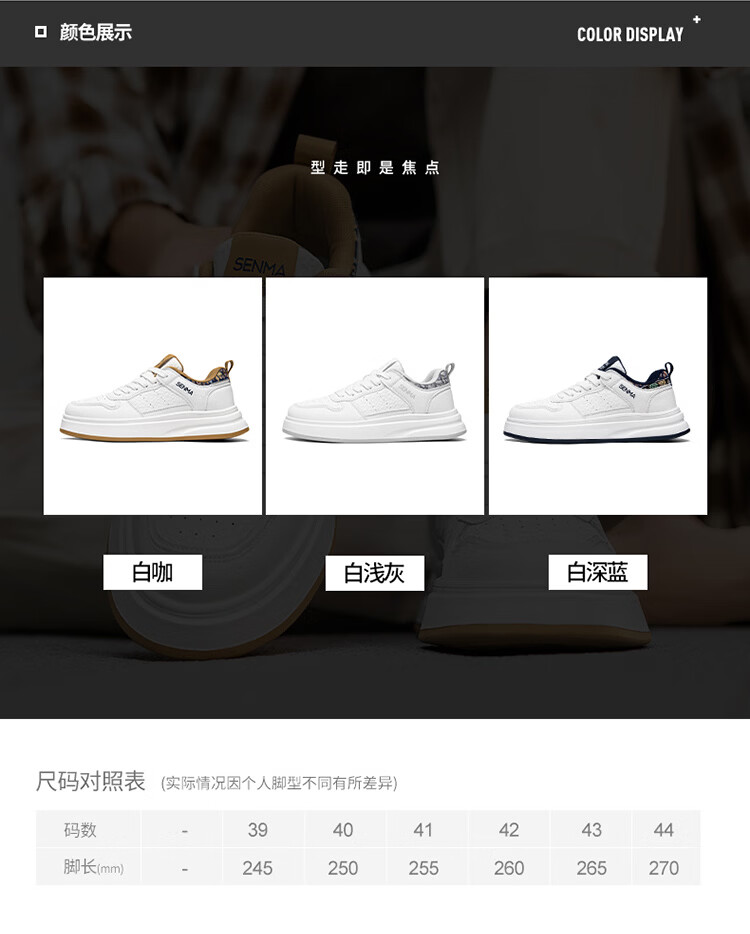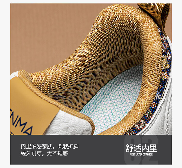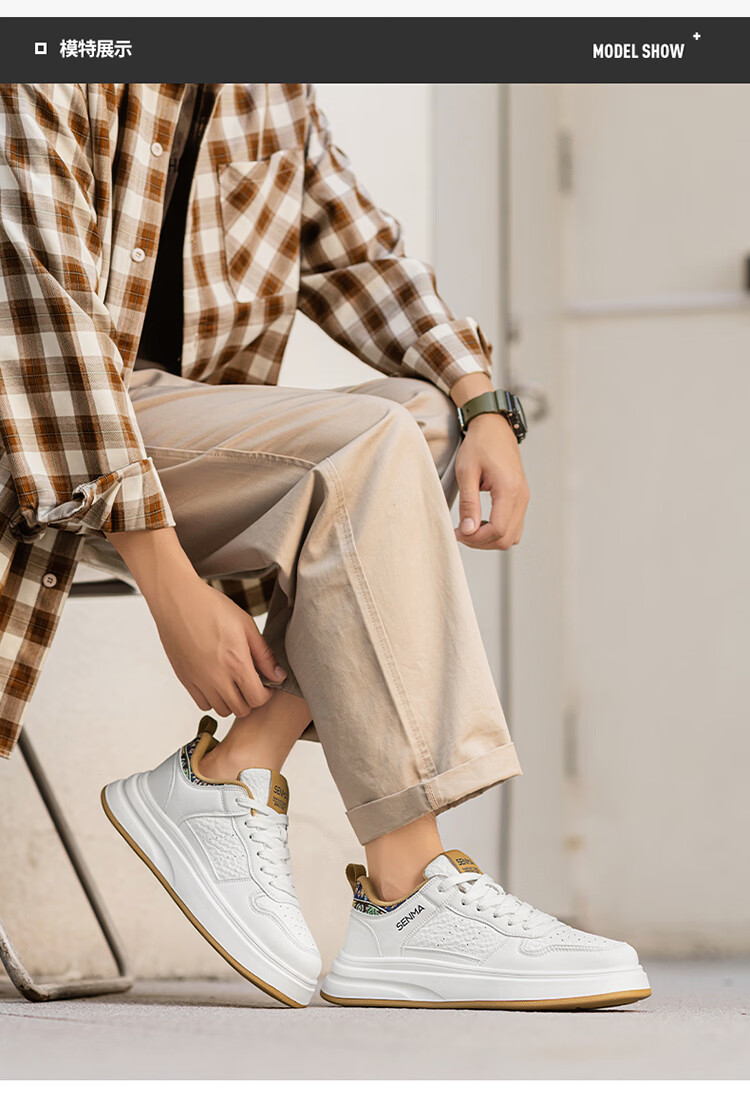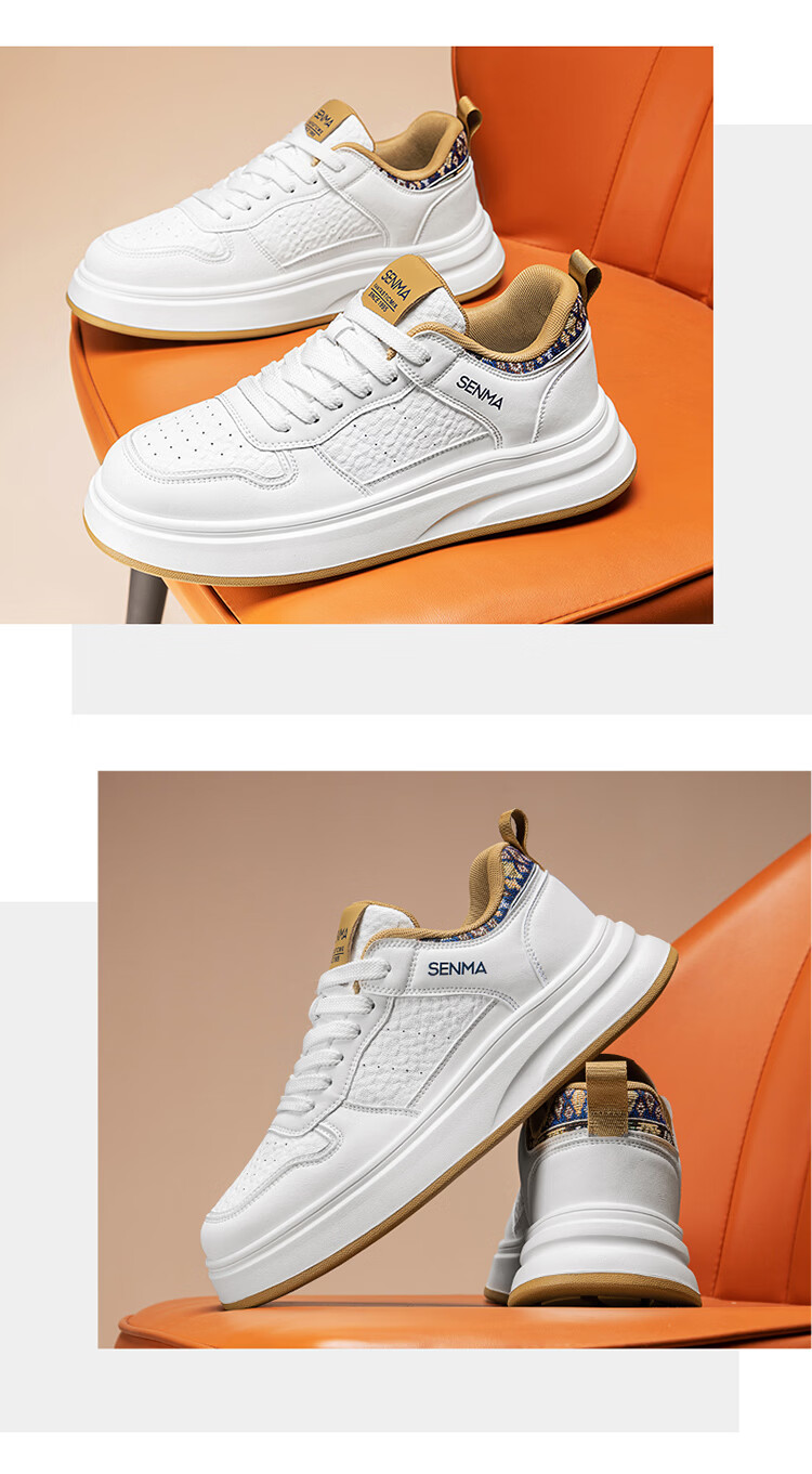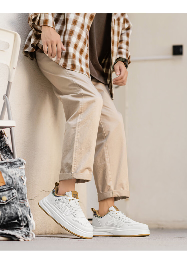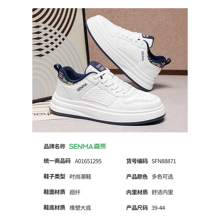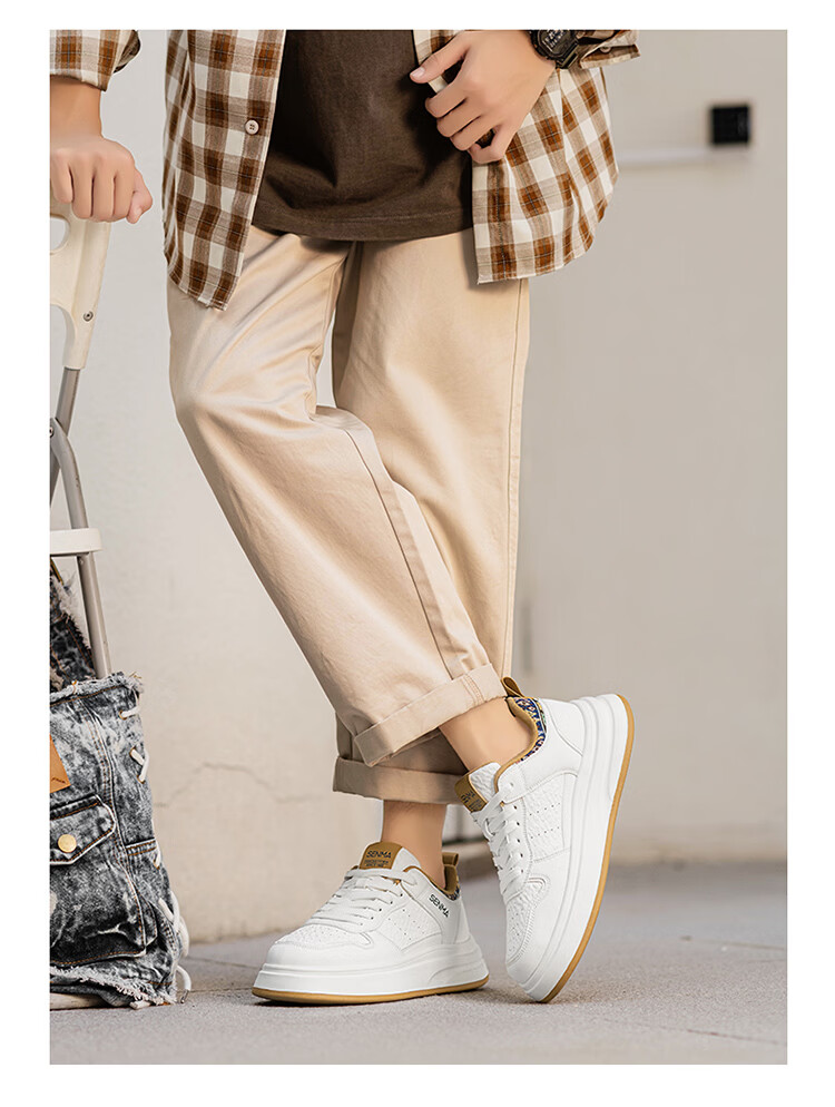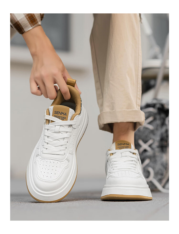 森馬男鞋2026春季潮流百搭男士休闲低帮板鞋运动厚底增高真皮小白潮鞋 白蓝【基础款】 39 标准码数/现货秒发
