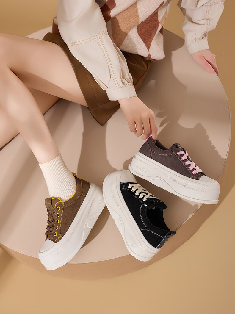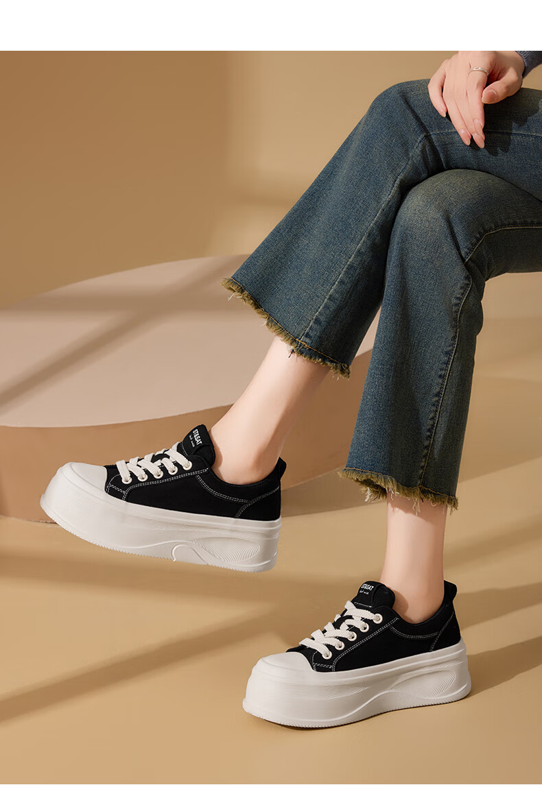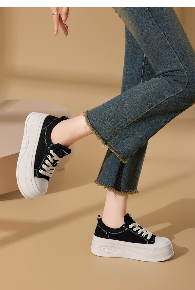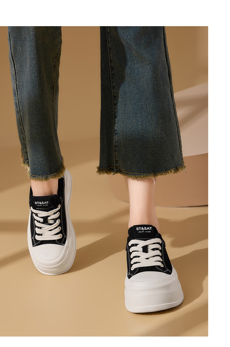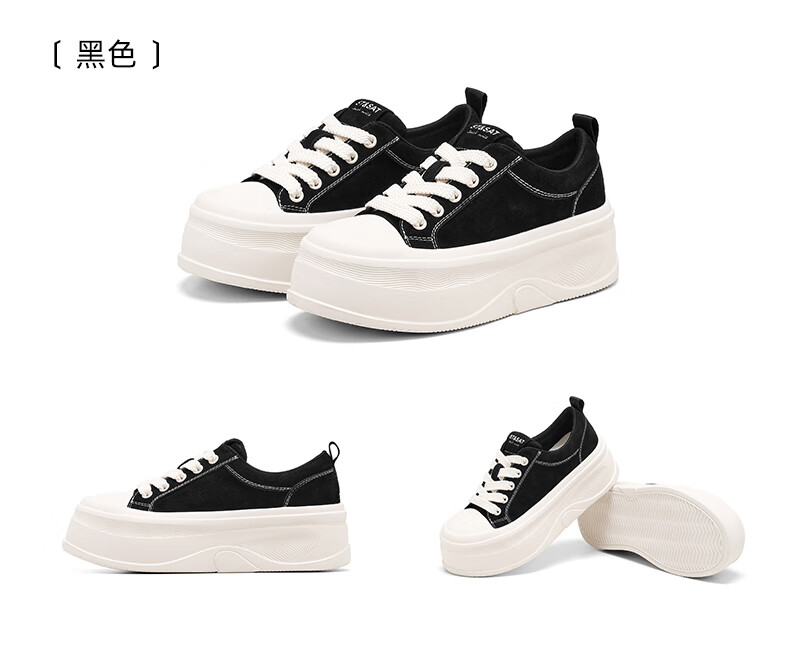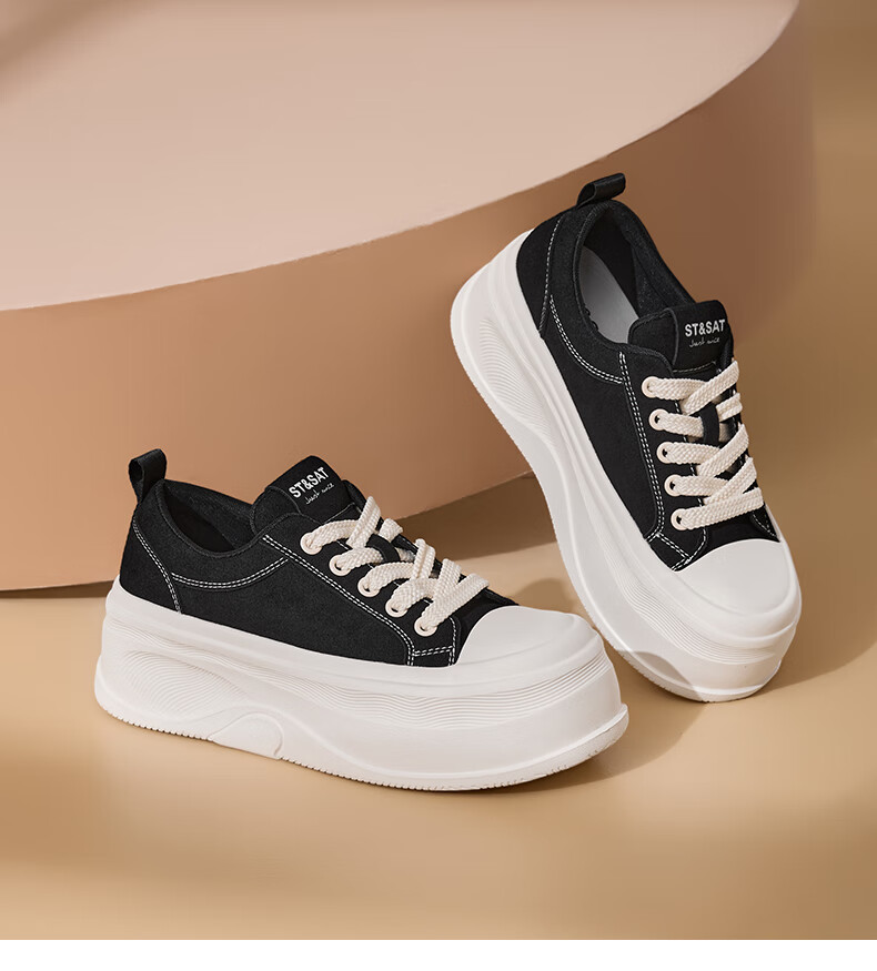 星期六(St&Sat)厚底休闲板鞋2025新款增高潮牌休闲百搭 黑色 35