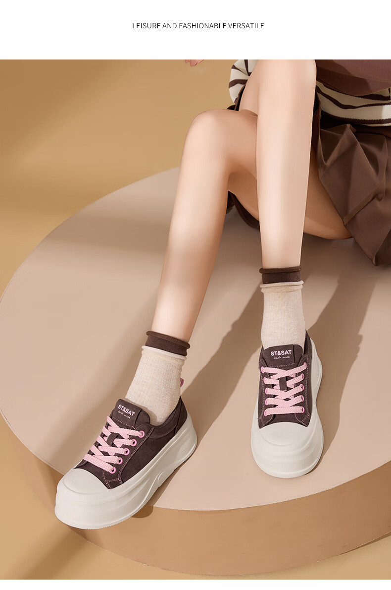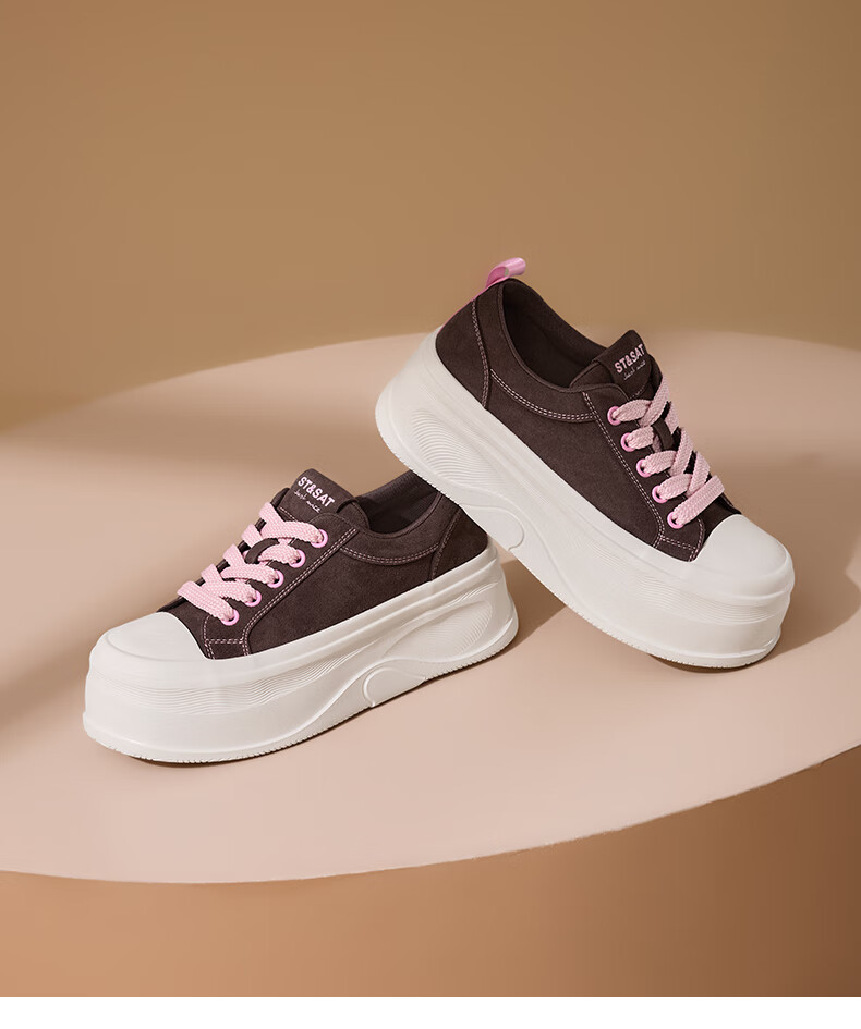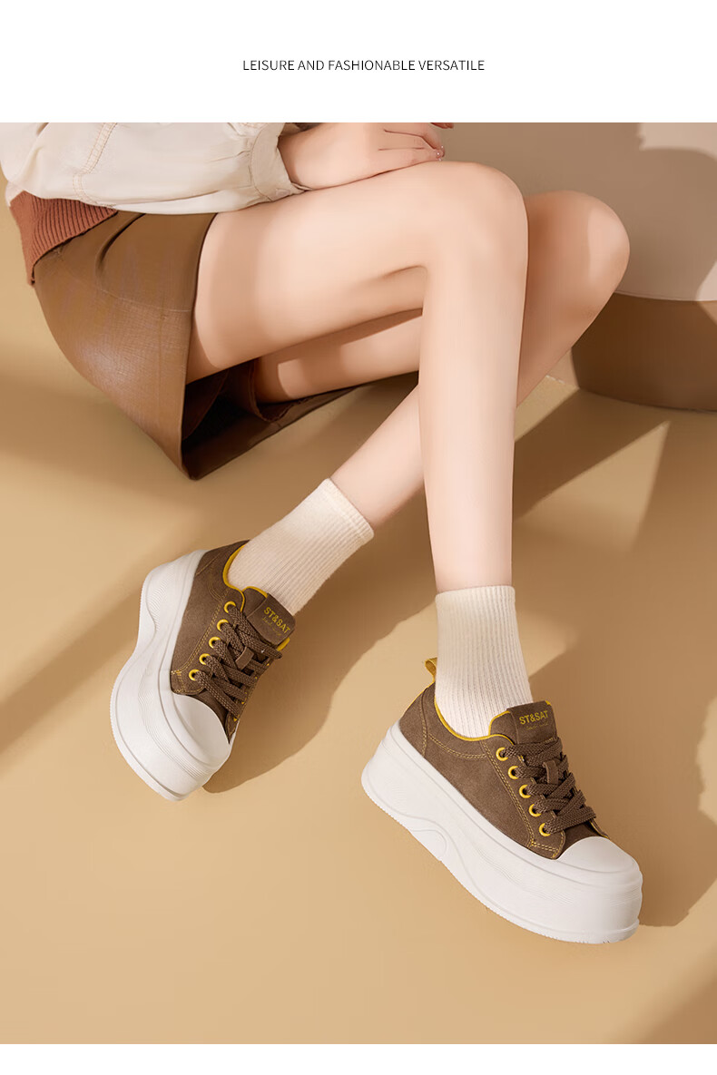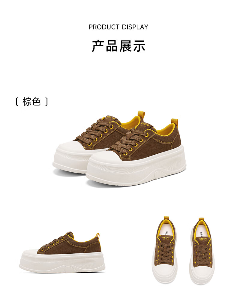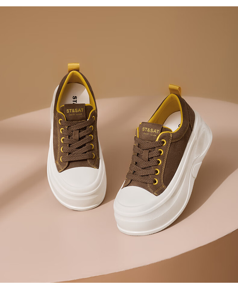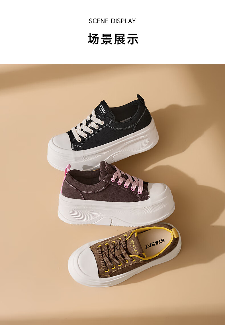 星期六(St&Sat)厚底休闲板鞋2025新款增高潮牌休闲百搭 黑色 35