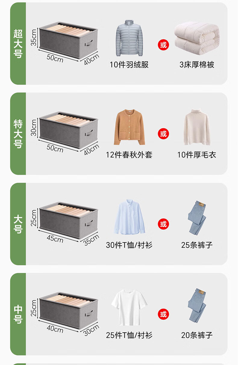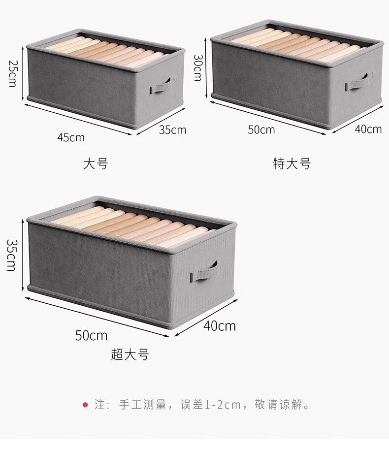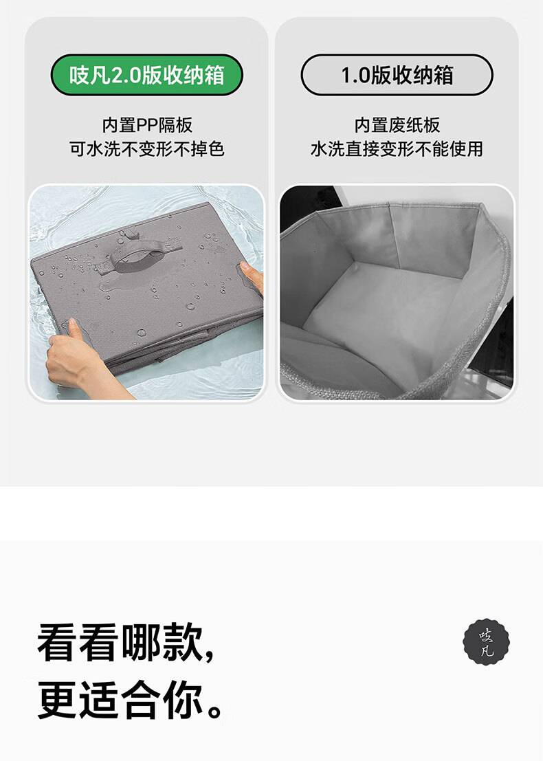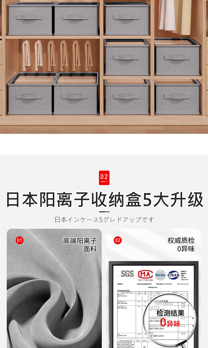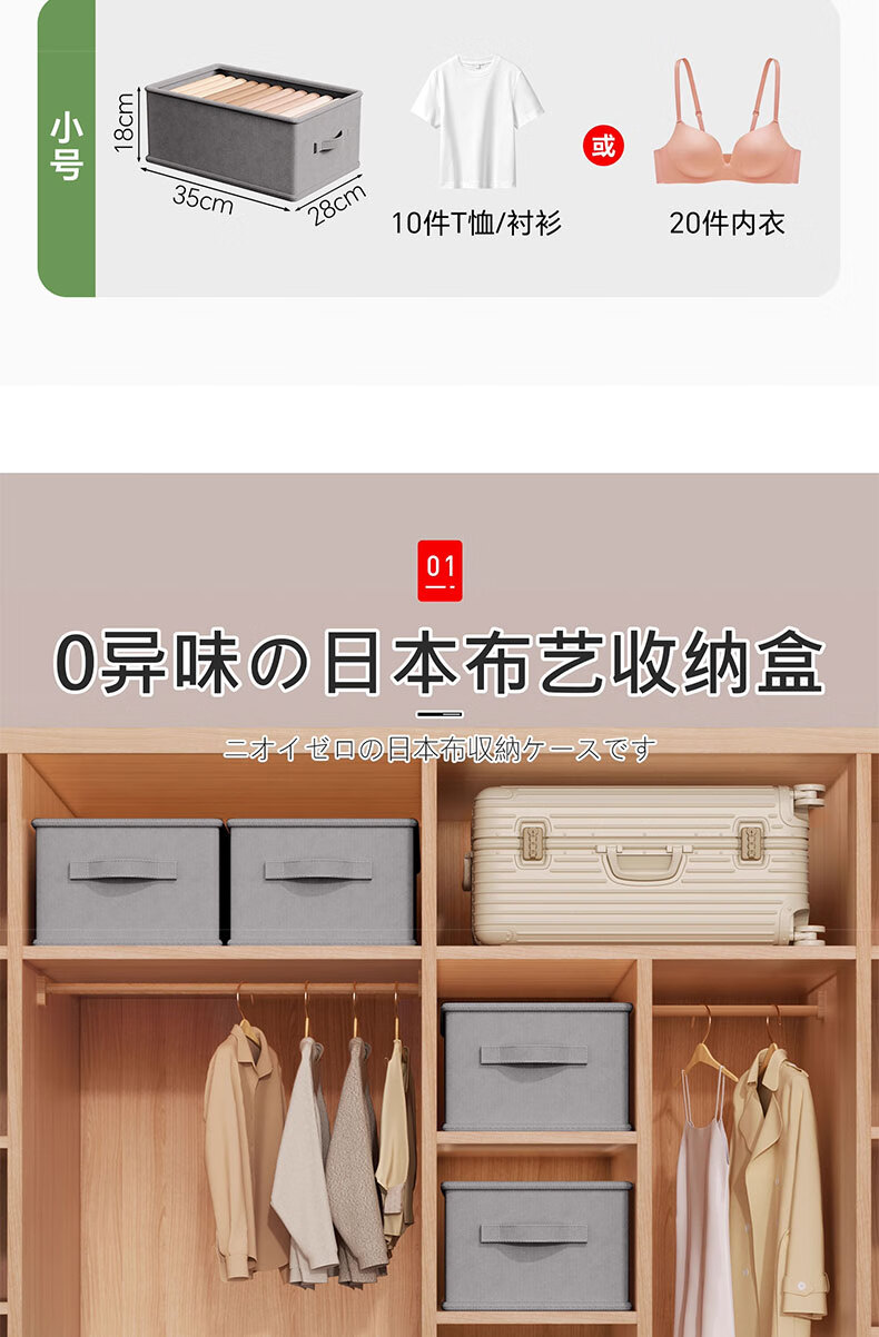 吱凡日本衣服收纳箱家用布艺衣柜收纳盒衣物整理箱分层神器折叠储物盒 【星空灰】无盖-超大【可装10件羽绒服】 2个装【无异味/可水洗】
