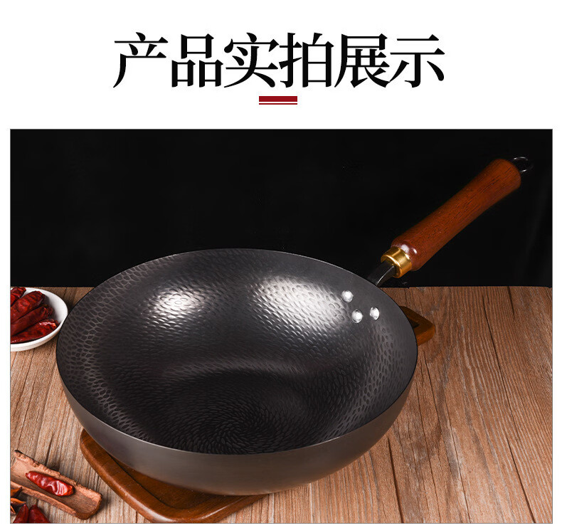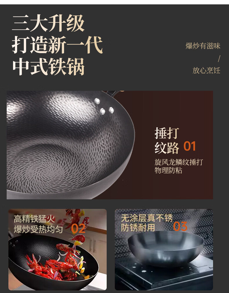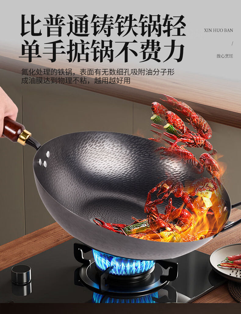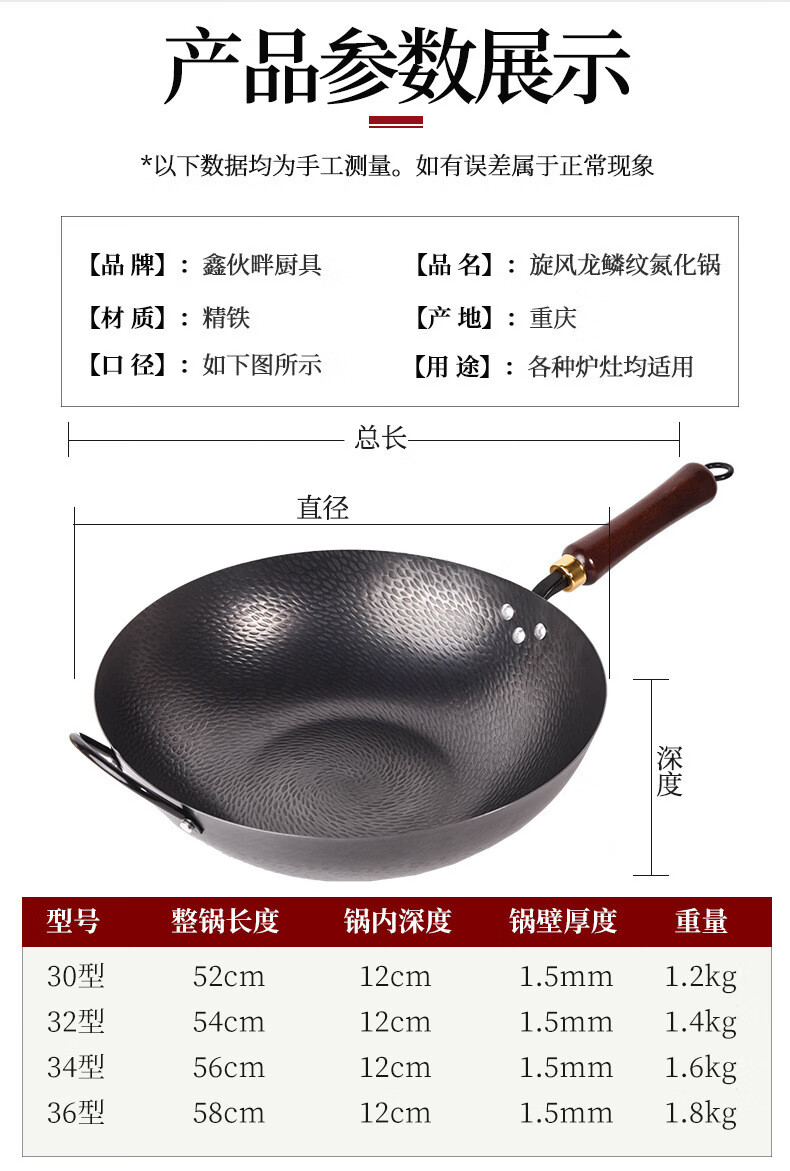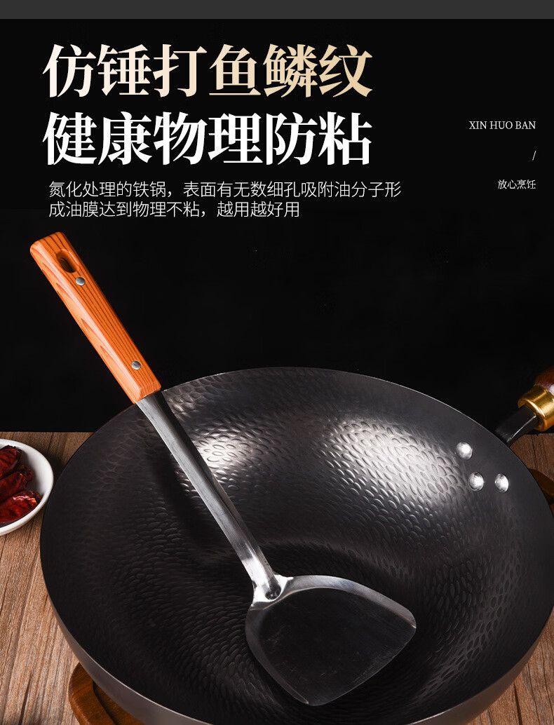 炒锅铁锅家用平底鱼鳞锻打不粘锅严选锤纹锅电磁炉燃气通用已开锅 已开锅【龙鳞不粘锅】送锅盖+铲子 32cm