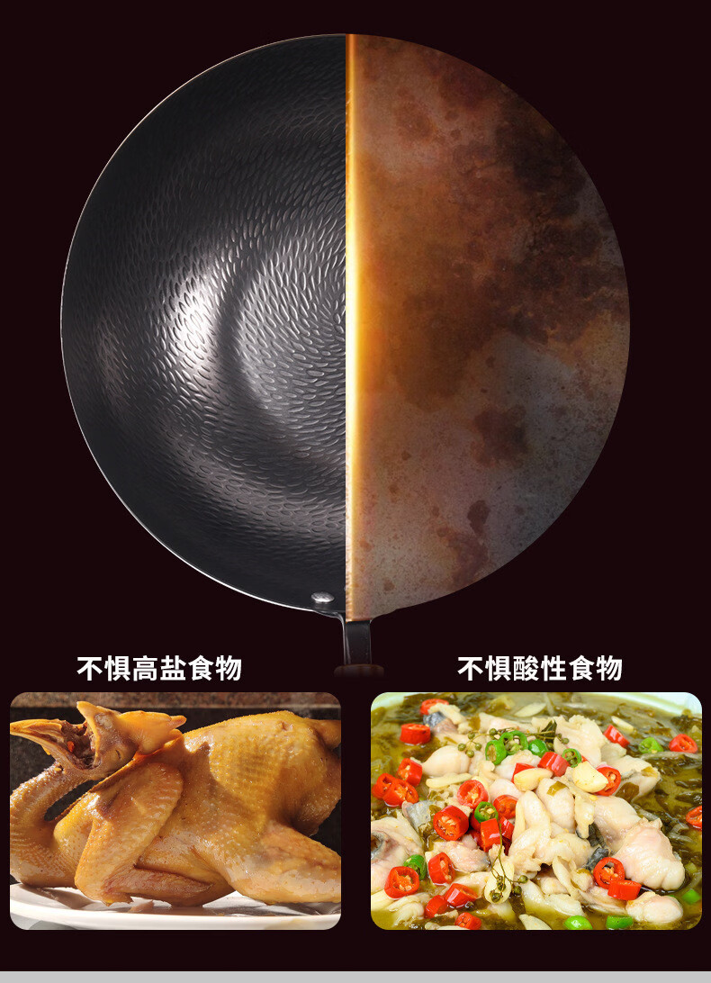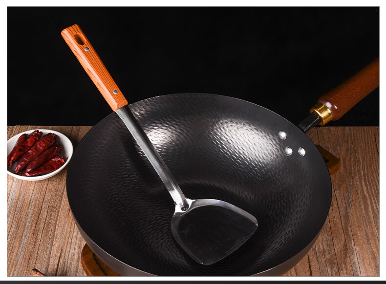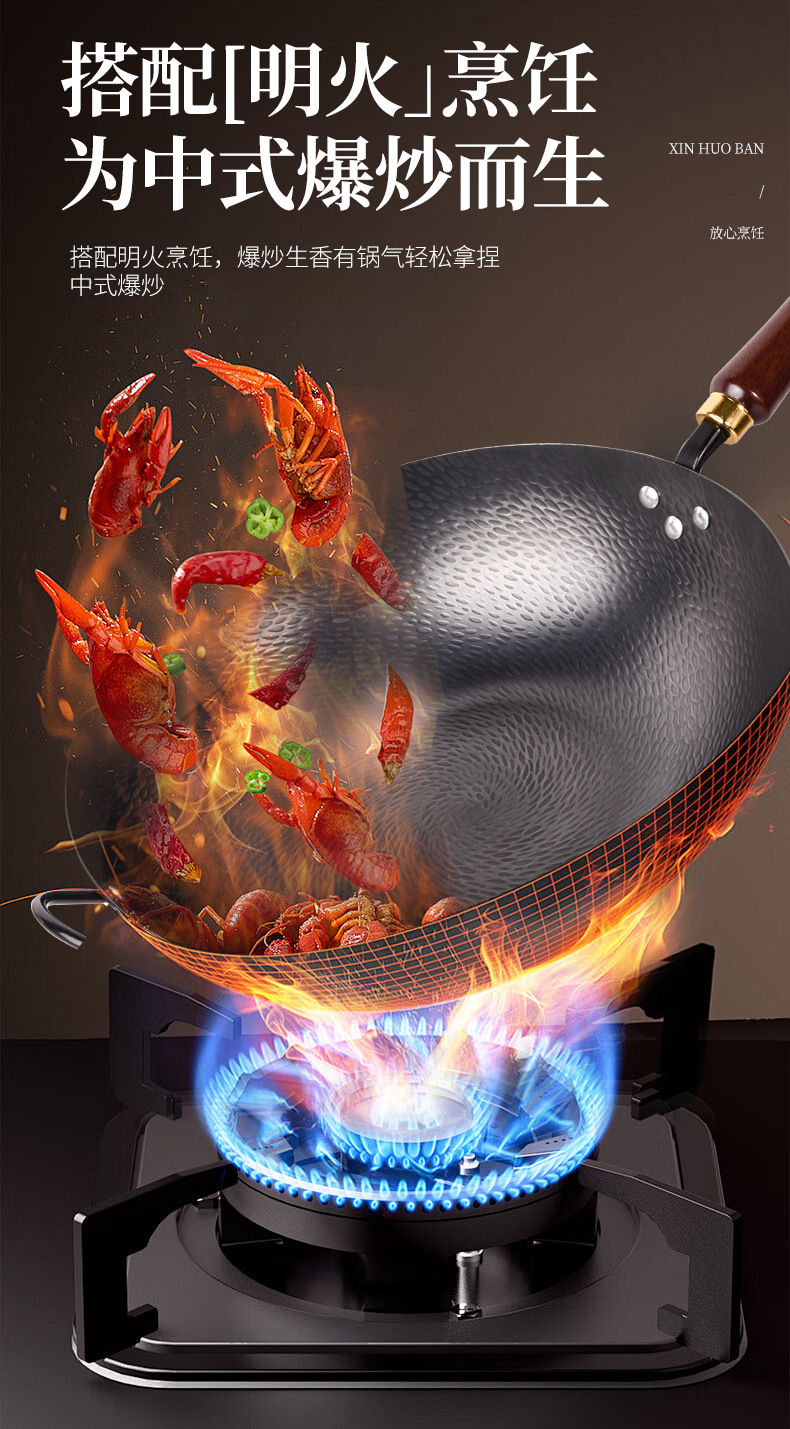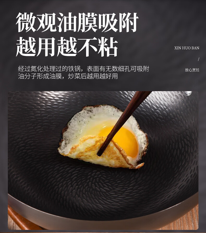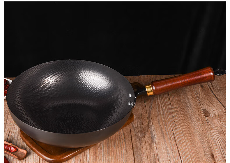 炒锅铁锅家用平底鱼鳞锻打不粘锅严选锤纹锅电磁炉燃气通用已开锅 已开锅【龙鳞不粘锅】送锅盖+铲子 32cm