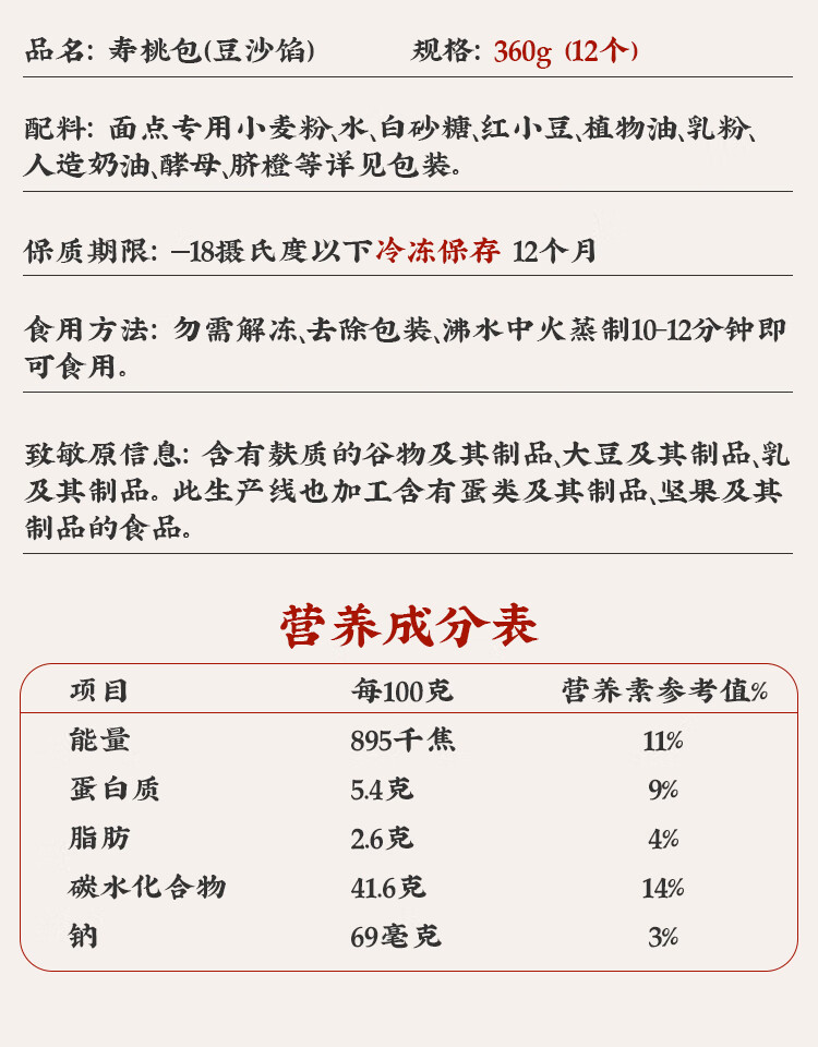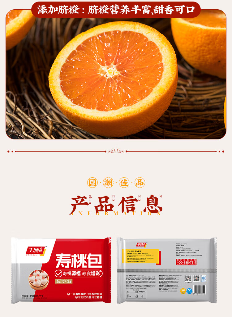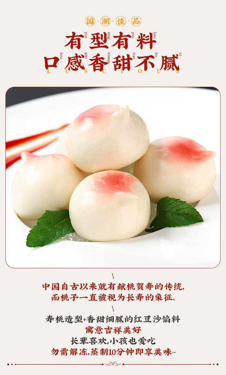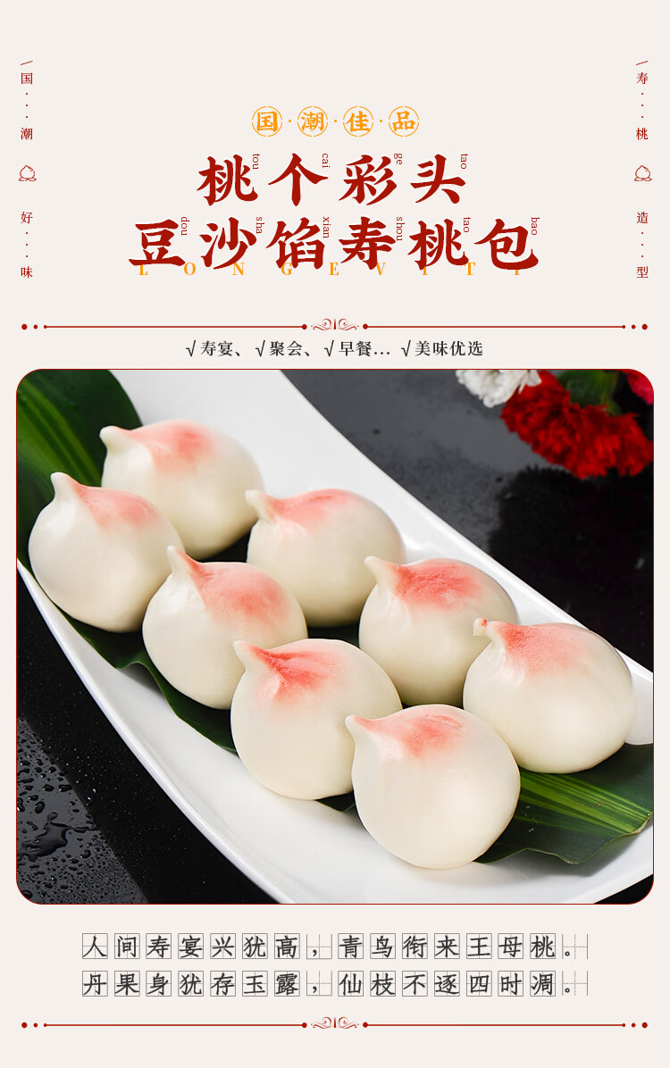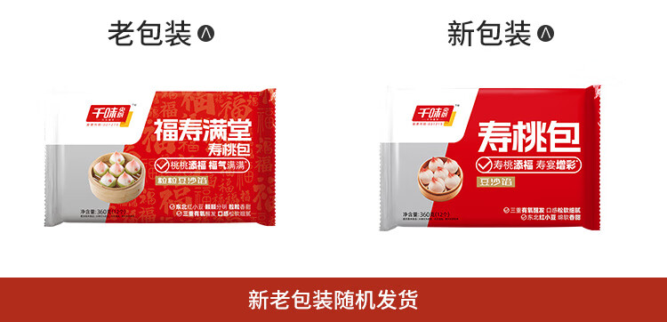 千味央厨寿桃包360g*2袋共24个老人生日宴早餐食品年货节包子春节也送货
