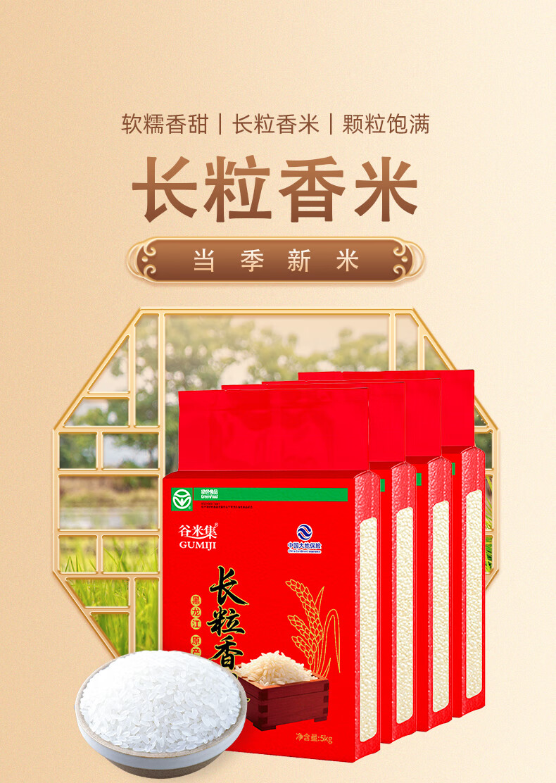 谷米集当季新米长粒香米40斤东北大米4块*1箱 黑龙江产地粳米真空包装