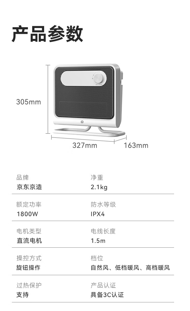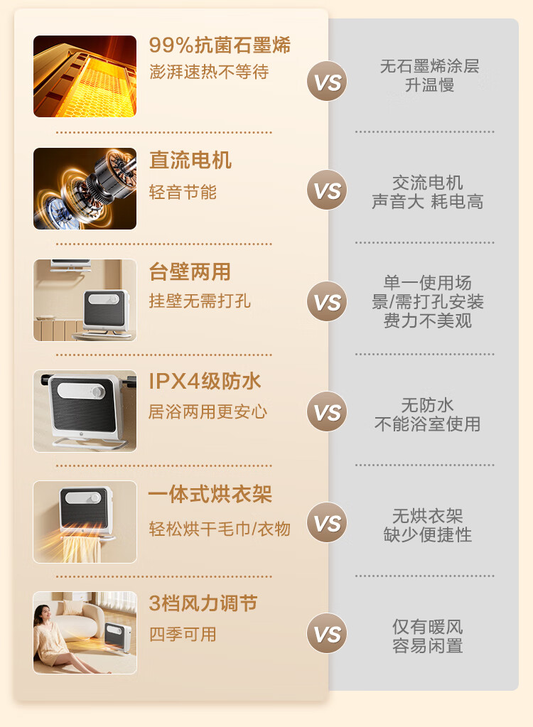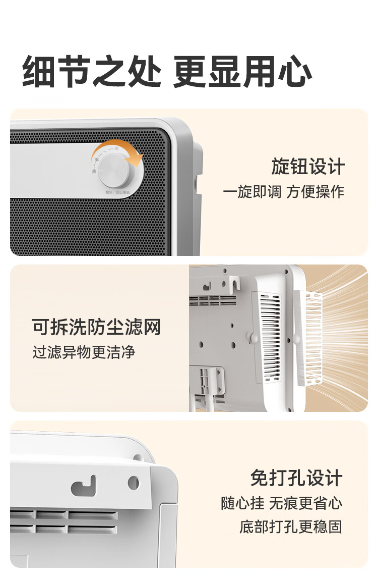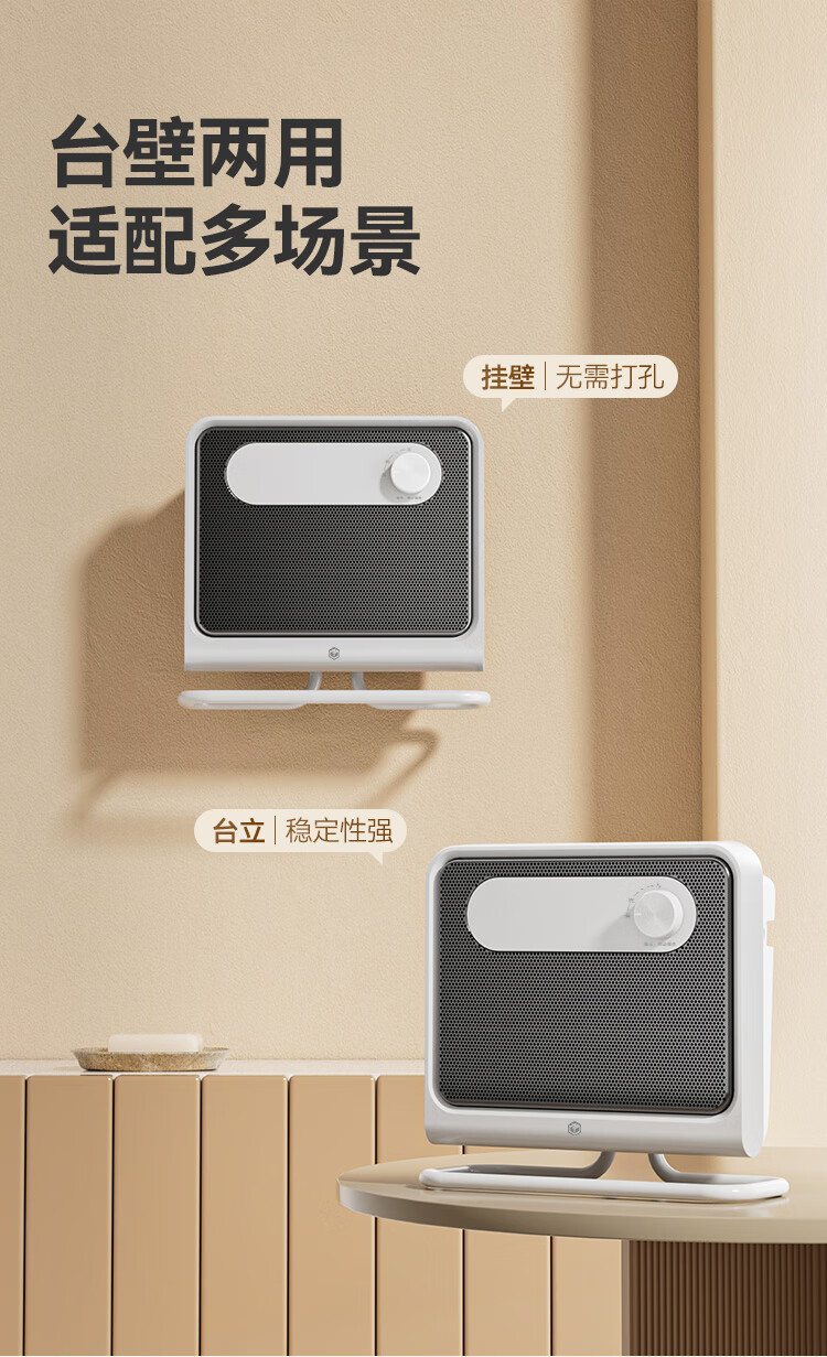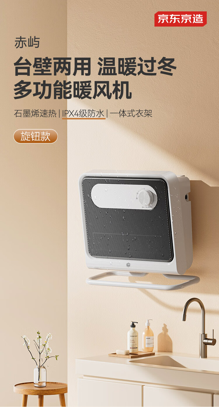 京东京造石墨烯速热浴室壁挂小太阳暖风机取暖器 家用电暖器电暖气恒温节能浴霸速热防水卫生间热风机 赤屿