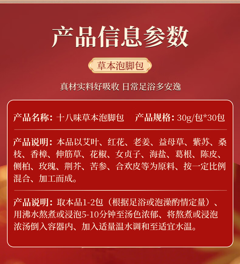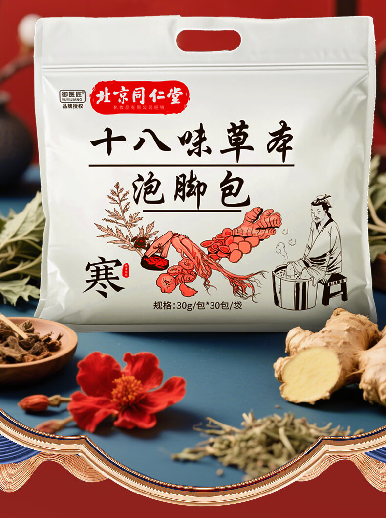 同仁堂中药泡脚包药包生姜花椒湿气去驱寒助睡眠排汗陈艾叶艾草包足浴包 【体验装】十八味泡脚1袋*30包