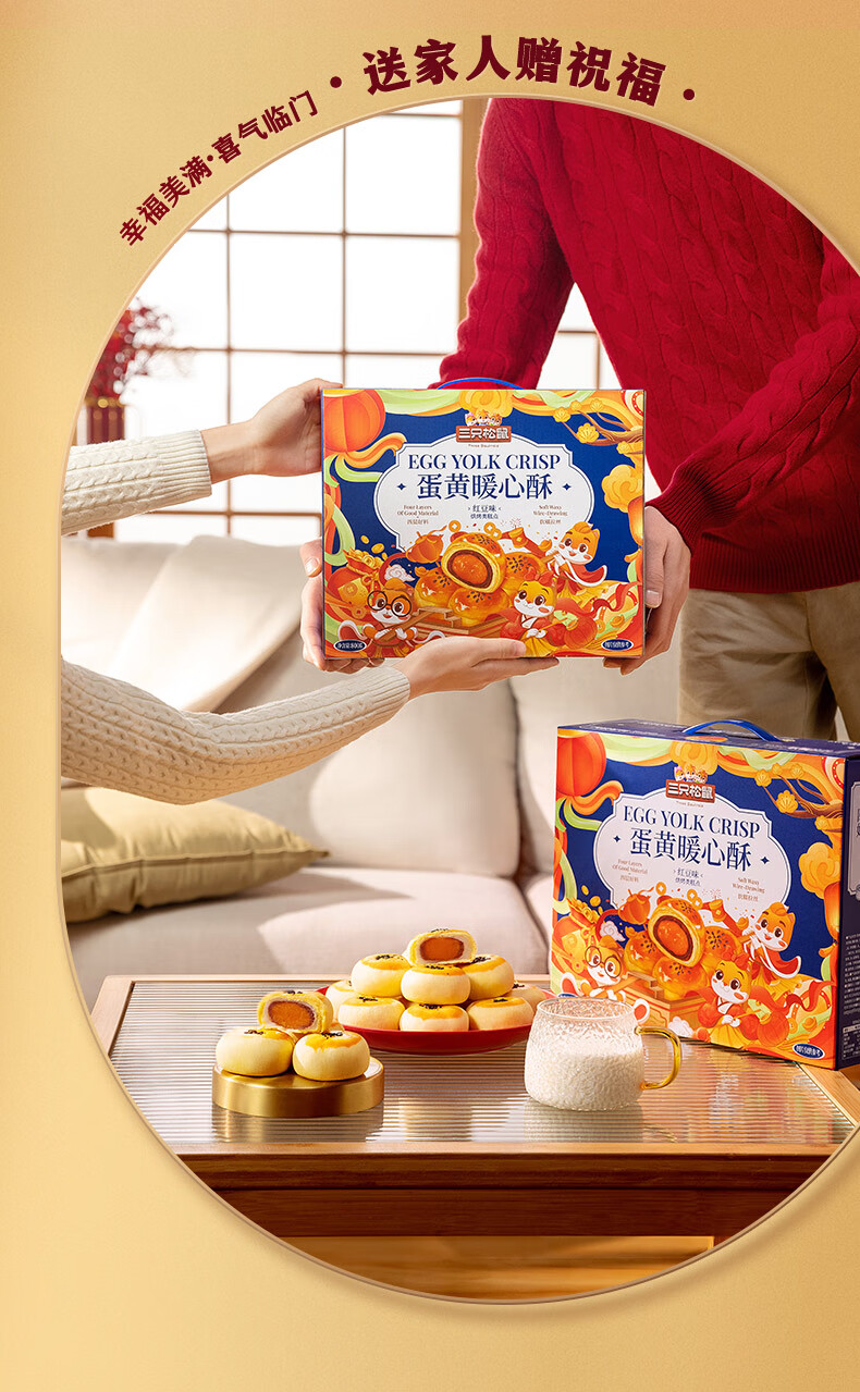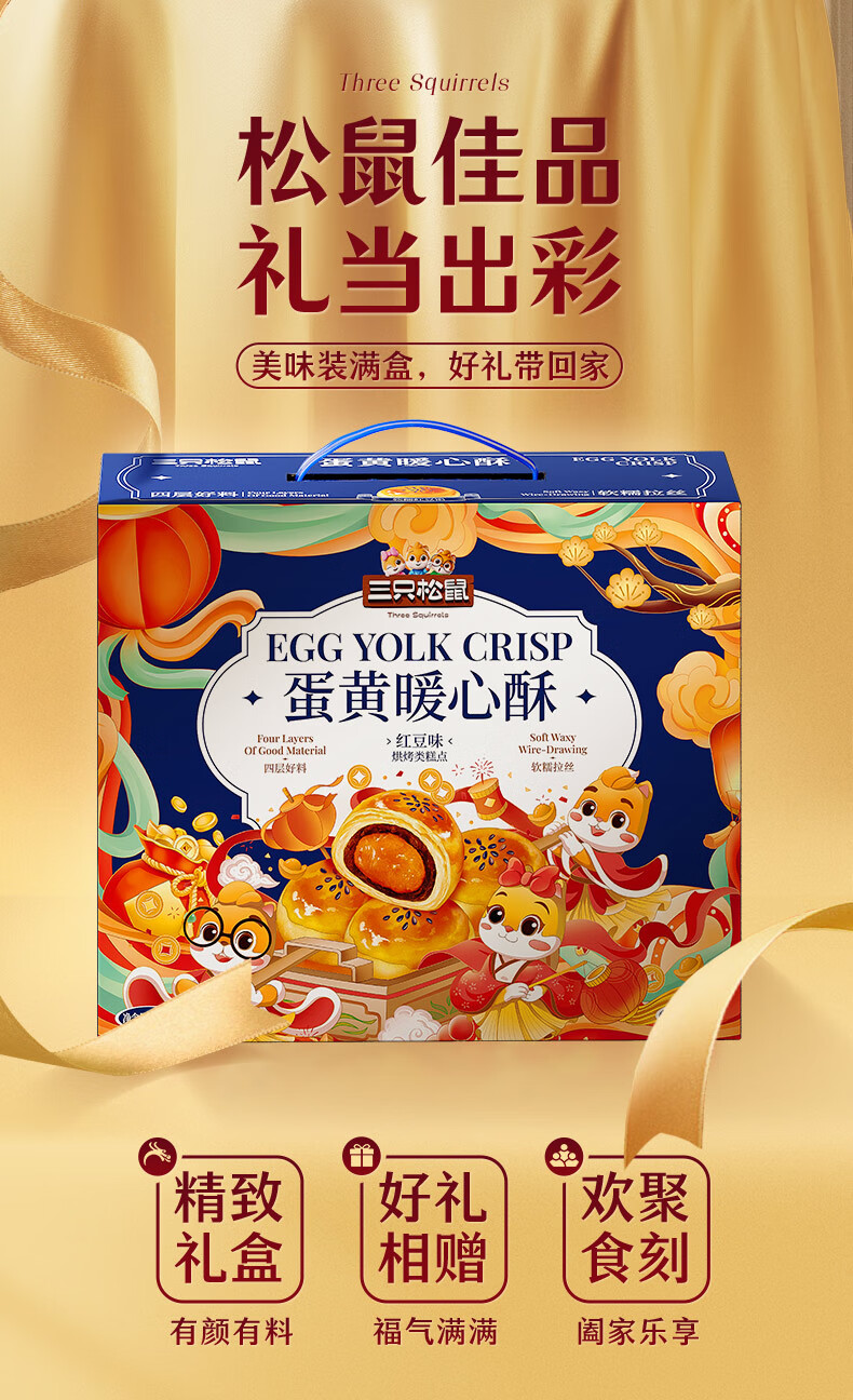 三只松鼠蛋黄酥礼盒800g 红豆味约16枚雪媚娘礼盒休闲零食团购年货送礼