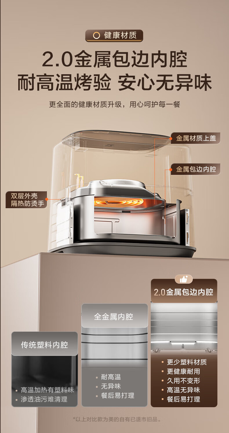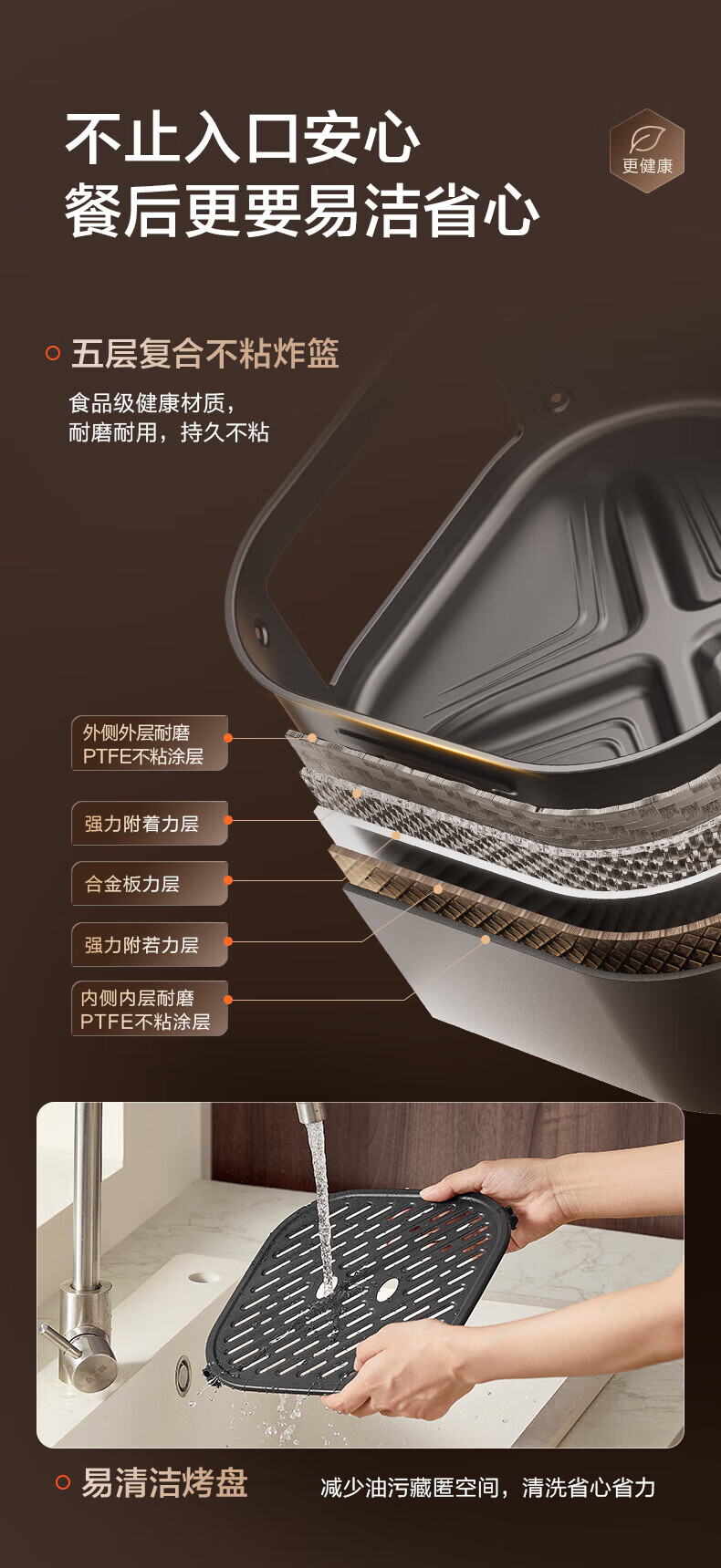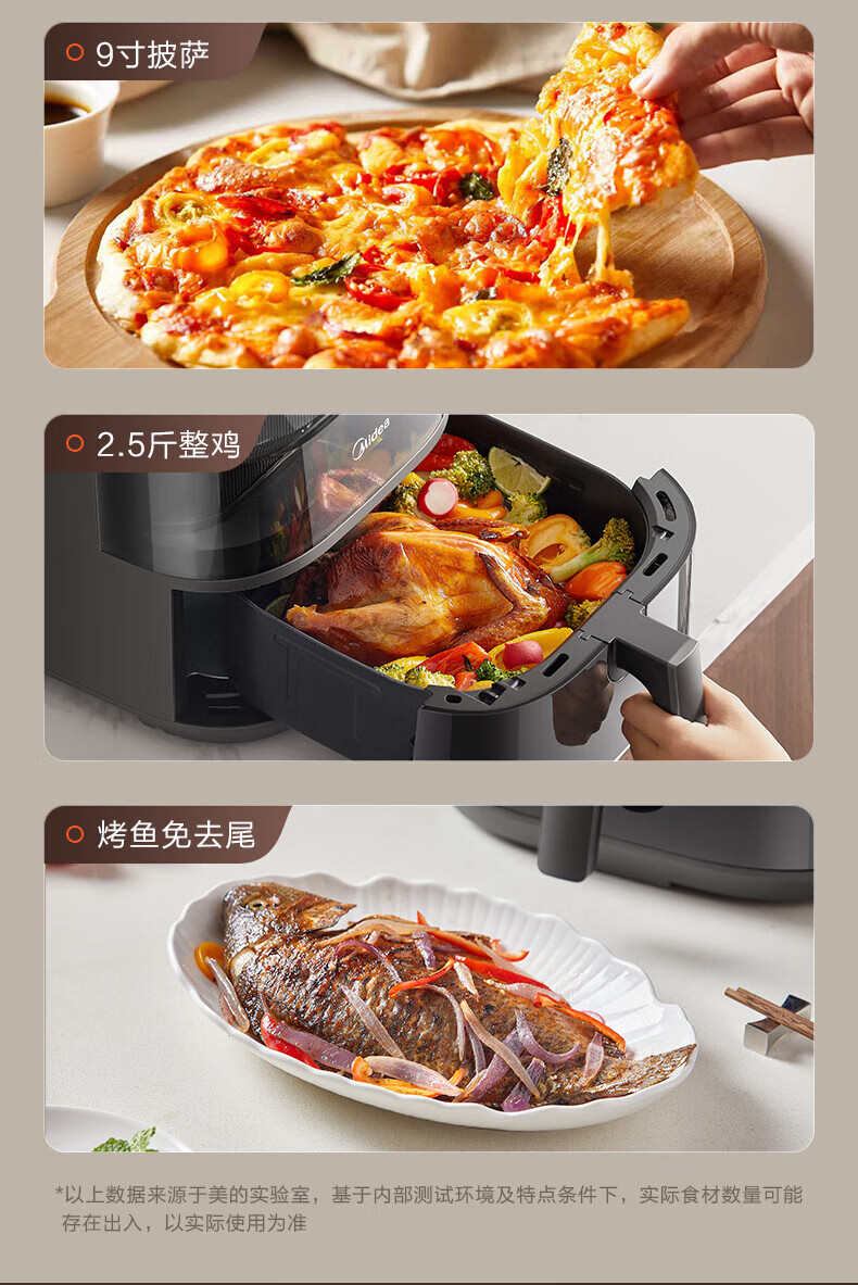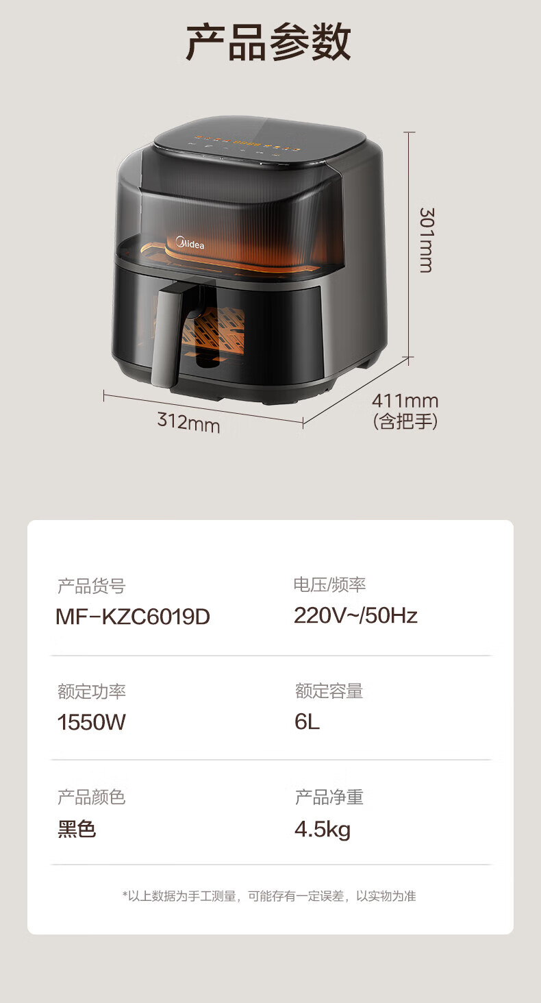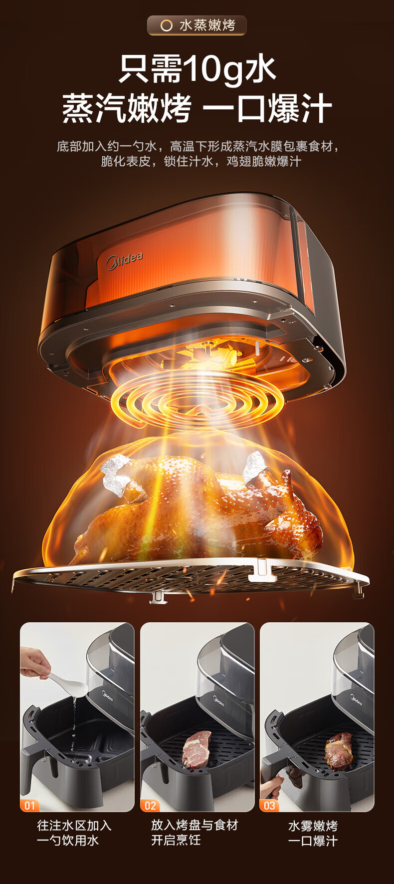 美的(Midea)家用X旋风2.0空气炸锅25年新款 蒸汽嫩烤 家用实用宽口大容量6L 上下双可视2.0金属内腔 KZC6019D 【双可视】 6L