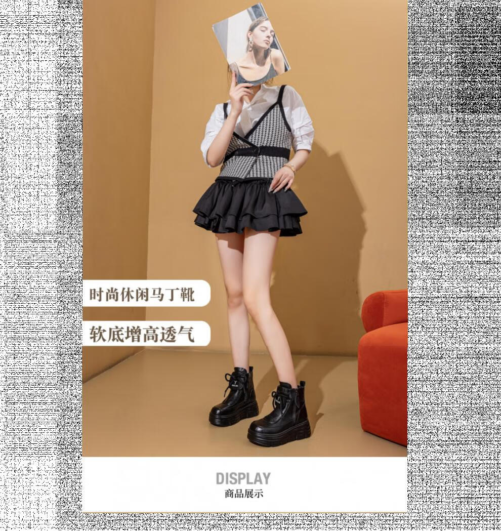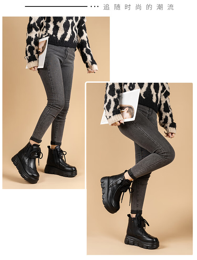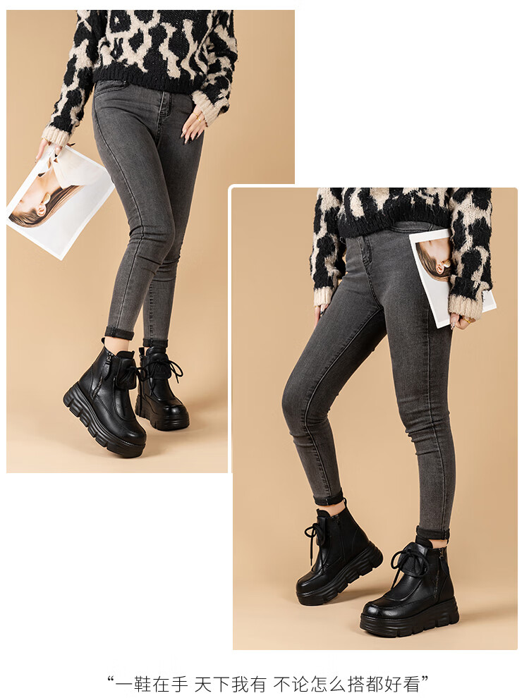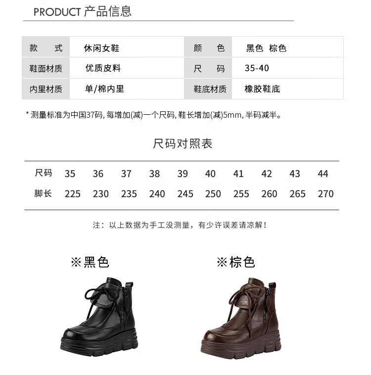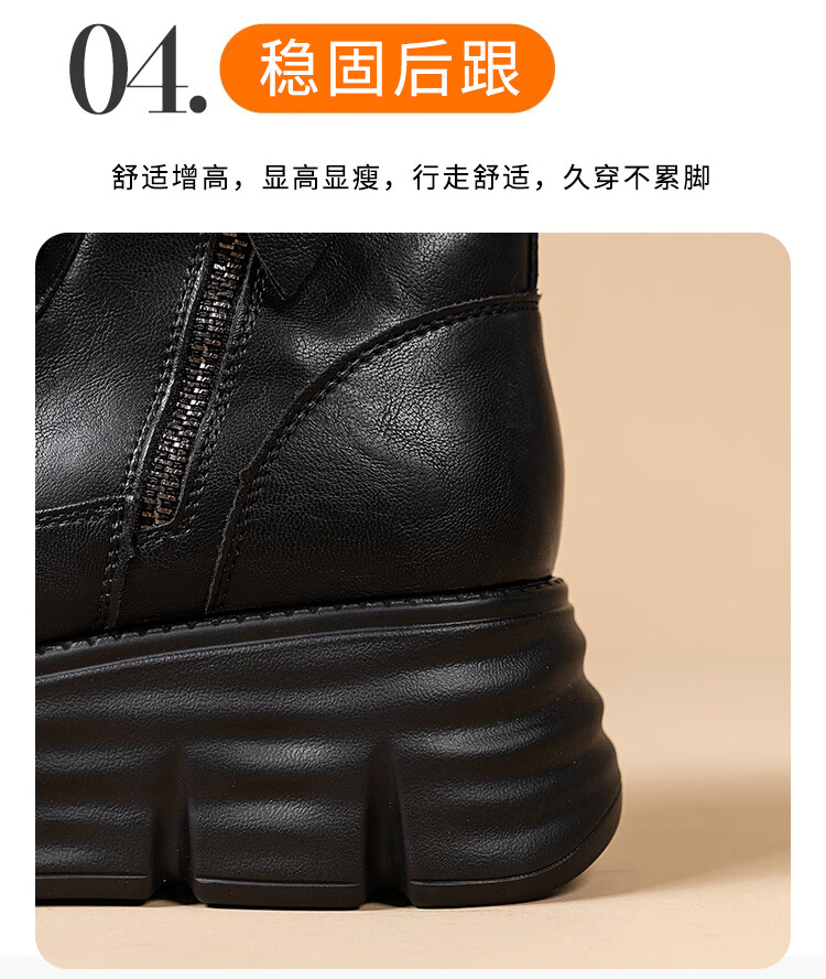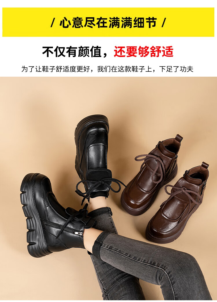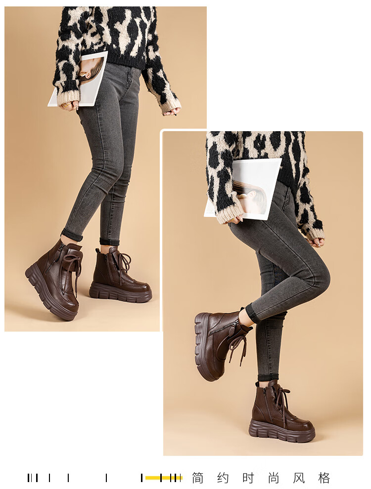 稻草人(MEXICAN)真皮复古厚底增高马丁靴女2026秋冬新款松糕软底加绒保暖休闲短靴 棕色单里 36