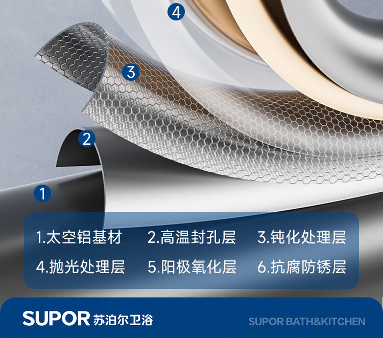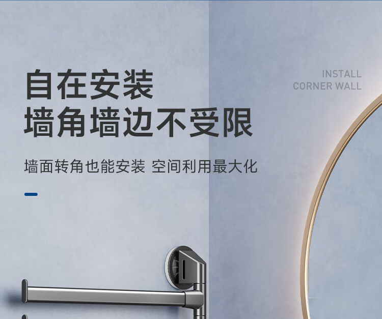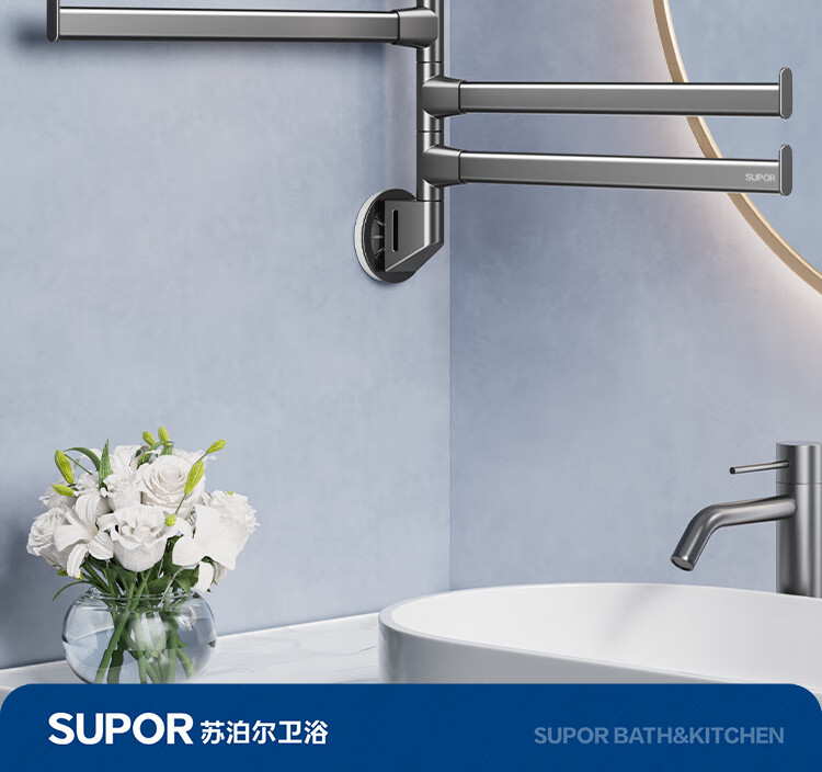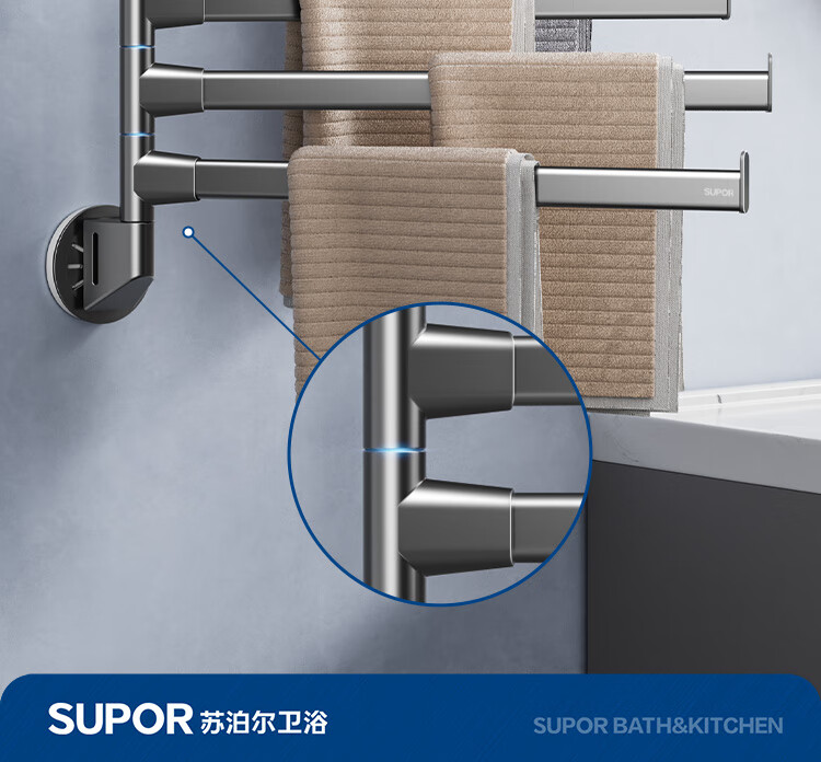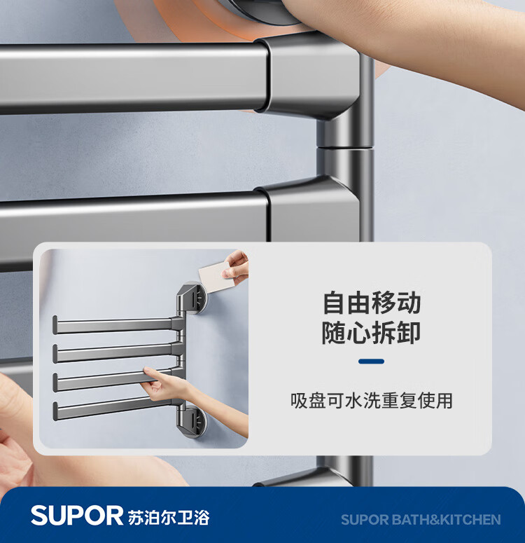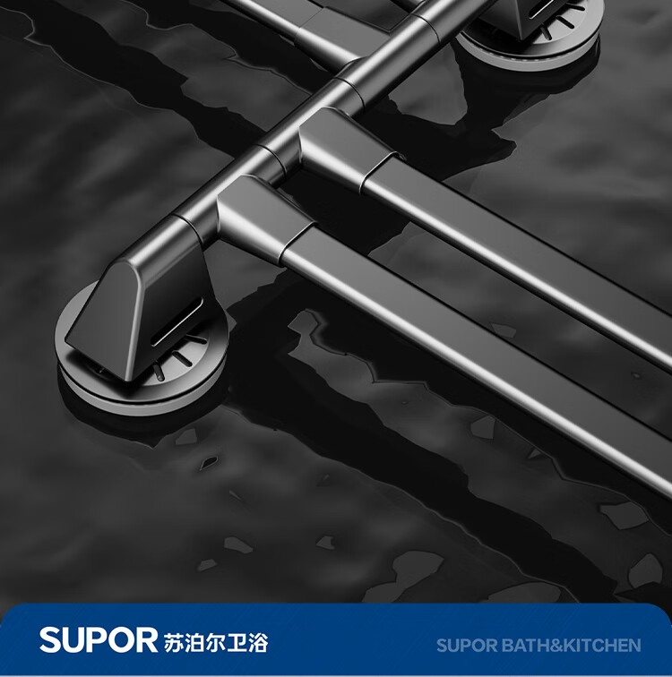 苏泊尔毛巾架卫生间免打孔壁挂可旋转浴室毛巾单杆厕所洗手间收纳 枪灰|吸盘旋转毛巾架3杆