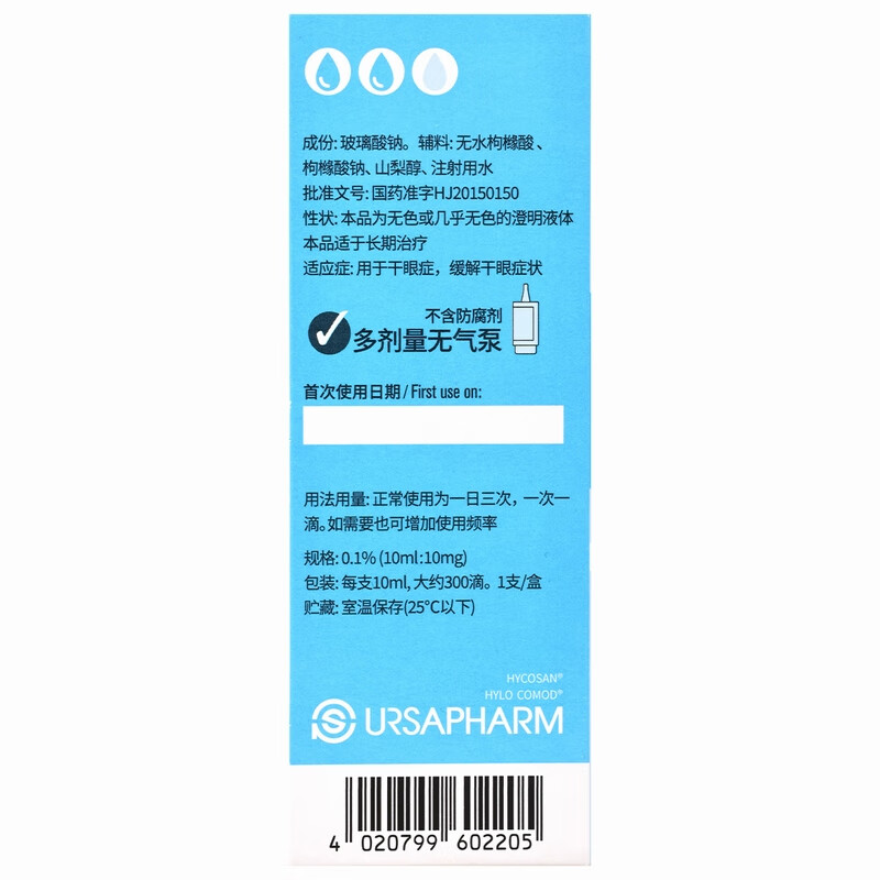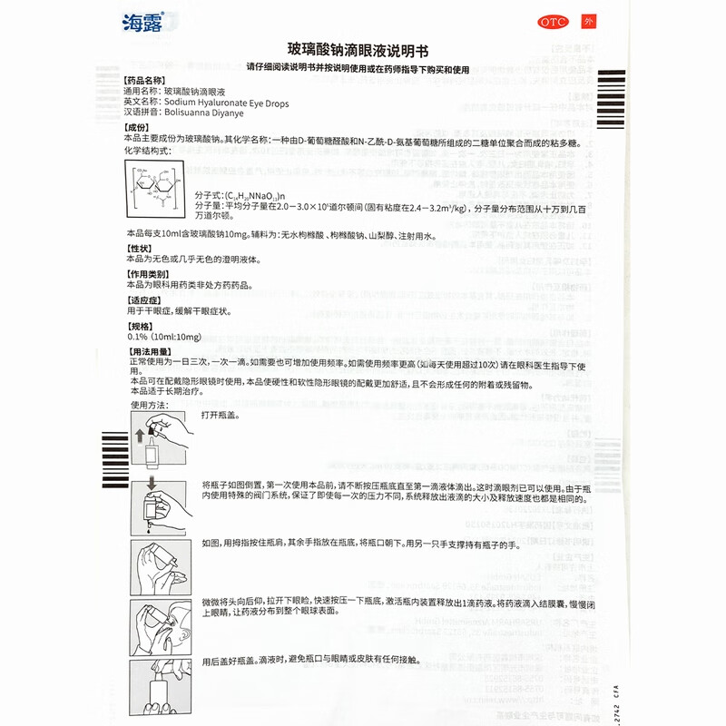 [海露]玻璃酸钠滴眼液 0.1%*10ml 1盒装 0.1%:10ml 干眼症缓解干眼症状 不含防腐剂 好效期