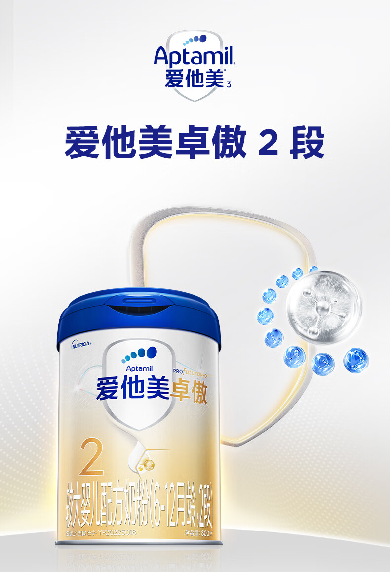爱他美(Aptamil)卓傲2段较大婴儿配方奶粉 6-12月龄 牛奶粉荷兰原装进口 2段 800g 3罐 【咨询客服送豪礼】