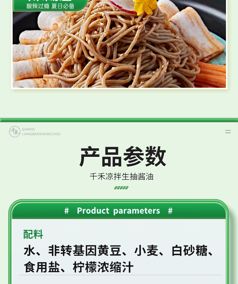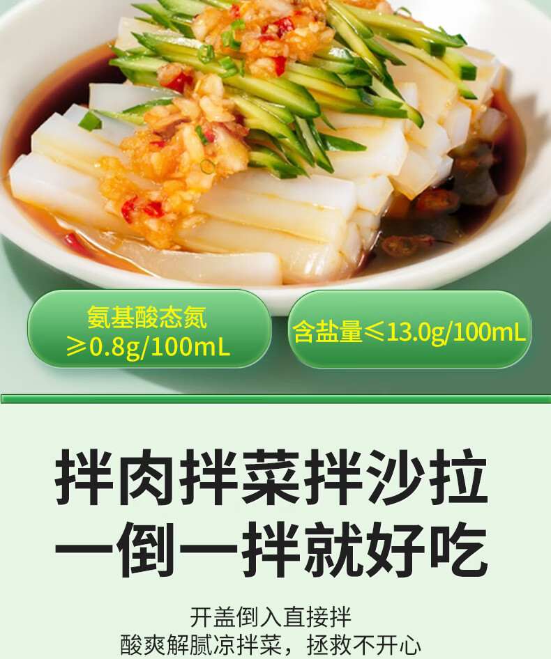 千禾凉拌生抽0添加【控盐配方】500ml拌凉粉凉菜面条夏天酸爽点蘸汁