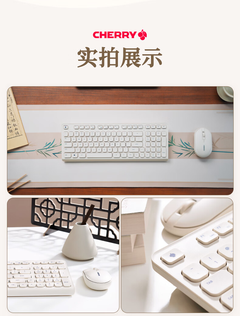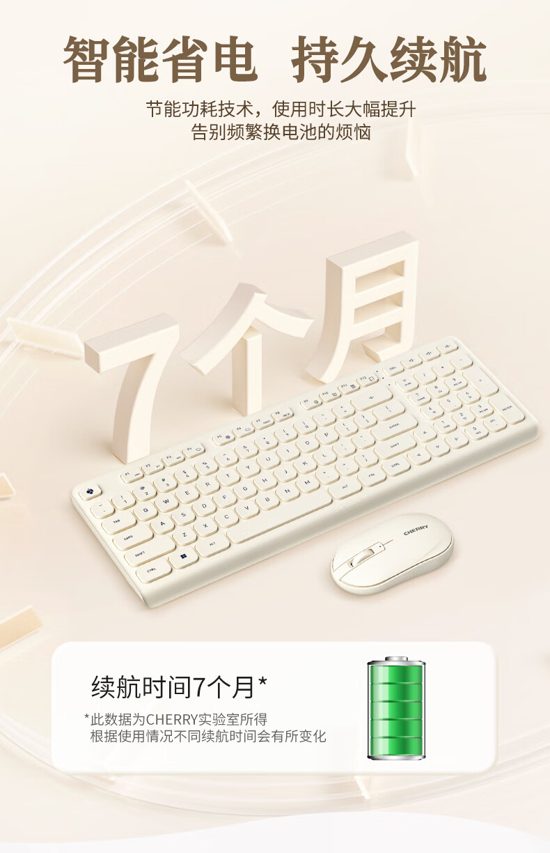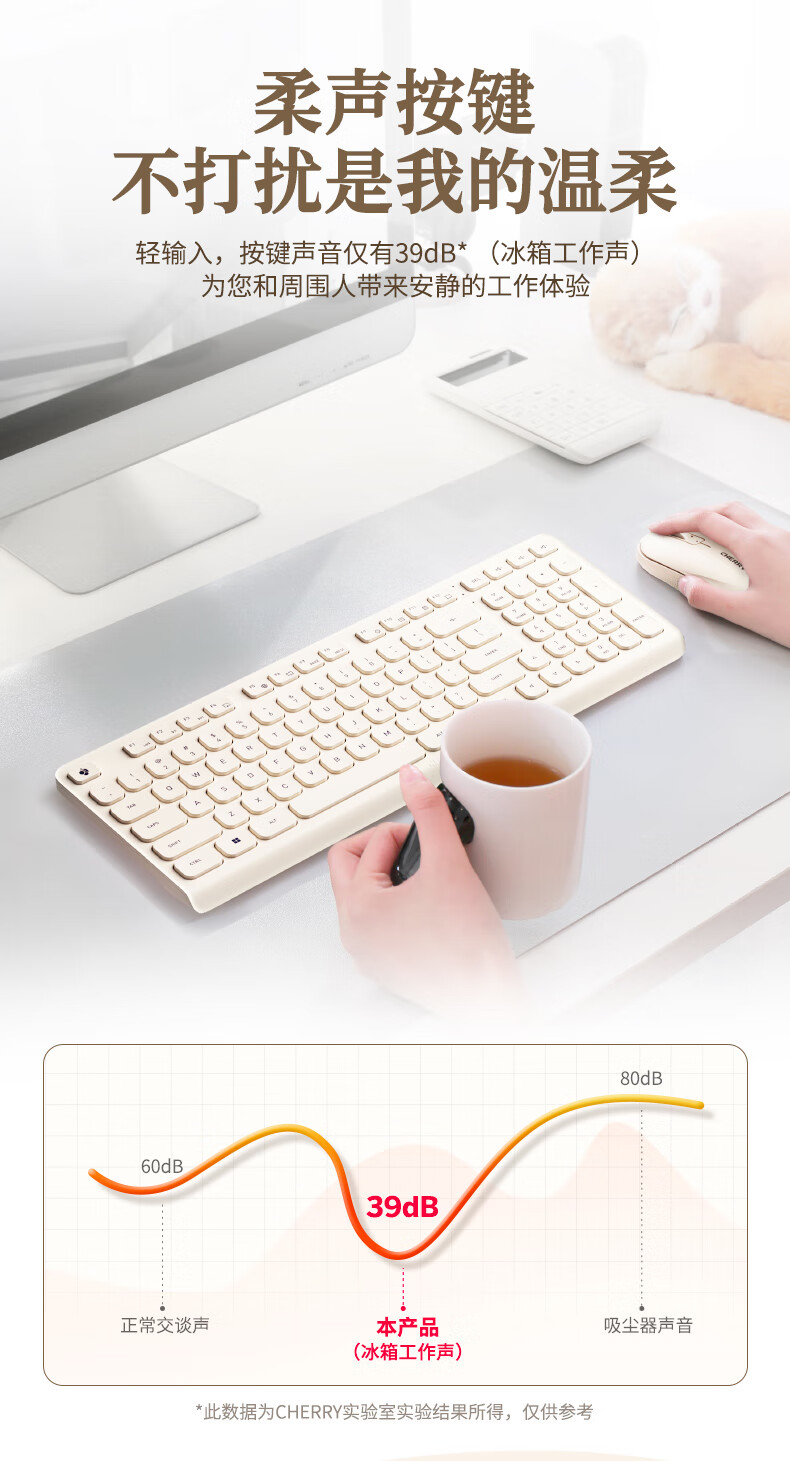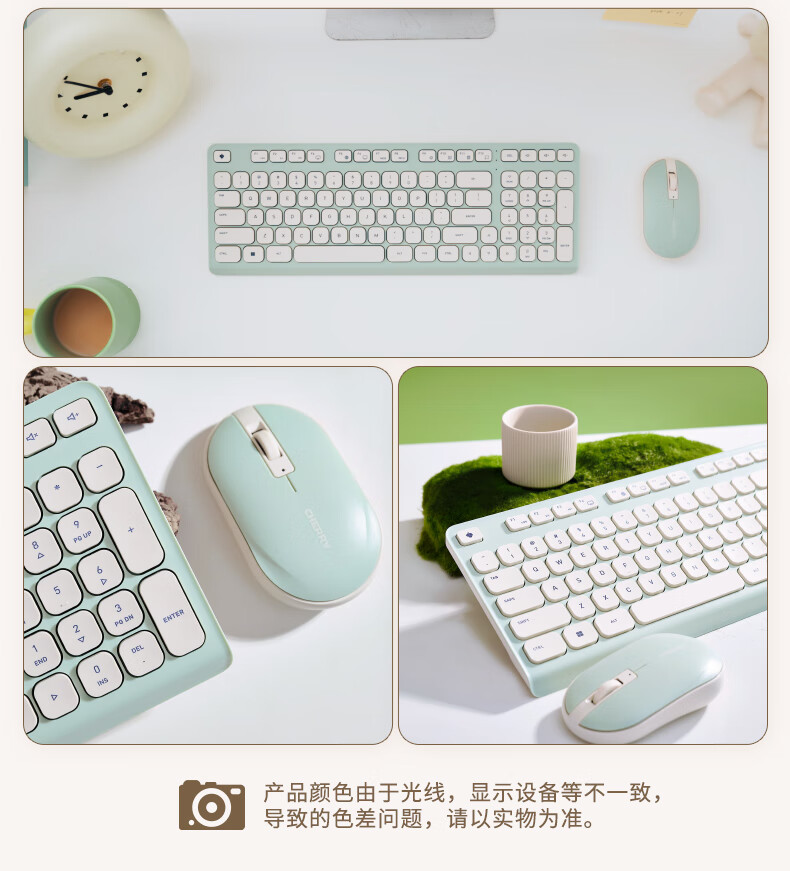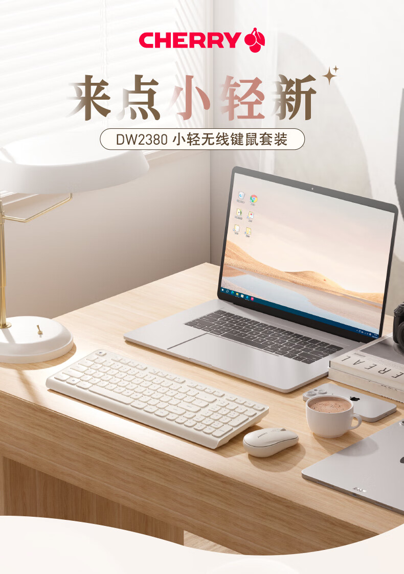 CHERRY樱桃 DW2380无线键鼠套装升级版98键轻音薄膜键盘鼠标笔记本电脑可爱女生外接婺源绿
