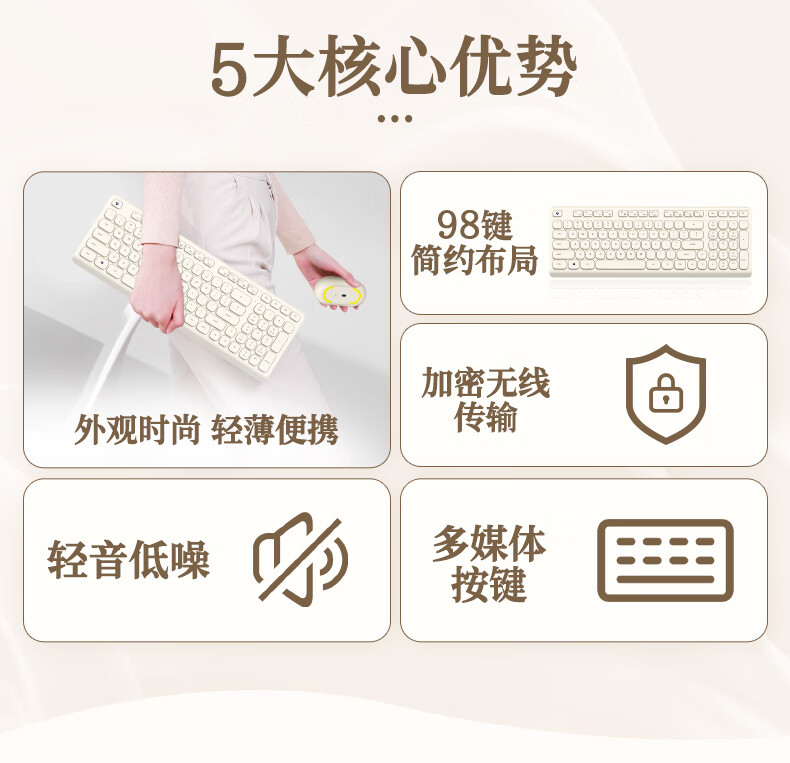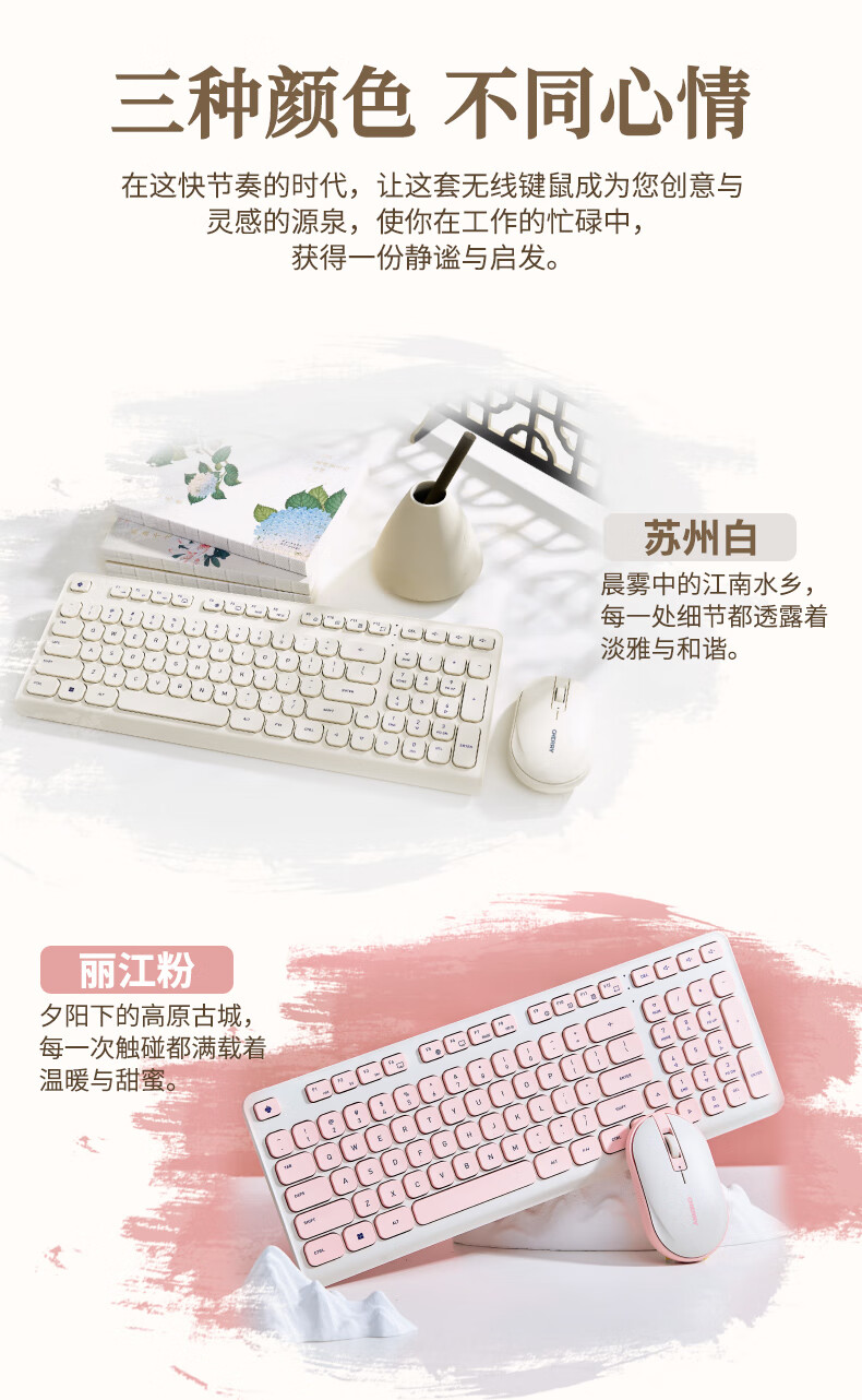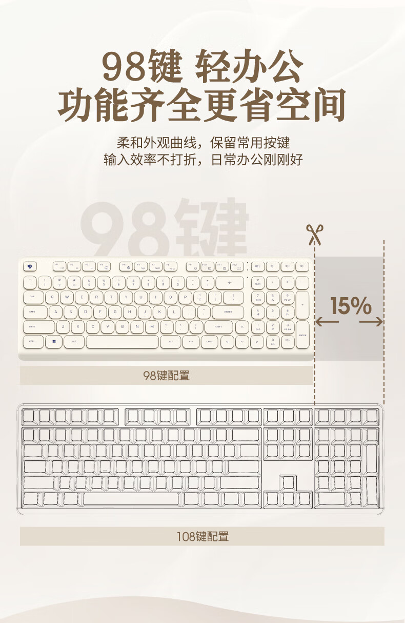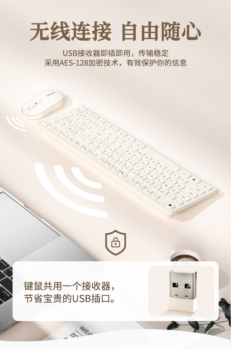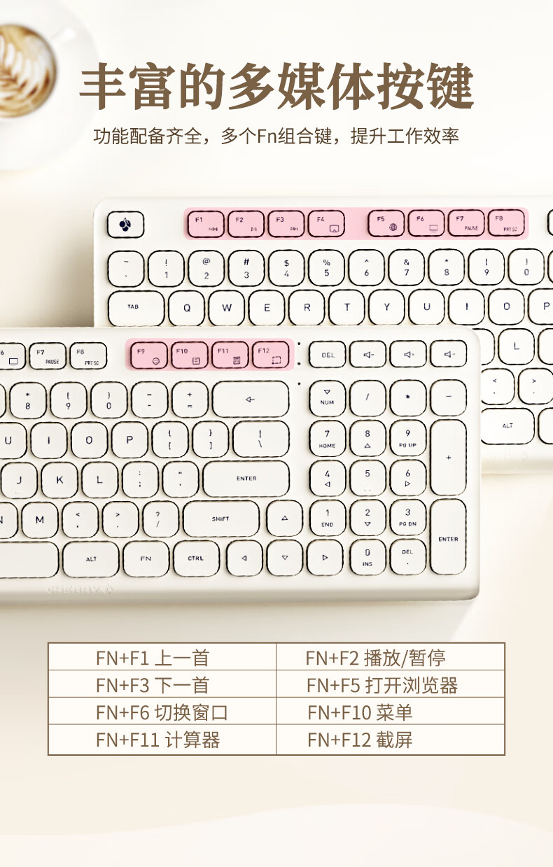 CHERRY樱桃 DW2380无线键鼠套装升级版98键轻音薄膜键盘鼠标笔记本电脑可爱女生外接婺源绿